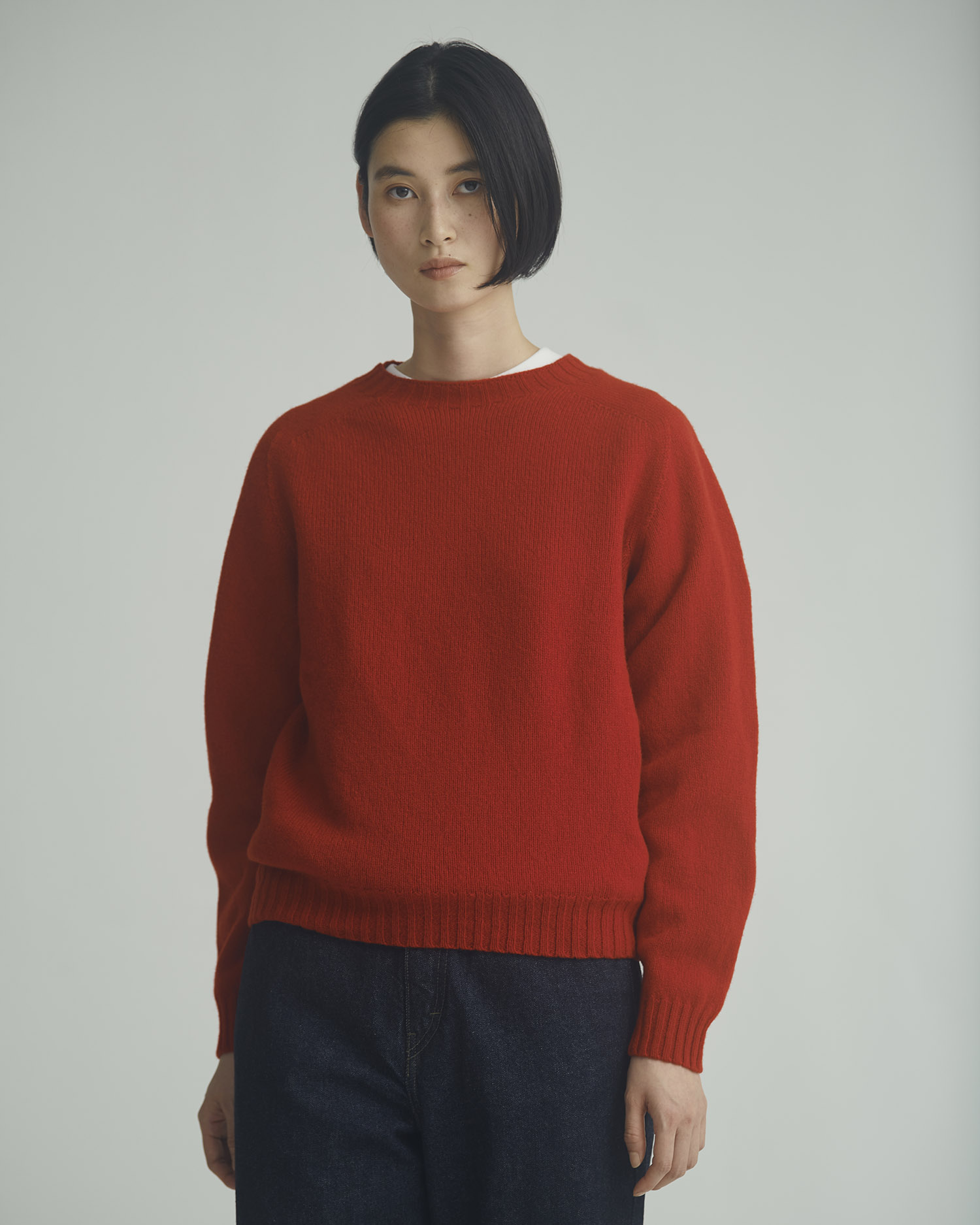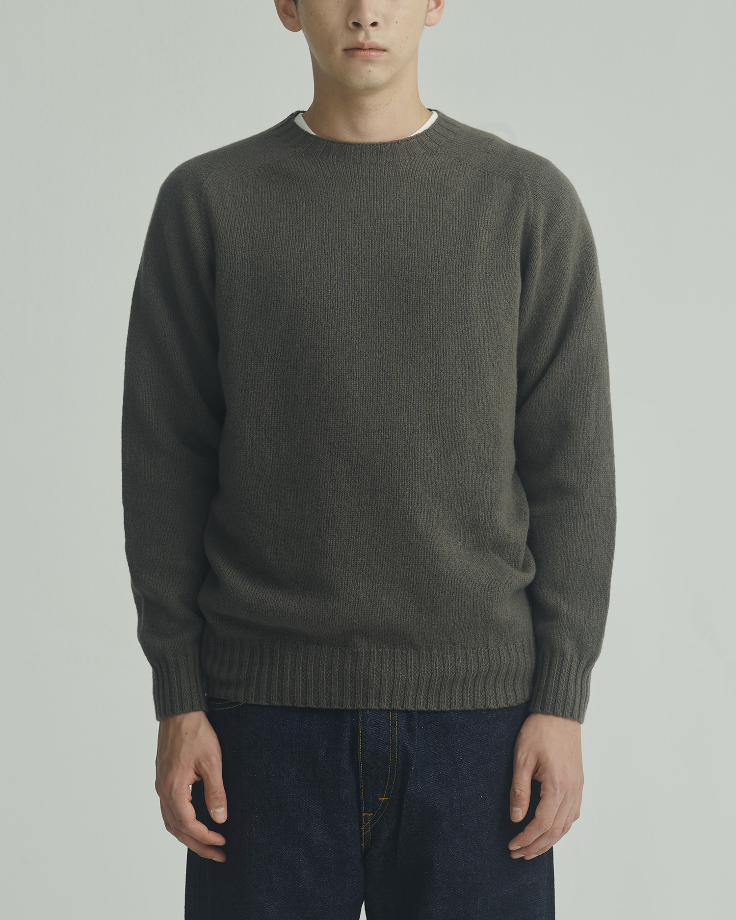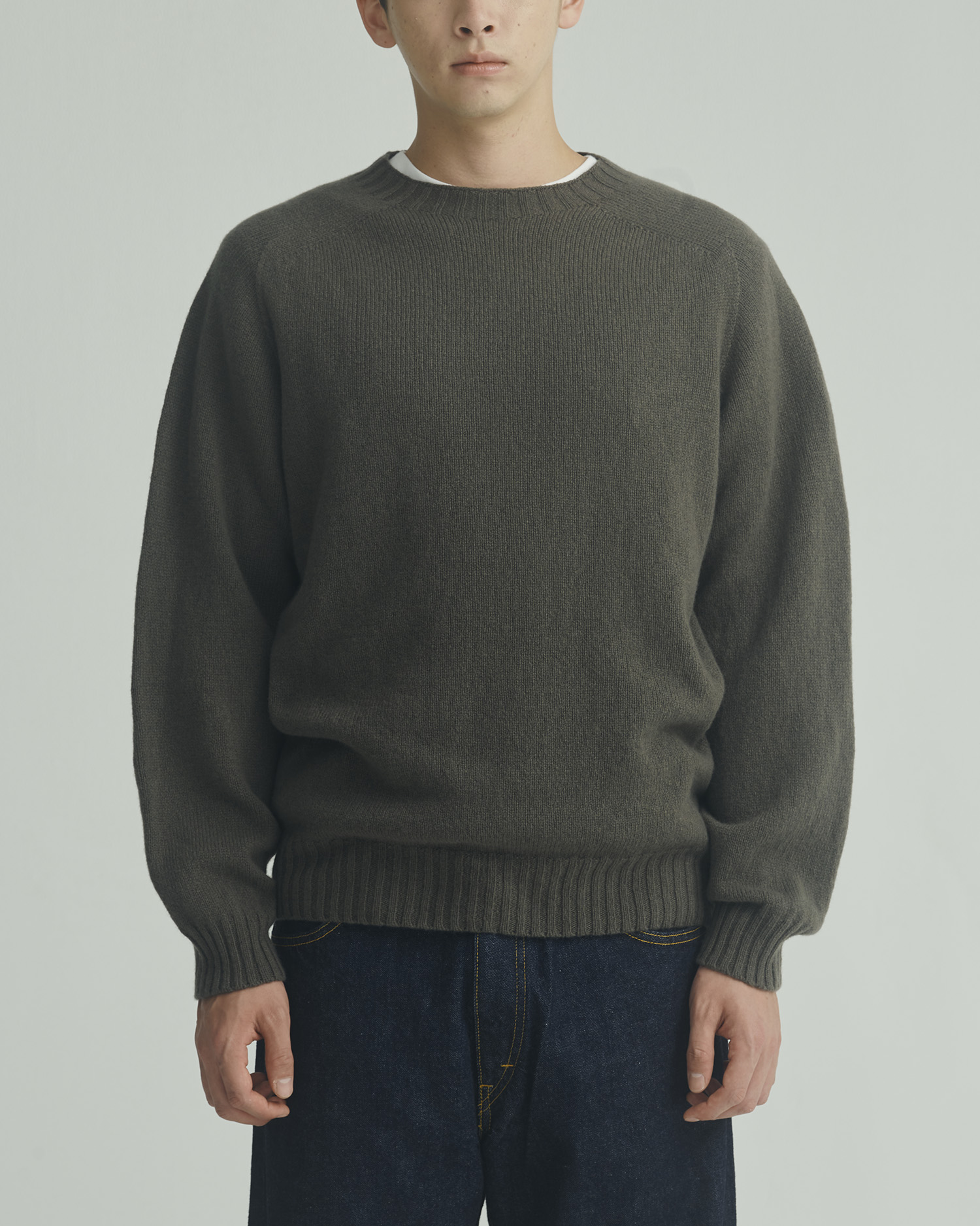 デザインはベーシックなクルーネックセーターながら、ボディとアームに繋ぎ目がないシームレスなニッティング製法で編み立てています。そして、袖は運動性が高いラグランスリーブのサドルショルダーを採用。そんなディテールはそのままに、今シーズンからリニューアルしたポイントをご紹介します。