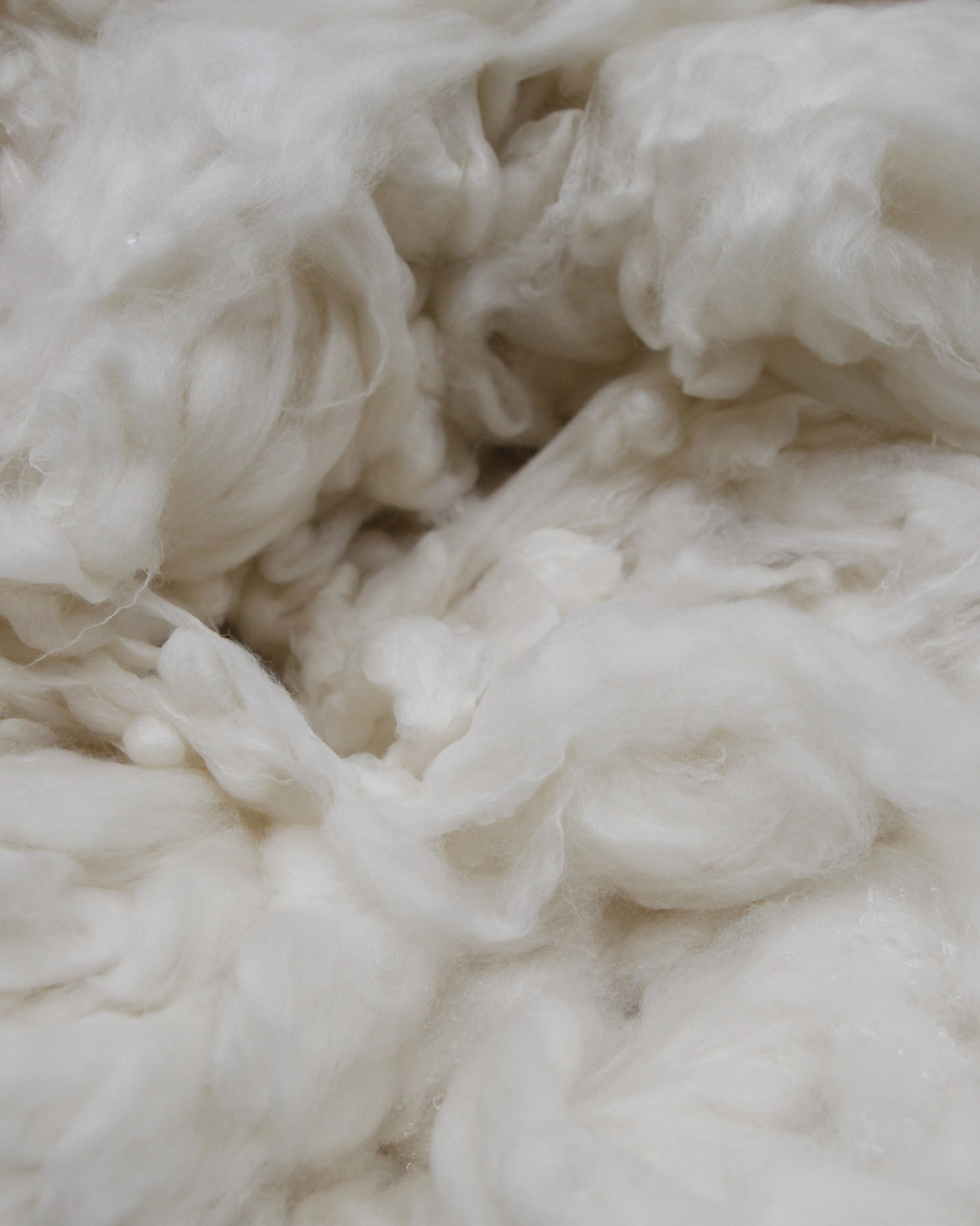 GEELONG LAMBSWOOL ラムズウールとは、生後6〜7ヶ月以内の羊から刈り取られた羊毛のこと。通常のウールより繊維が細く、ふんわりと柔らかいのが特徴で、そのラムズウールの最高峰と言われるジーロンラムズウールとは、オーストラリア南西部のジーロン地方の子羊から刈り取られたウール。一般的なものに比べて非常に細く繊細で、採取量も限られることから高級素材とされており、柔らかくやさしい手触りです。多くの空気を閉じ込めることができるので、暖かく、軽い仕上がりが特徴です。