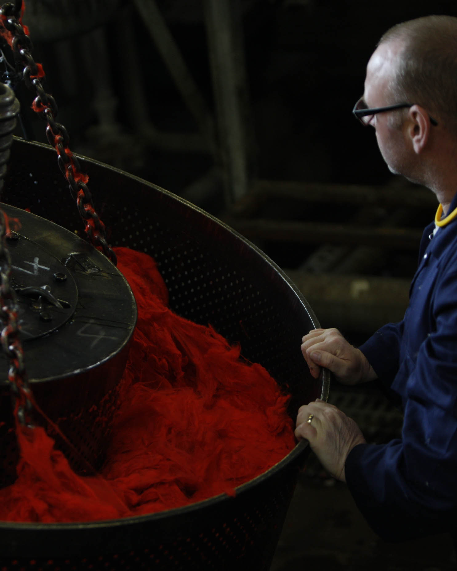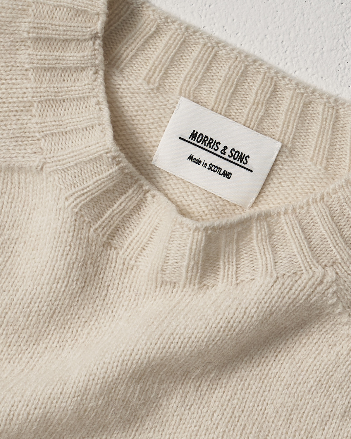 MORRIS & SONSのジーロンラムズセーターはTODD & DUNCAN社の糸を使用しており、その糸はスコットランド、キンロスの工場にて伝統的なカーディングマシーンとミュール紡績機を使用して生産しています。羊毛からウールの糸へ加工するのに上質な水は欠かせません。スコットランドの超硬水を使いウールを洗うことで、滑らかな手触りのウールが実現します。