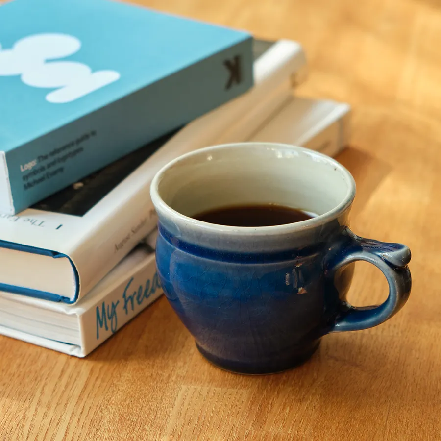 手に馴染むマグで、ゆっくりと物語とコーヒーを味わう時間。