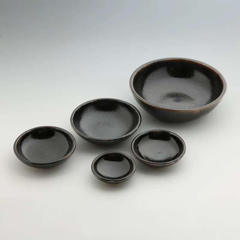 ほんのりと鉄分のにじみや焼成のムラが現れる、艶やかな黒。
