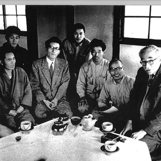 1947年、戦後間もない混乱の時代。島根の地に暮らす五人の青年たちは「本当に美しいものを、自分たちの手で作りたい」との思いから出西窯を創設しました。大量生産の波に逆らうように、土と火に向き合う生き方を選んだその姿勢は、当時としては極めて先鋭的でもあり、誠実な挑戦でもありました。