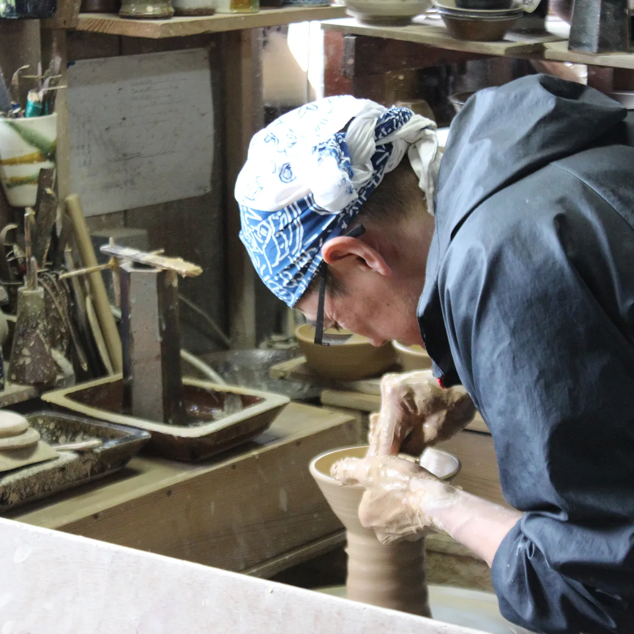 出西窯の工房では、今も土を練り、ろくろを回し、窯で器を焼く作業が繰り返されています。その一つひとつが手間の積み重ねであり、技術と感性の対話です。