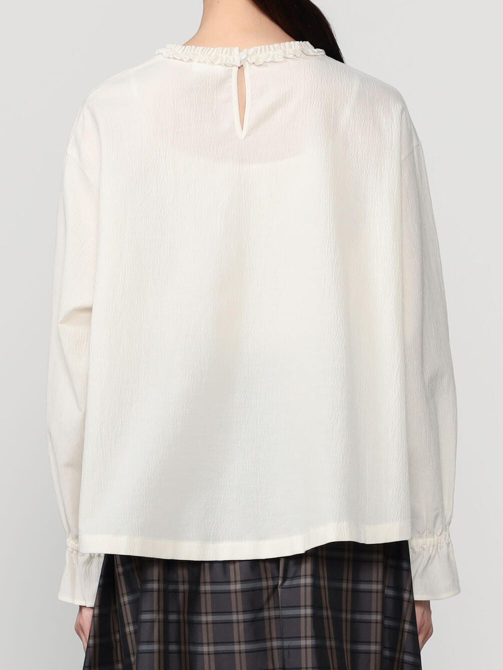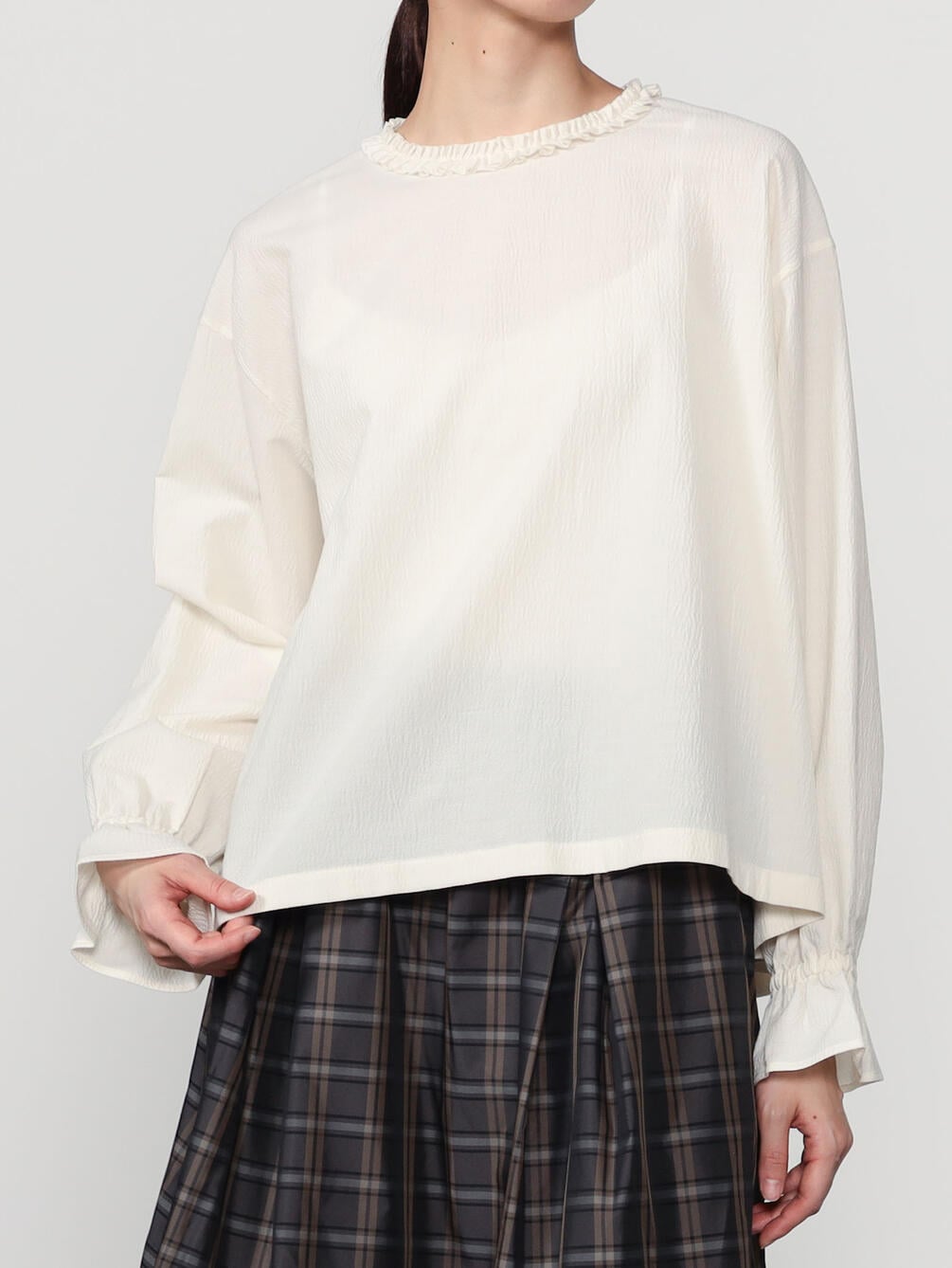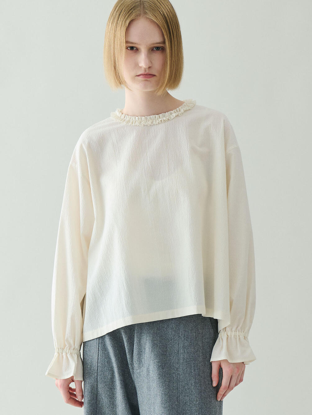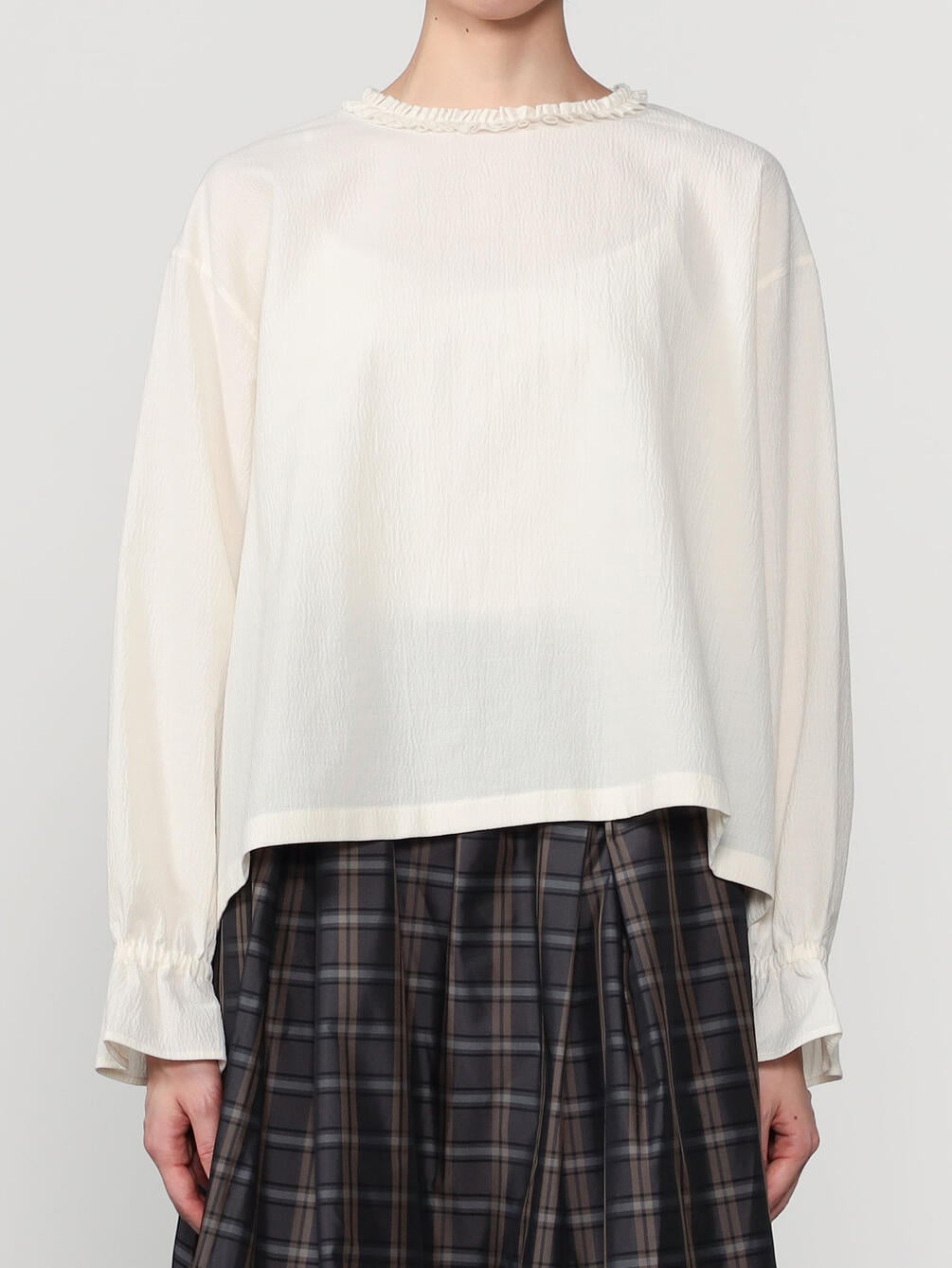 - コンパクトなデザインの長袖プルオーバーブラウス