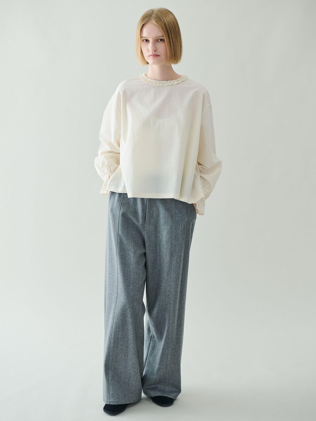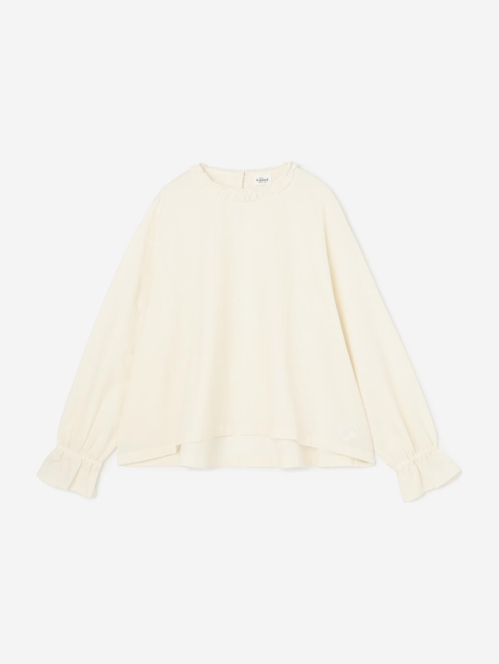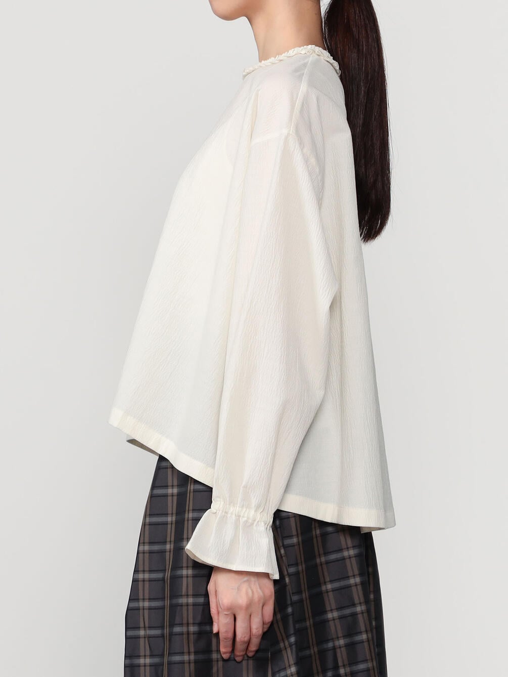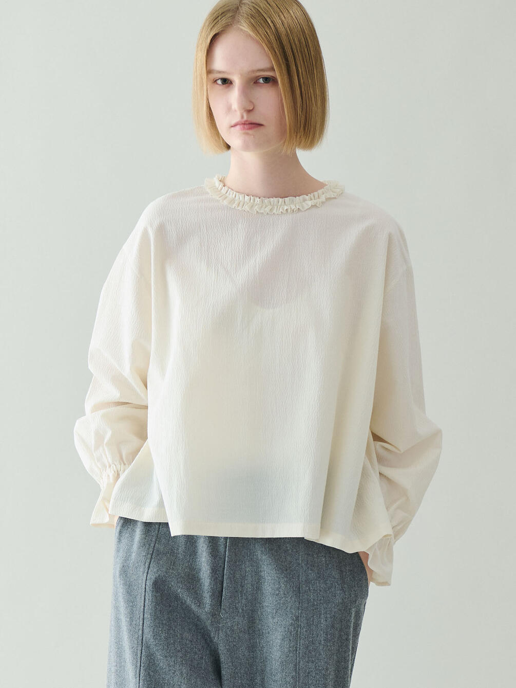 - コンパクトなデザインの長袖プルオーバーブラウス