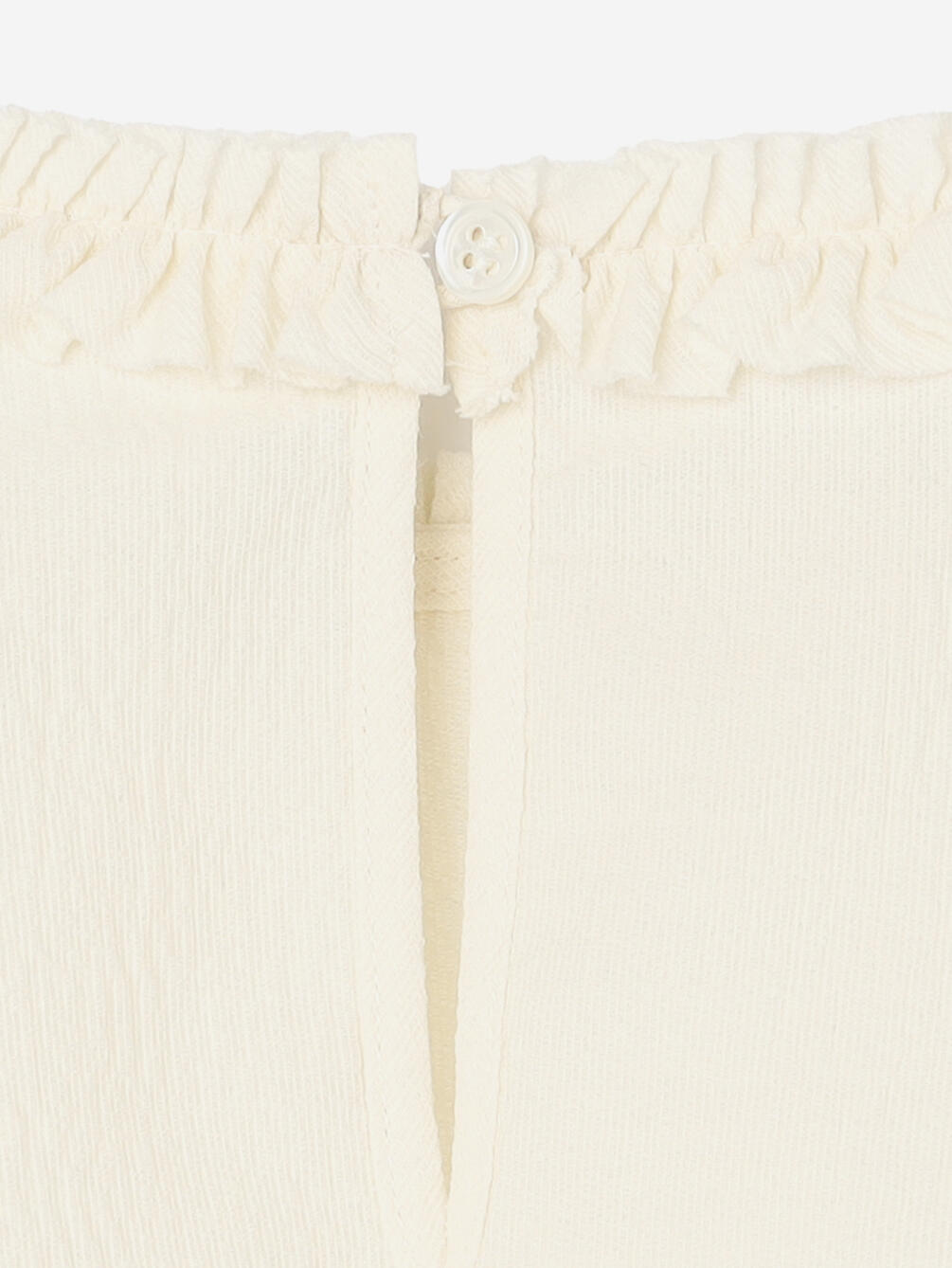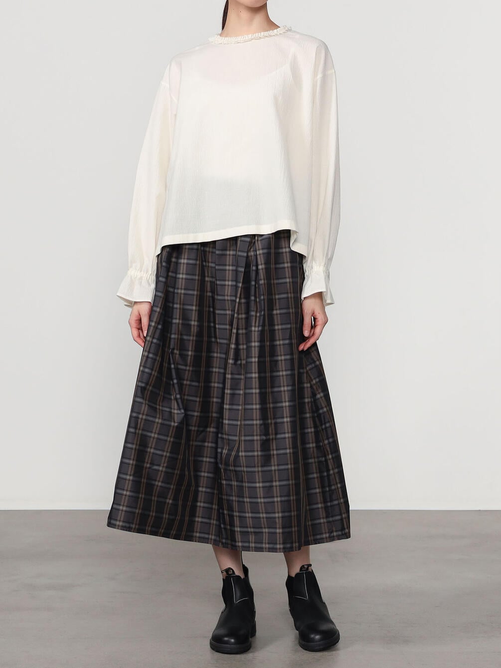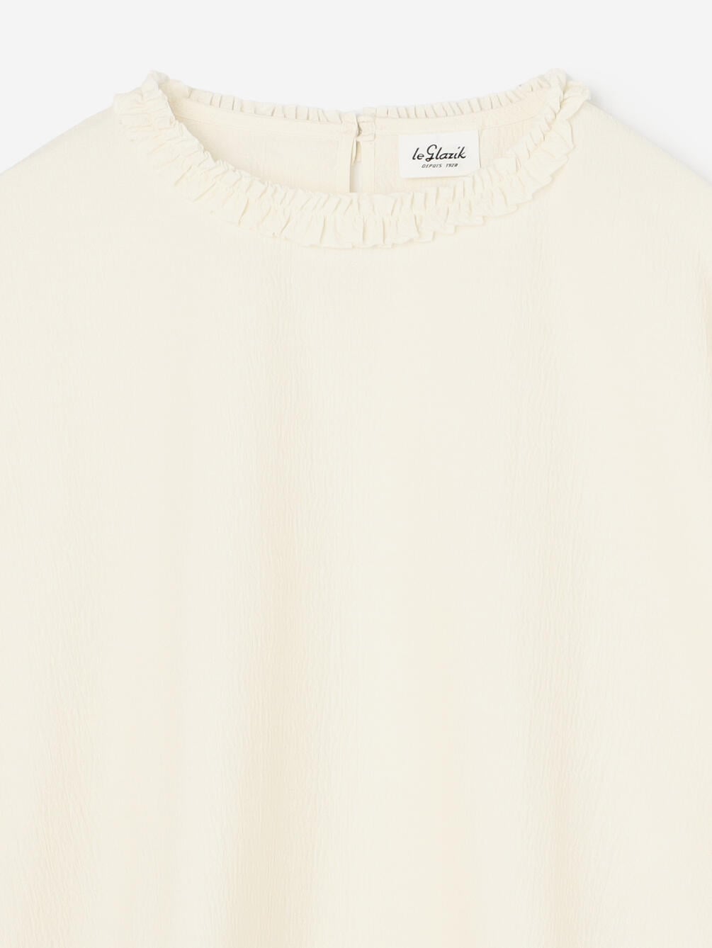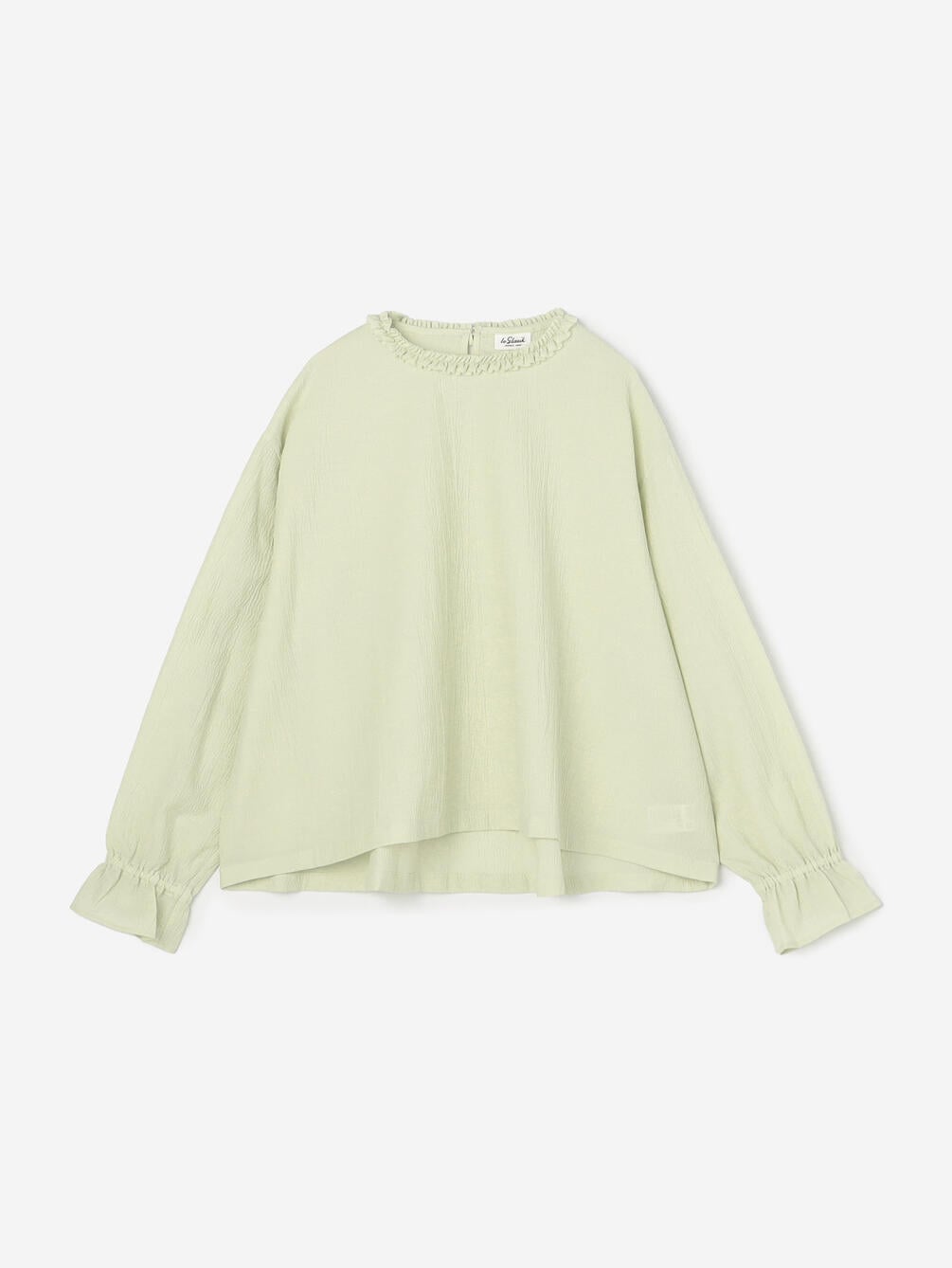 - コンパクトなデザインの長袖プルオーバーブラウス