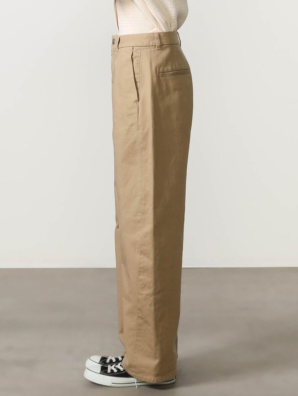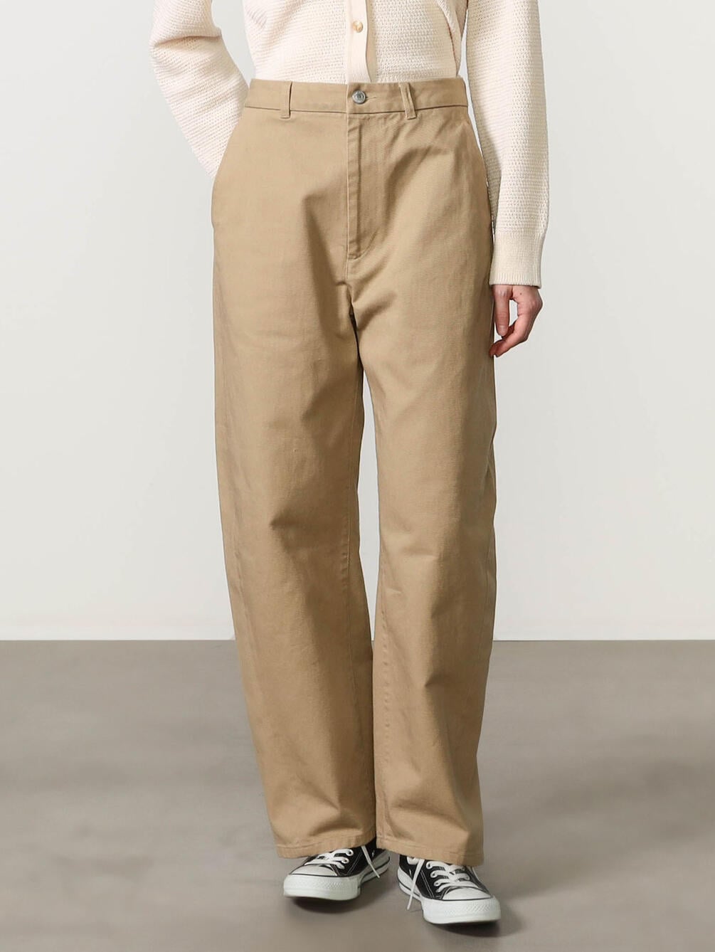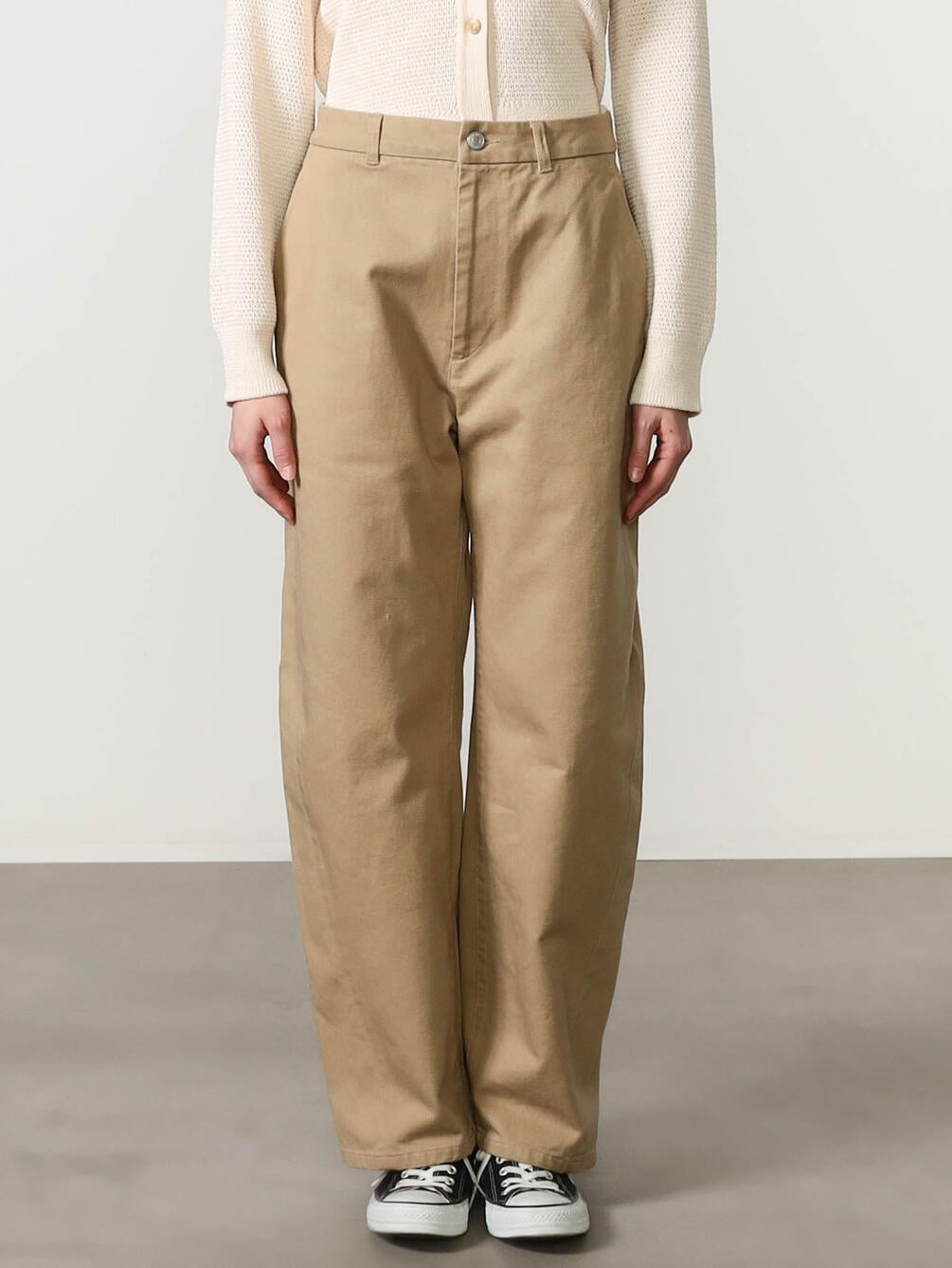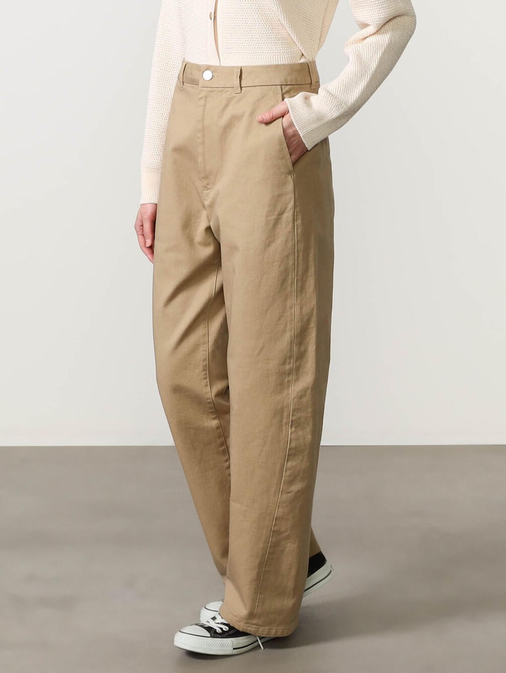 - ワイドカーブシルエットのツイルパンツ