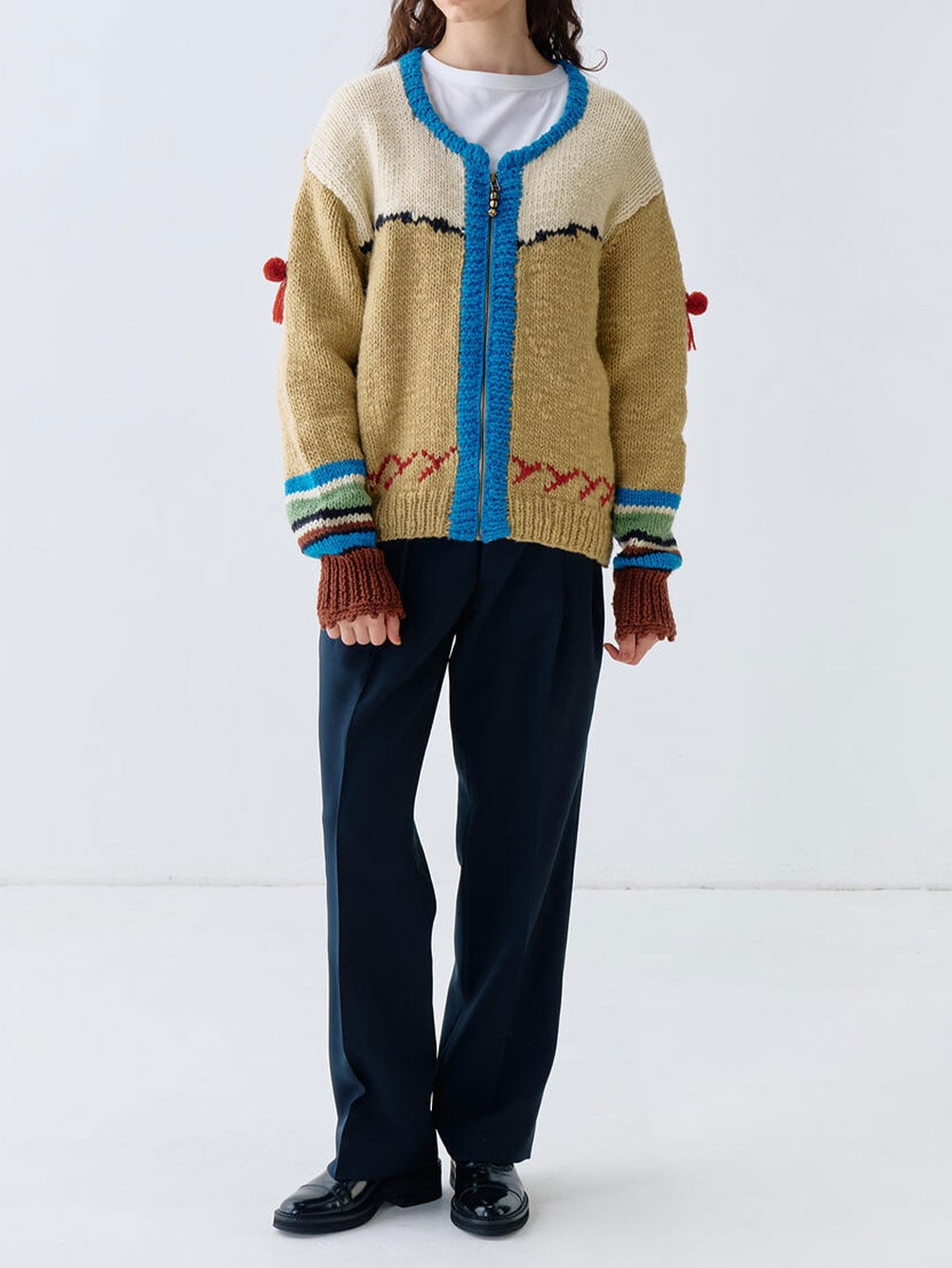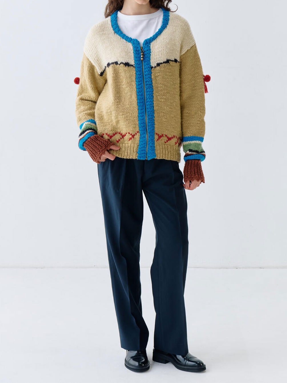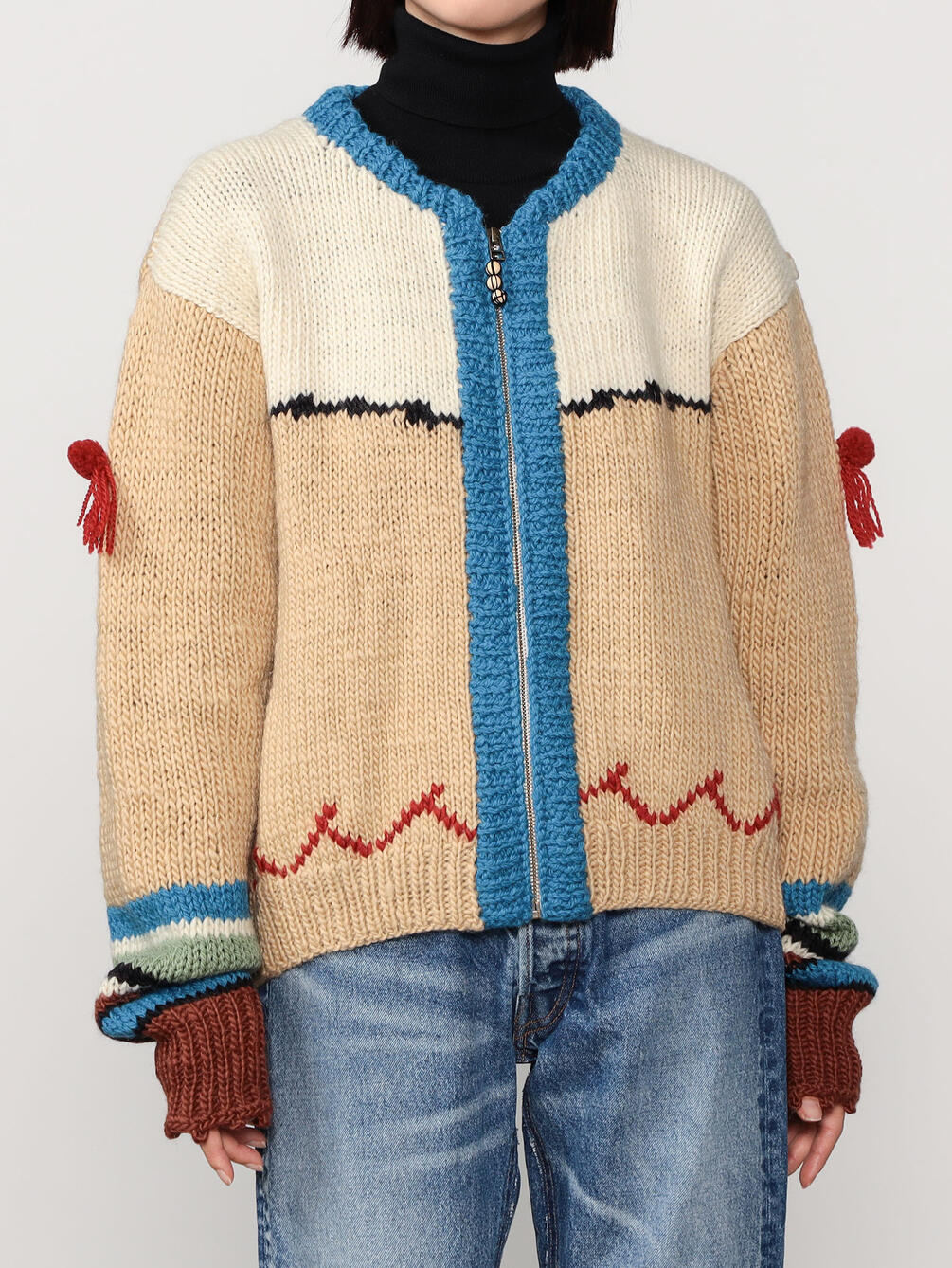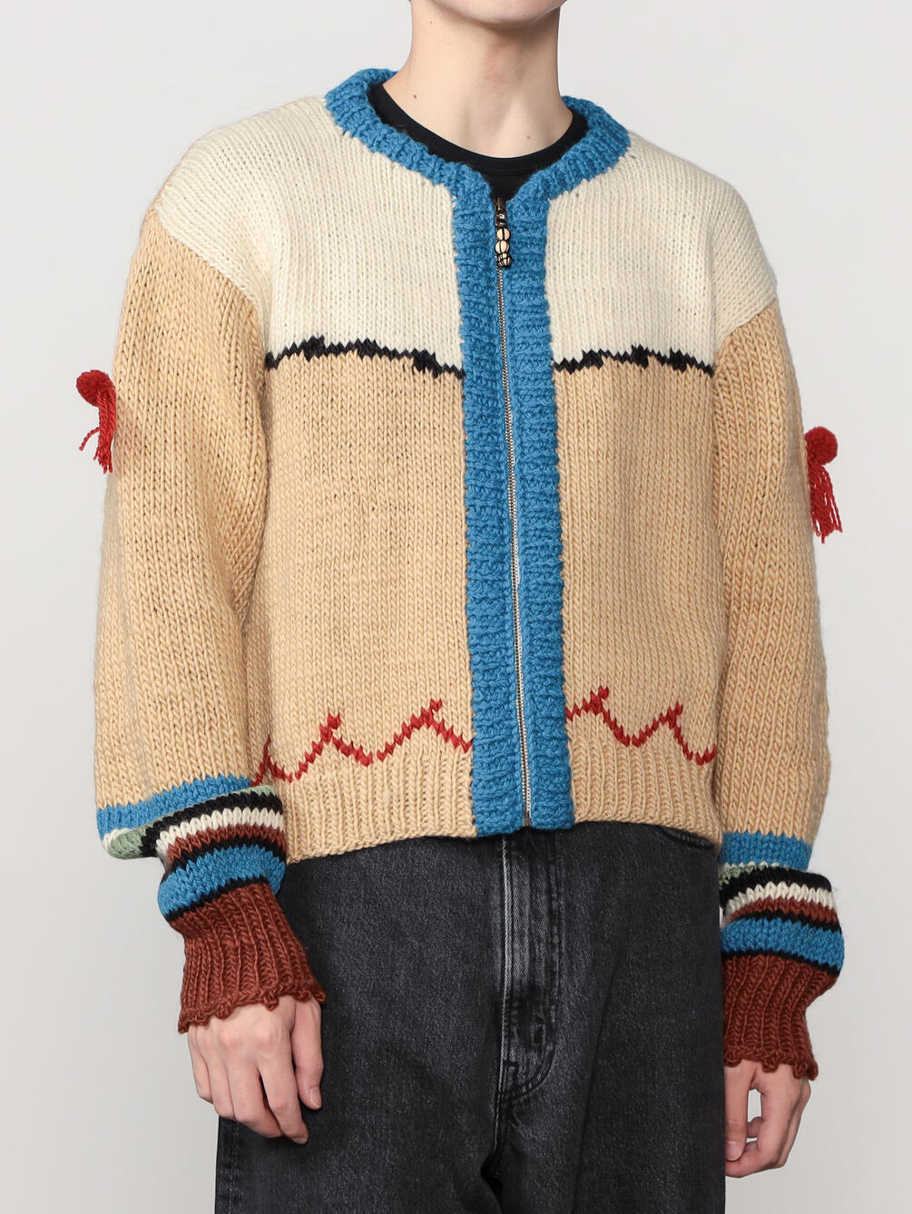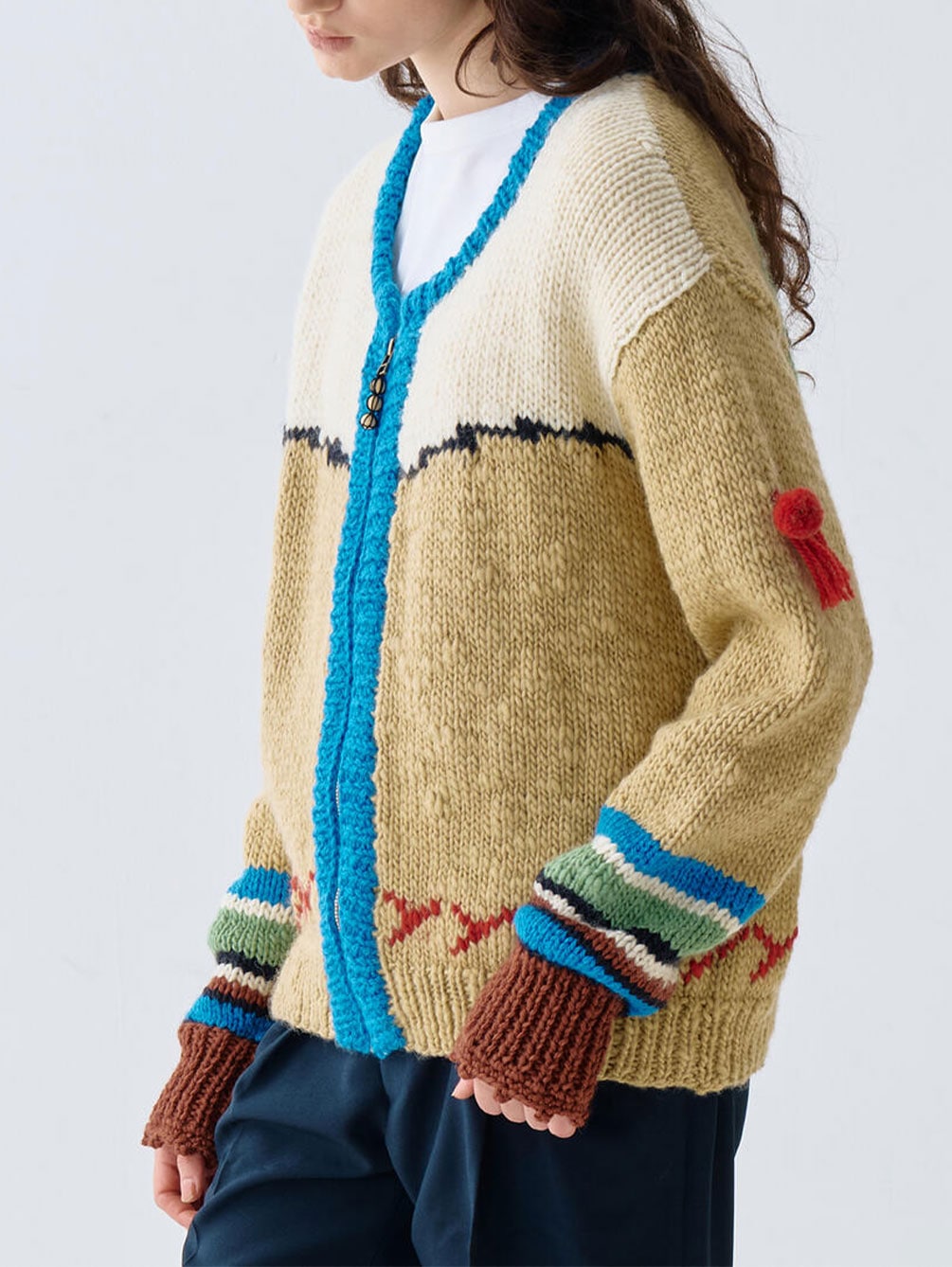 - ラマの耳飾りをモチーフにした袖の装飾