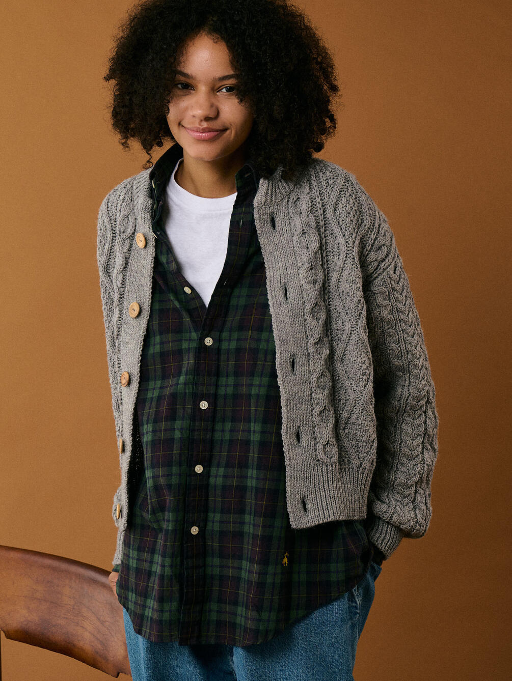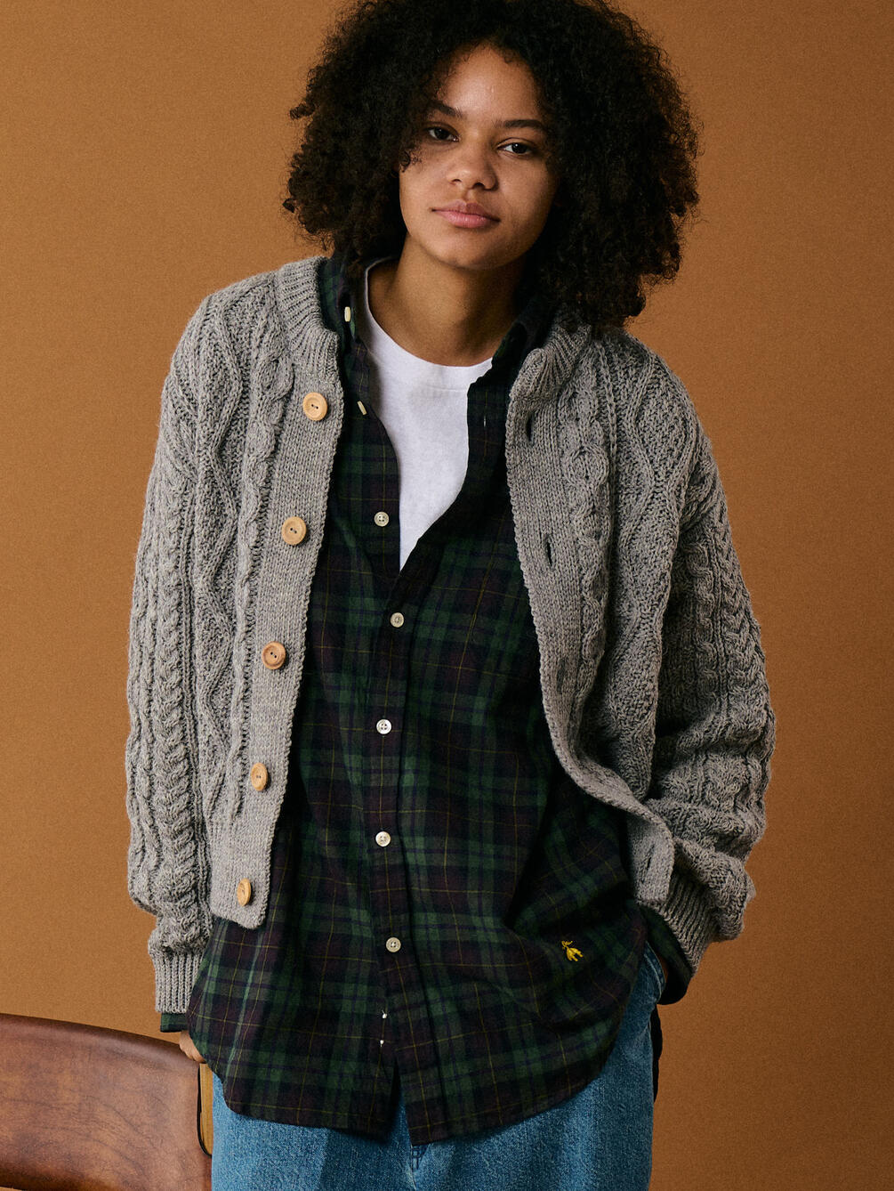 - 伝統的な複雑に編まれたケーブル模様が特徴