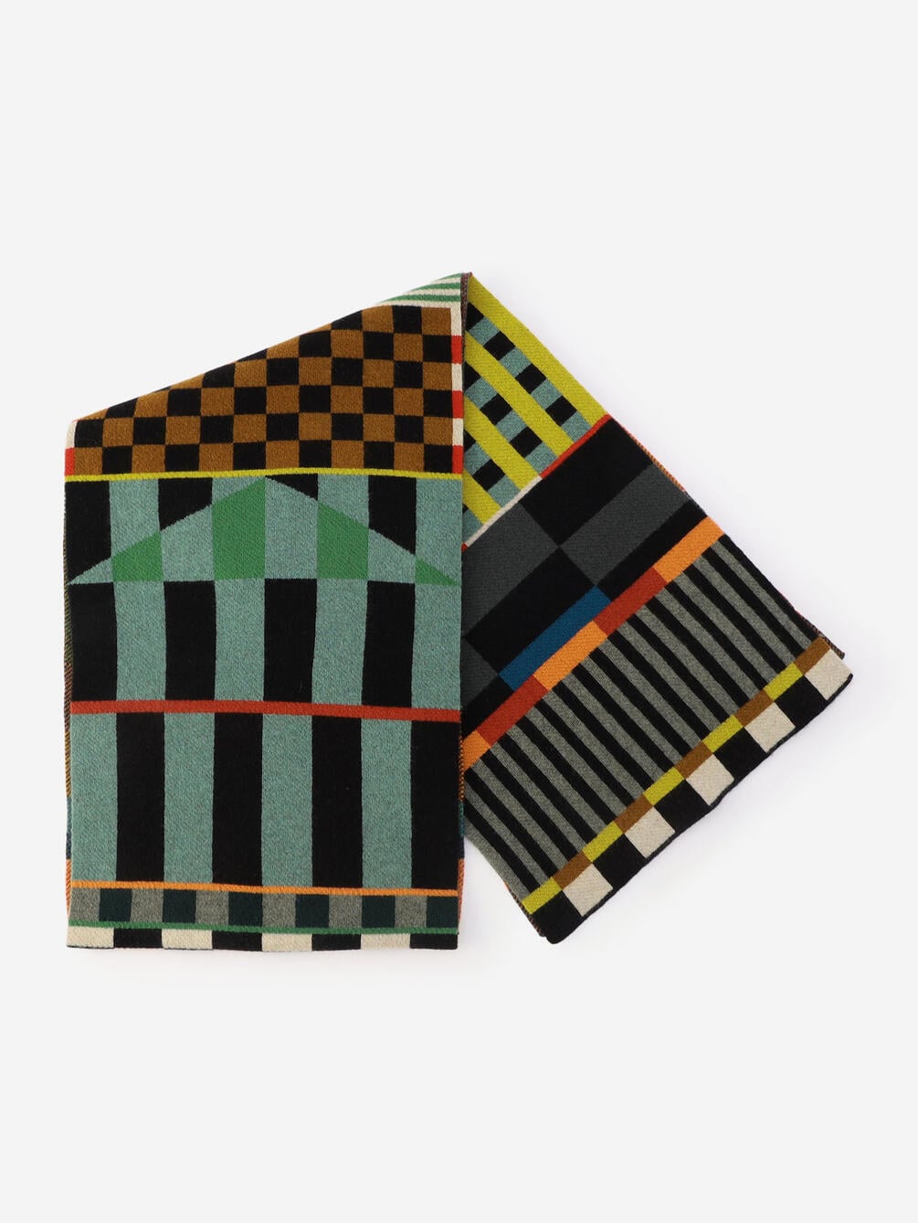 - マルチカラージオメトリック柄の大判マフラー