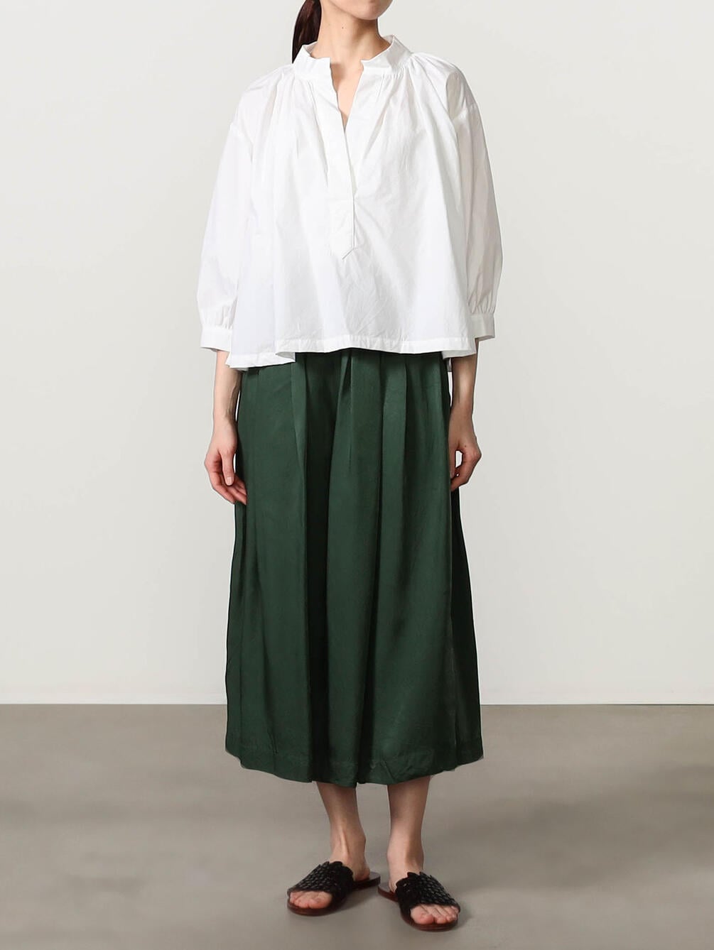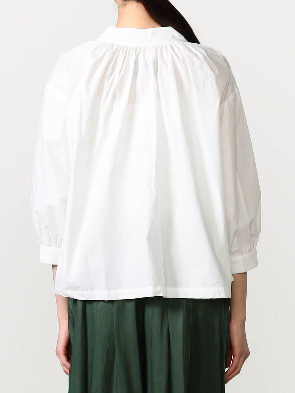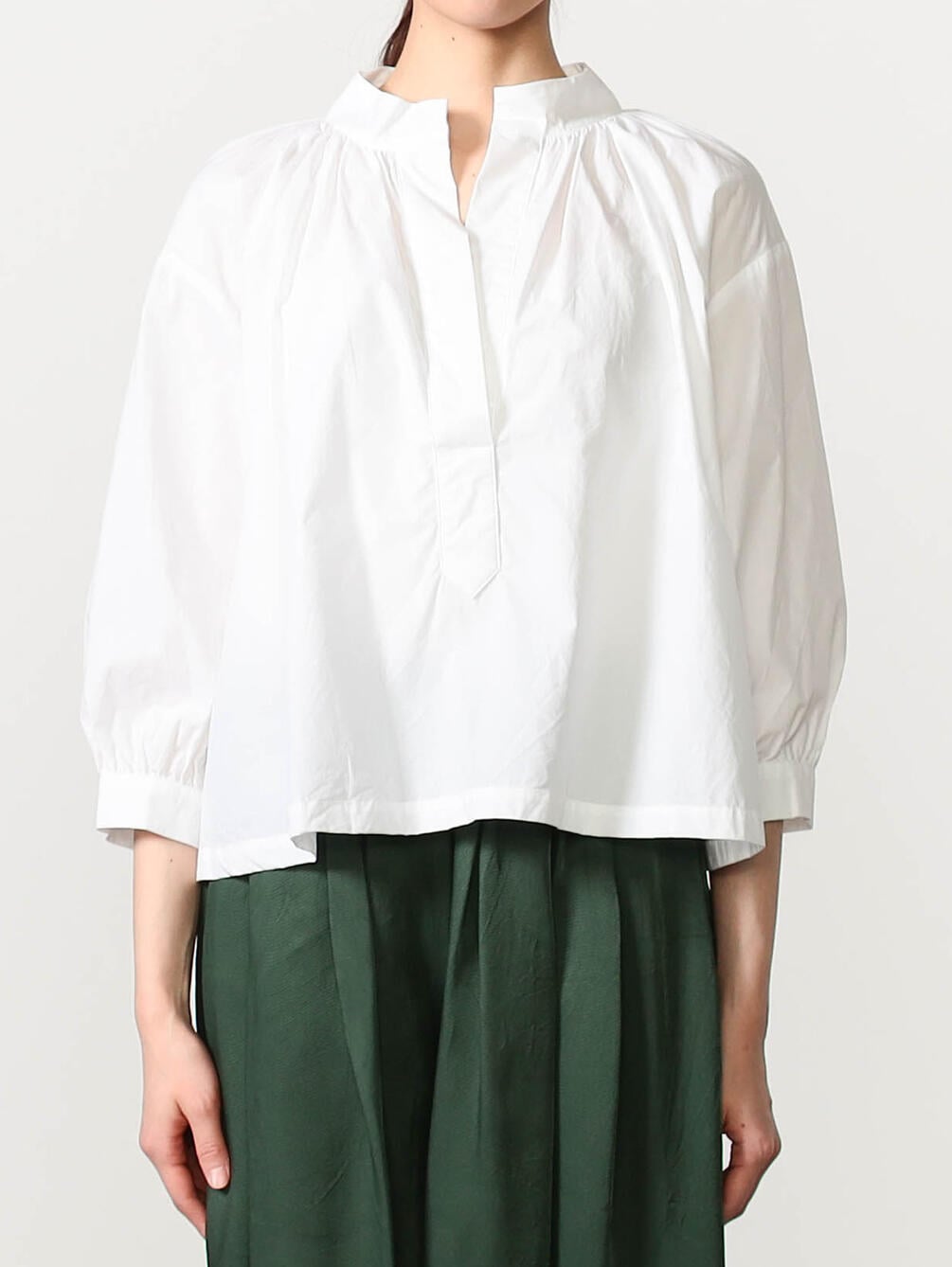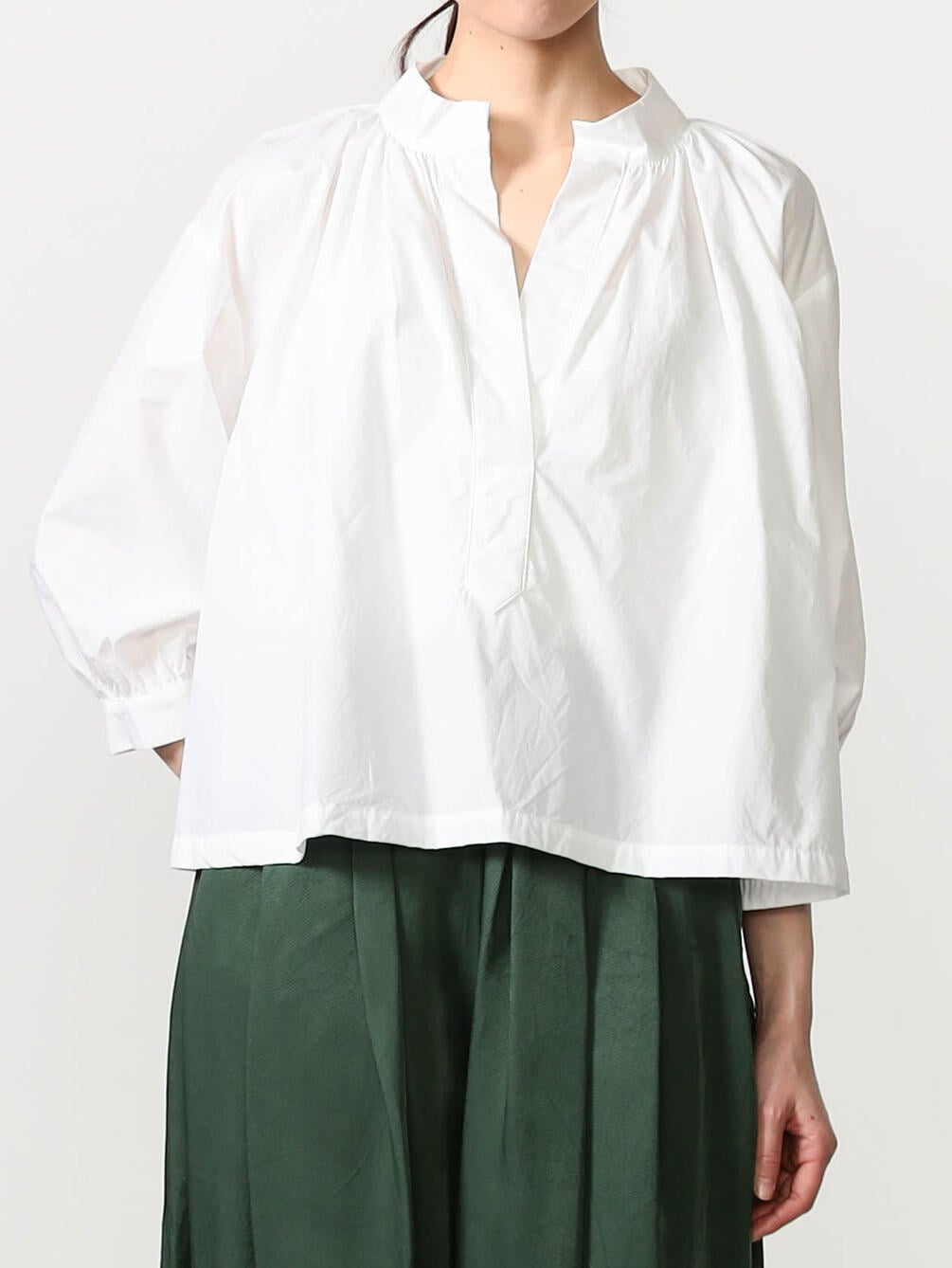 - バンドカラーのギャザーシャツ