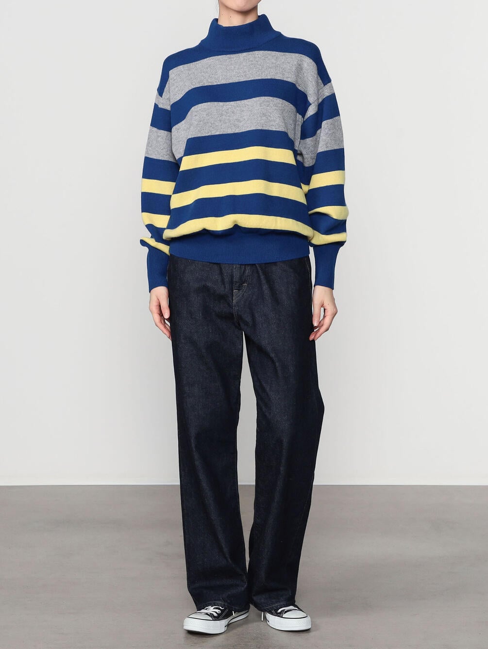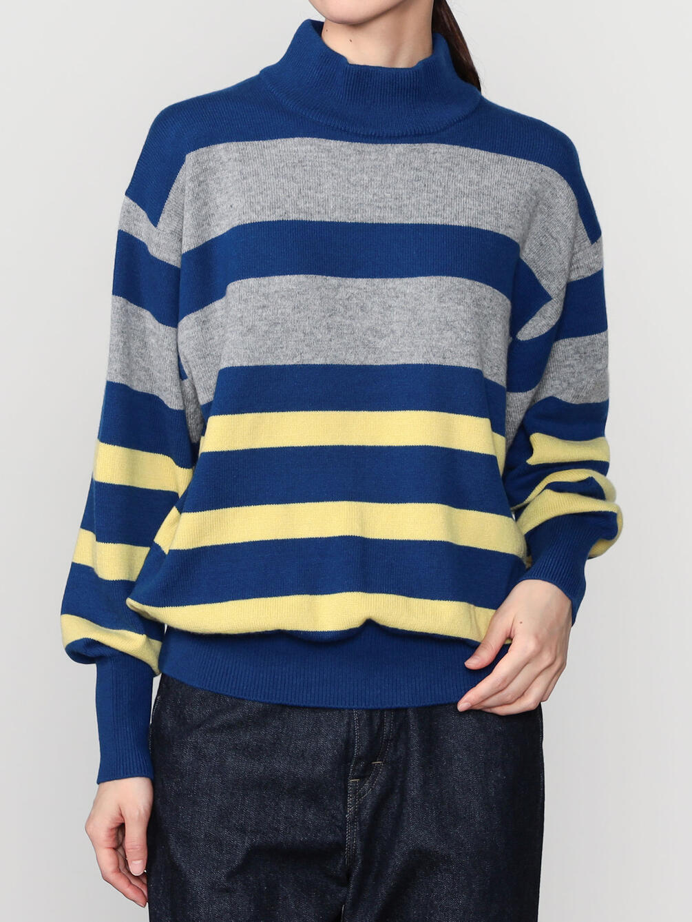 - モダンな印象のモックネックニット