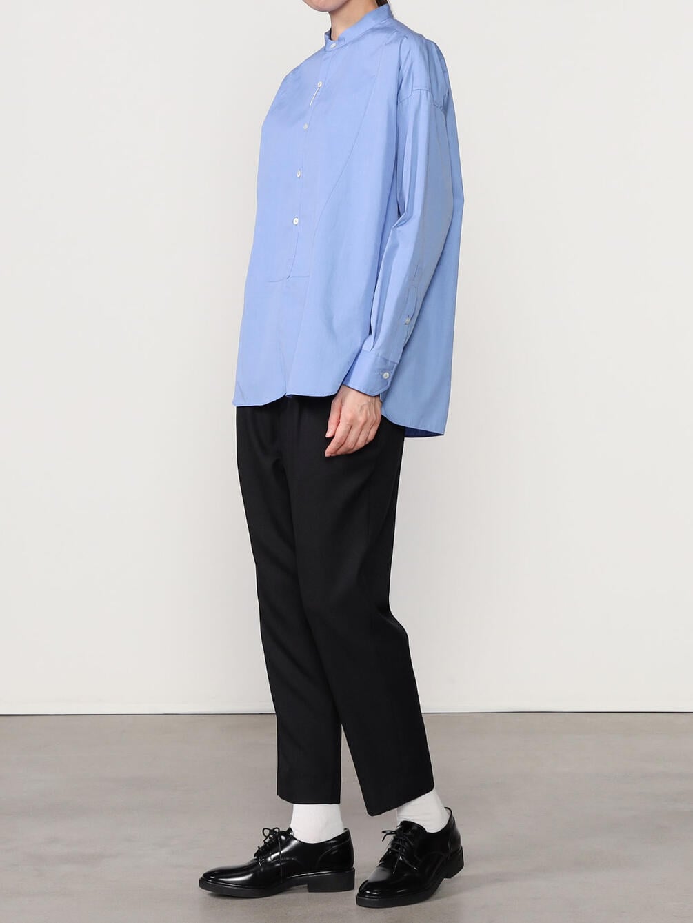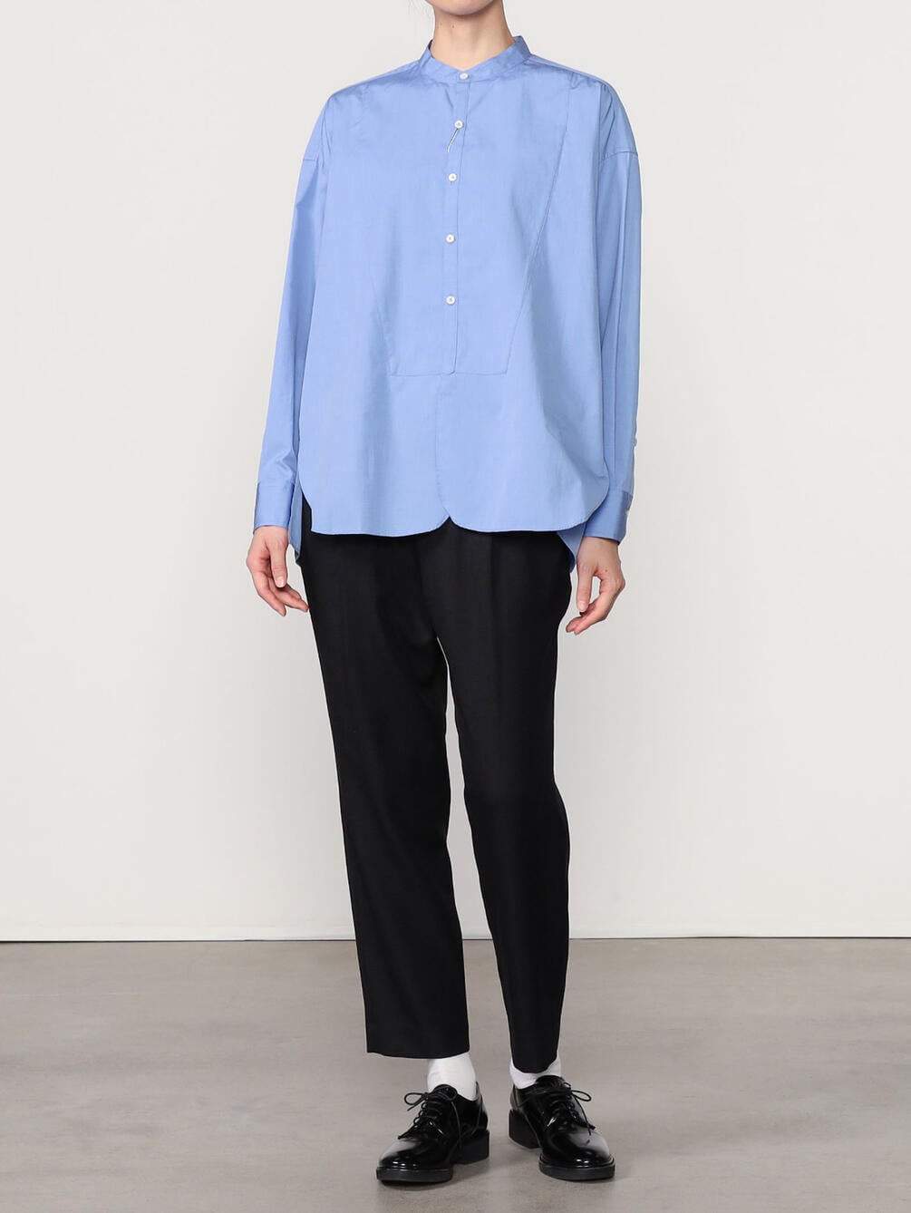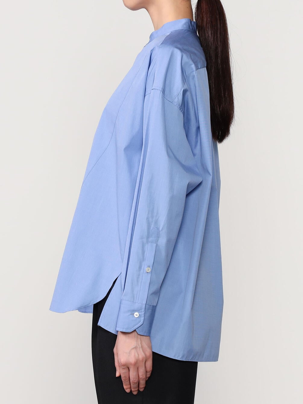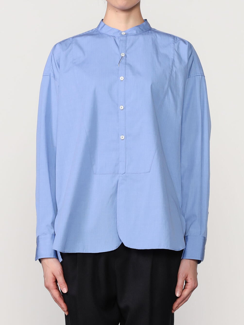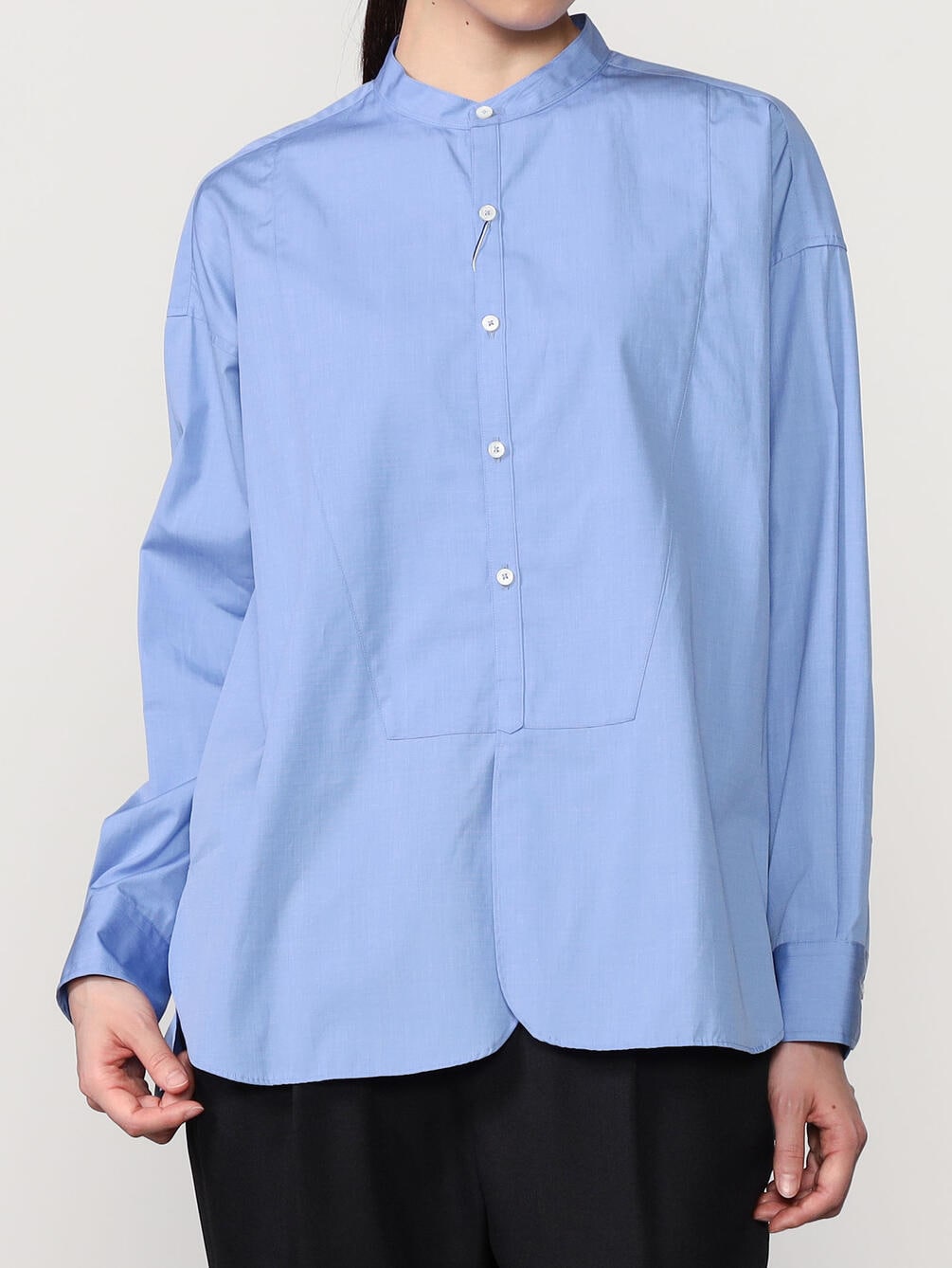 - ノーカラーの長袖シャツ