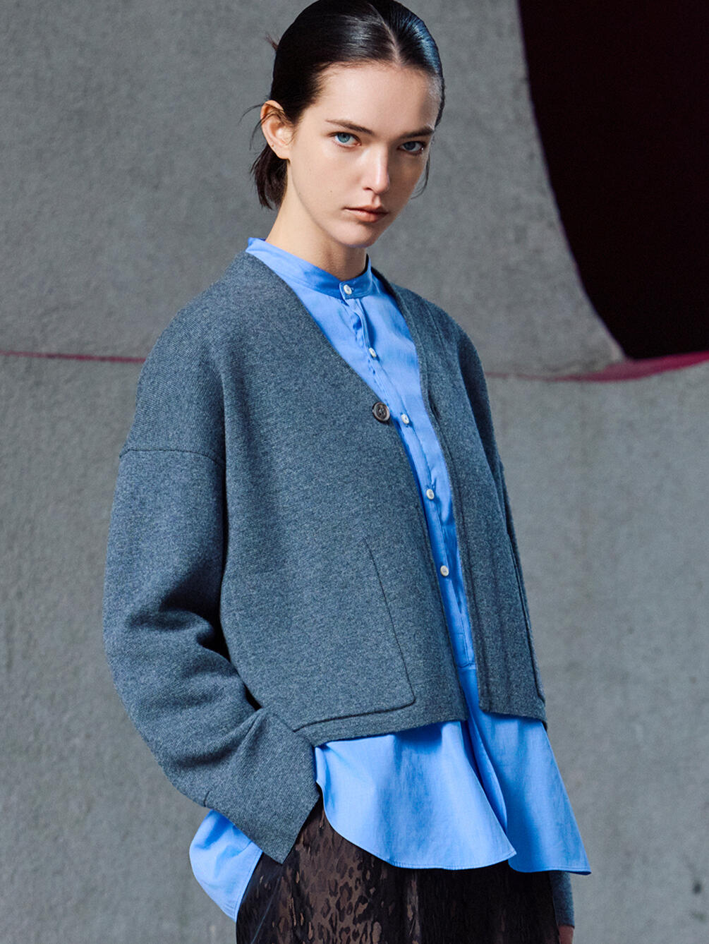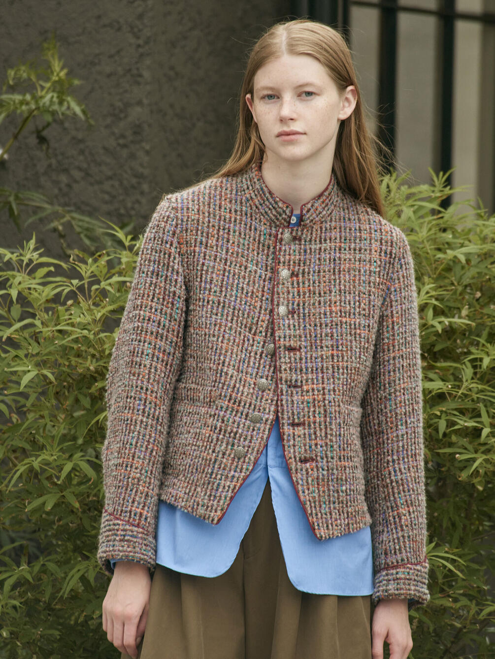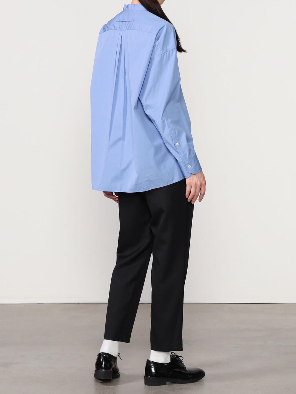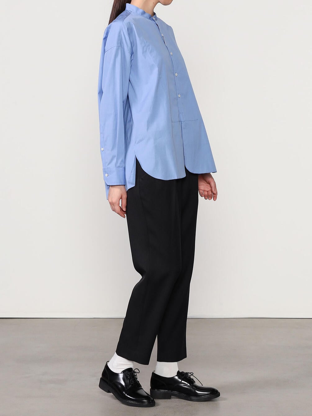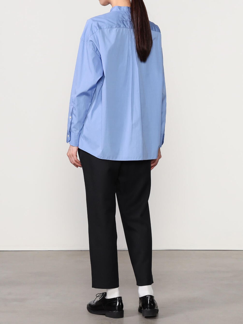 - ノーカラーの長袖シャツ