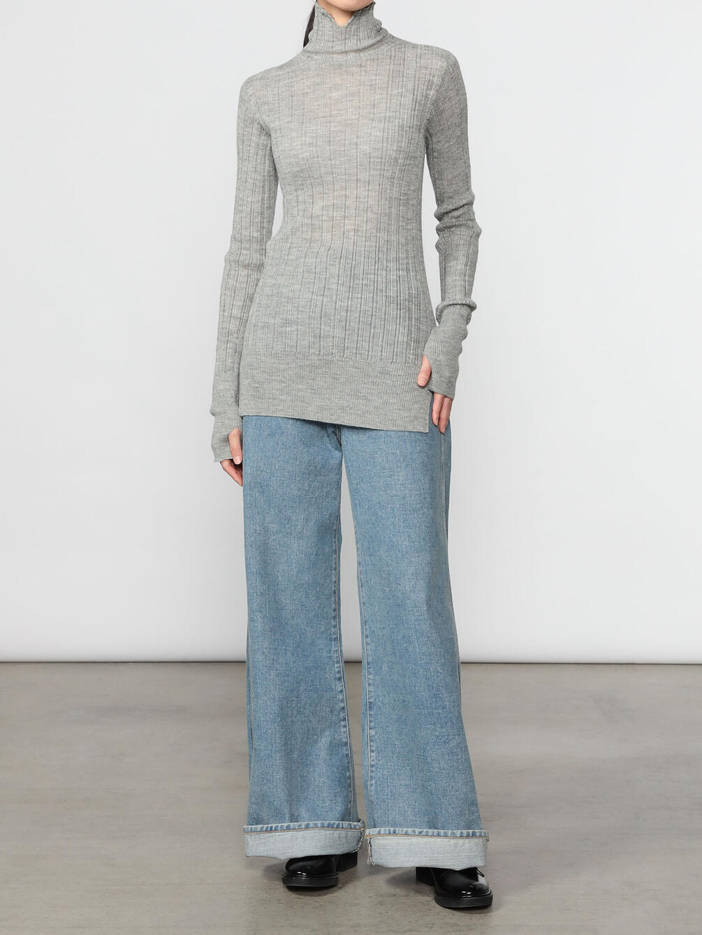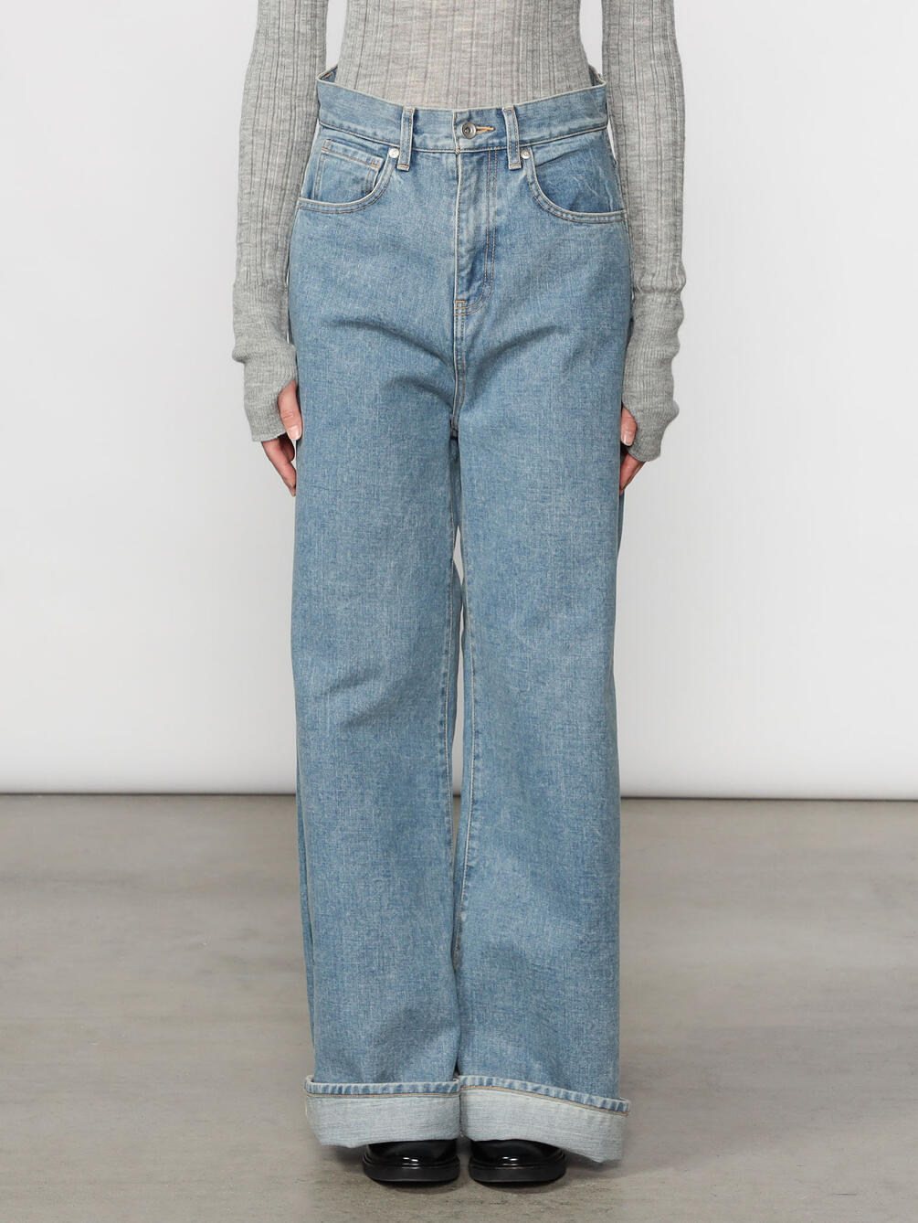 - ハイウエストのデニムパンツ
