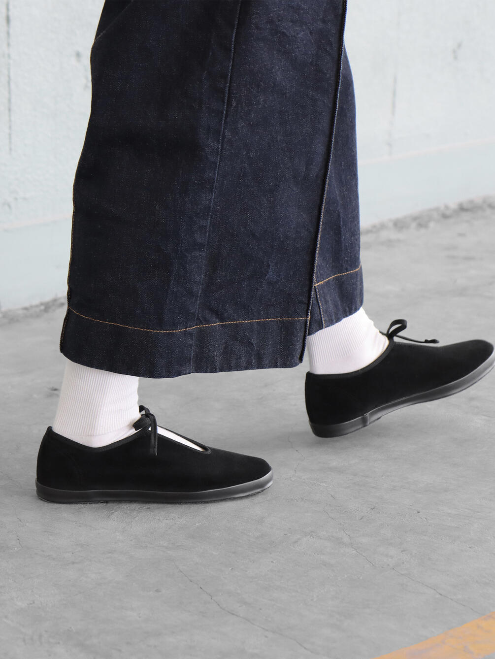 ‐ 1枚もののアッパーに履口のパイピングを靴紐にしたシンプルな一足