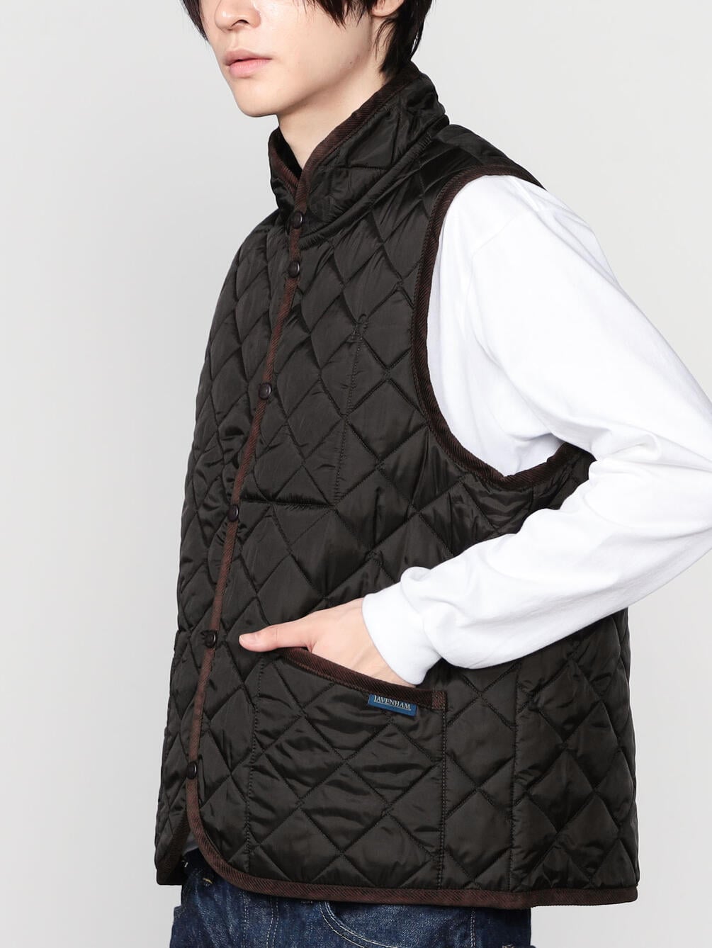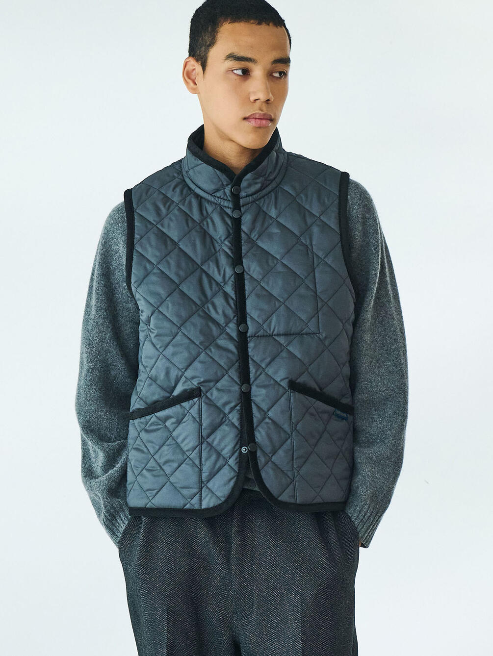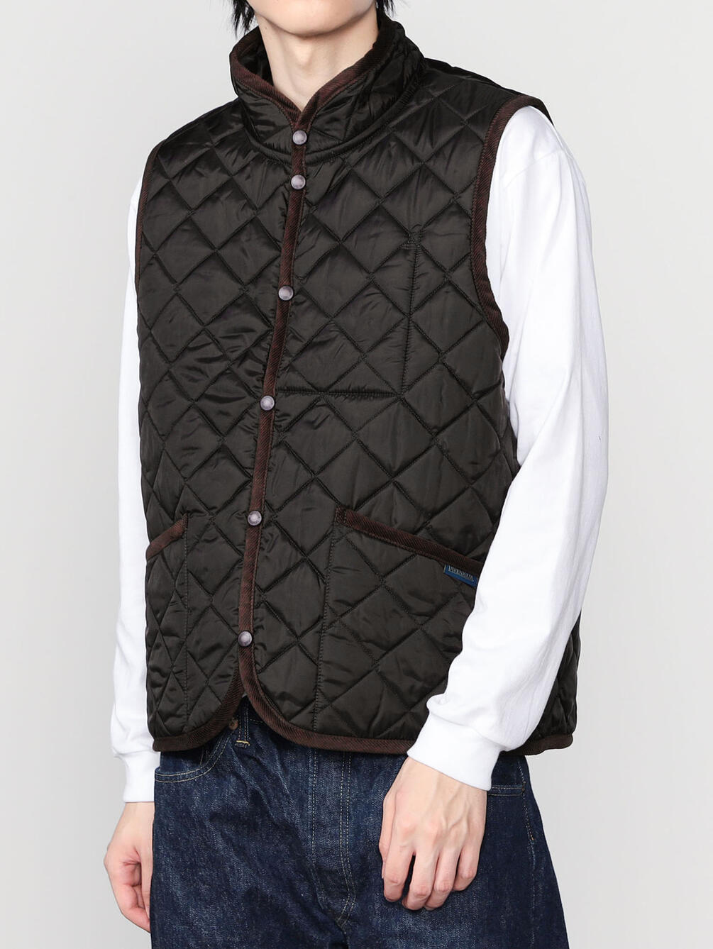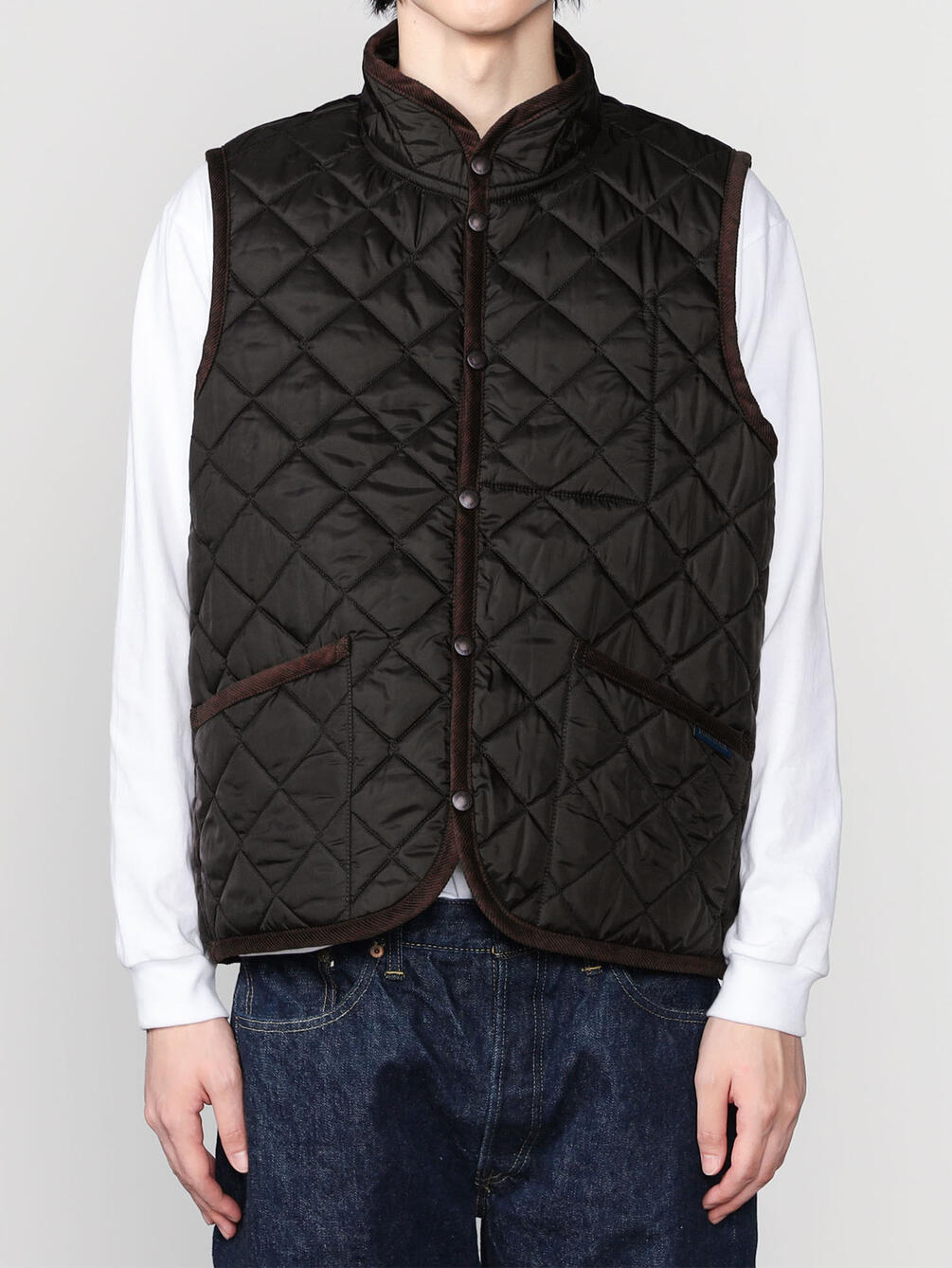 - スタンドカラーのキルティングベスト