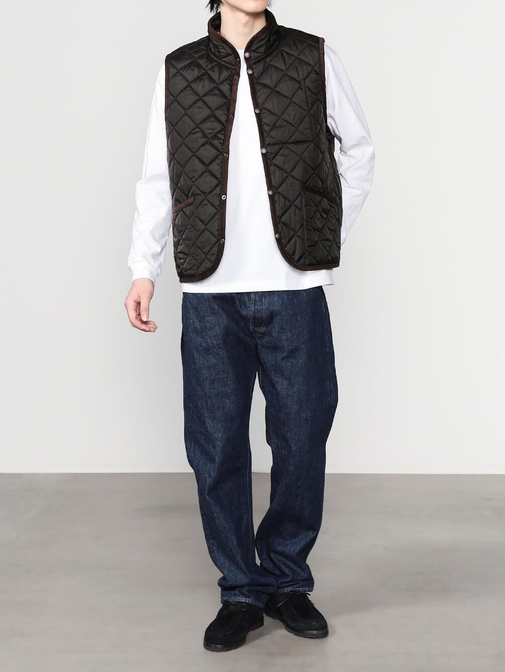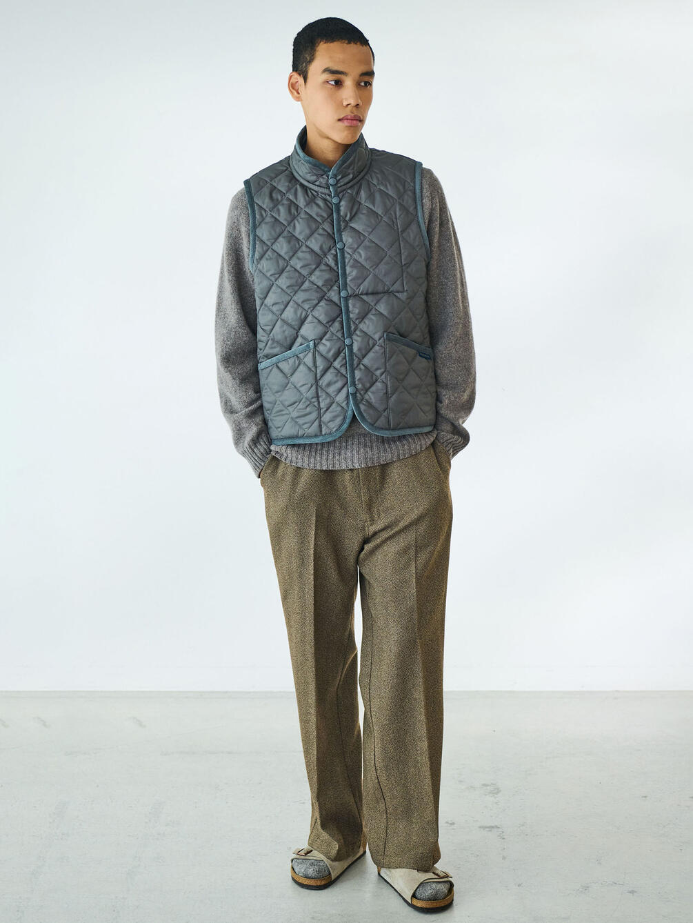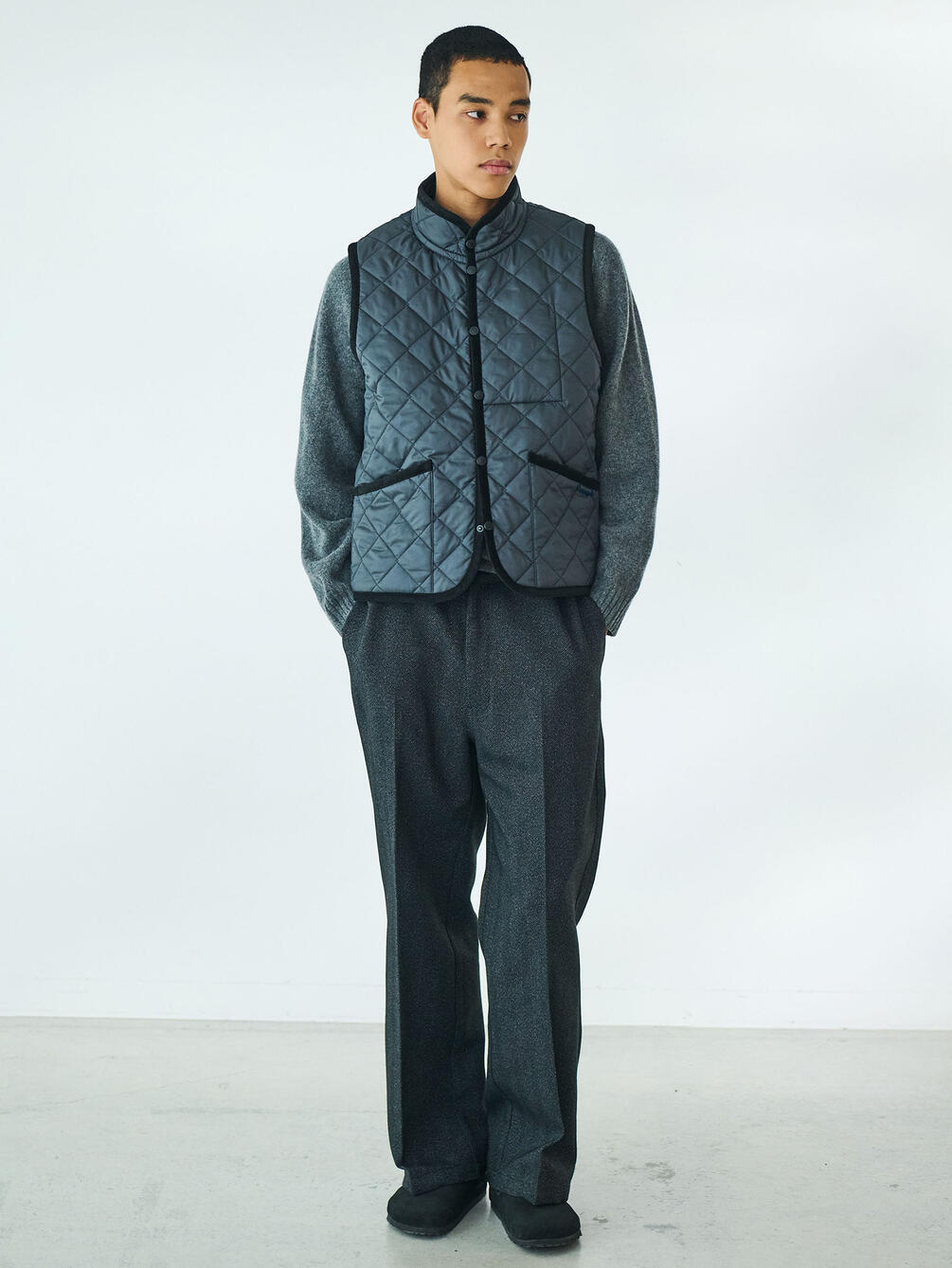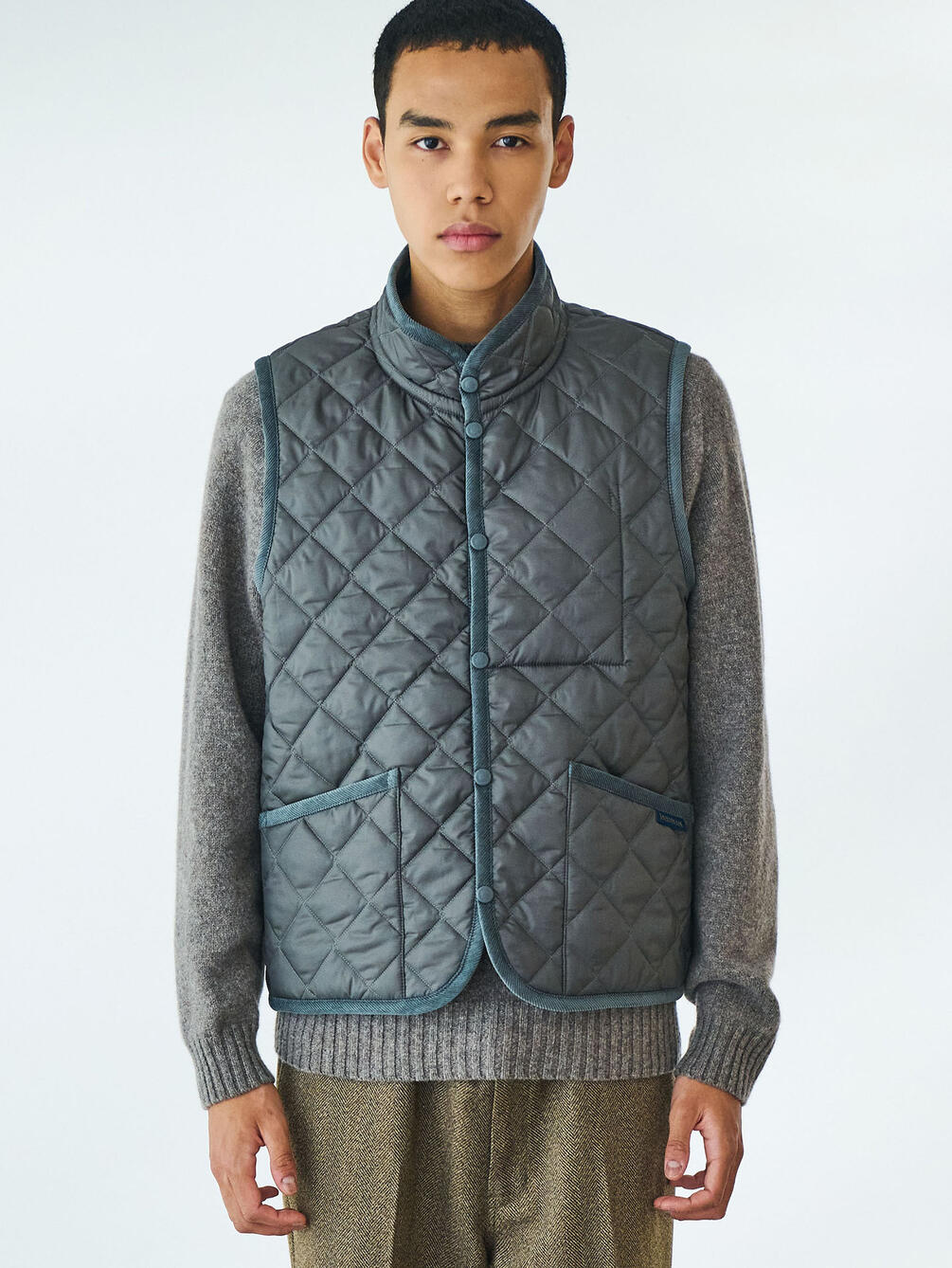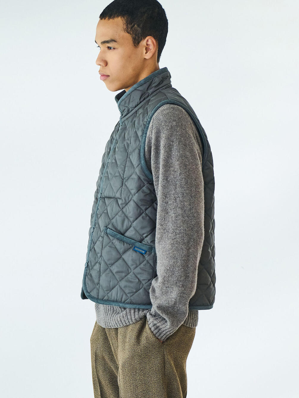 - スタンドカラーのキルティングベスト