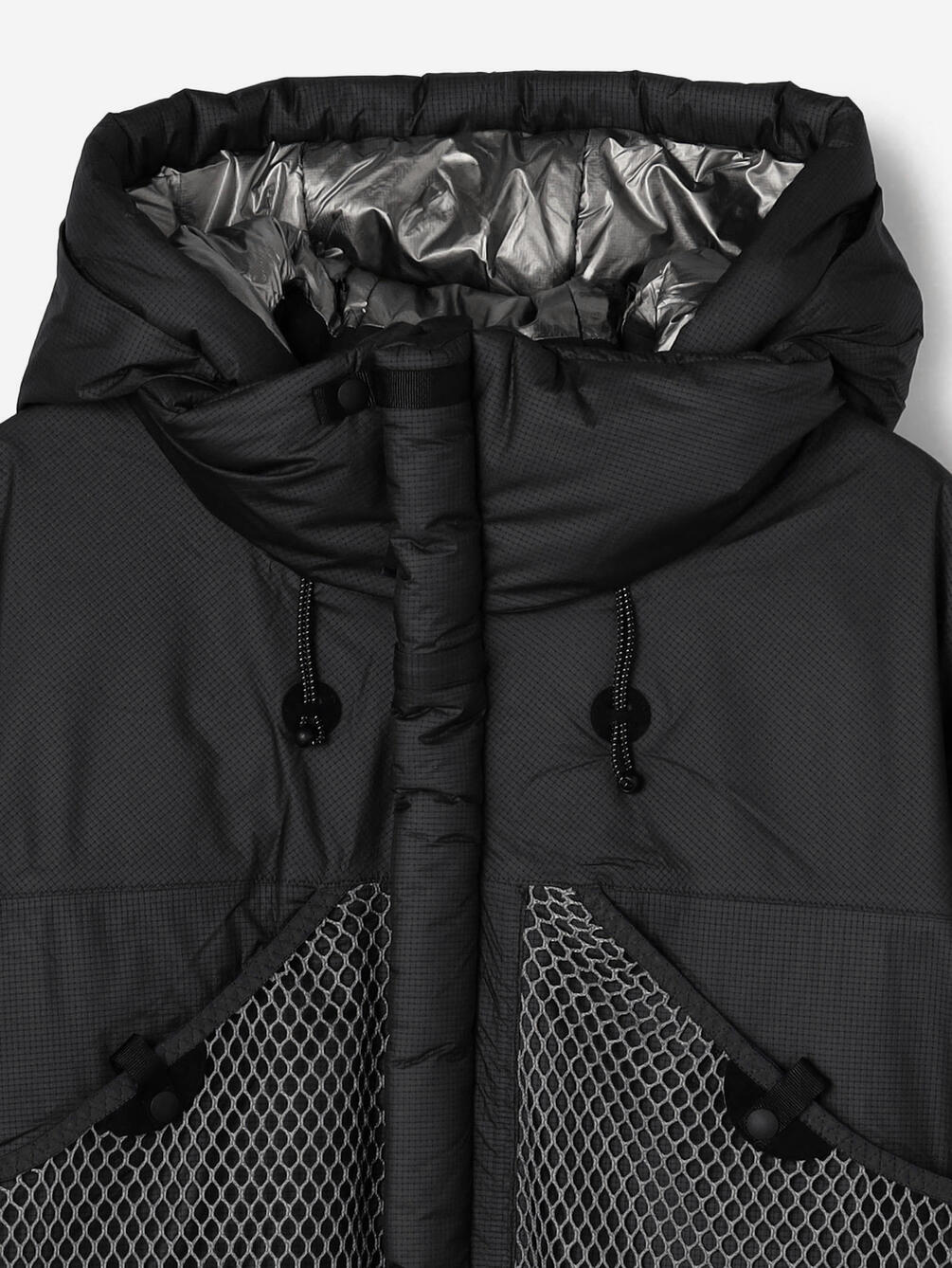 - フードと襟のドローコードシステム