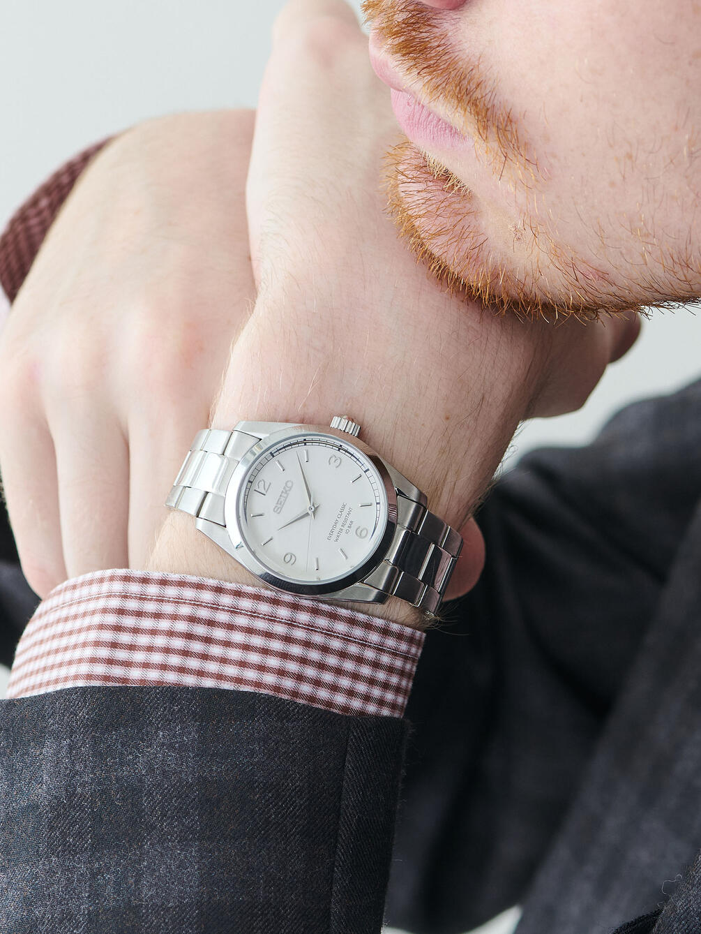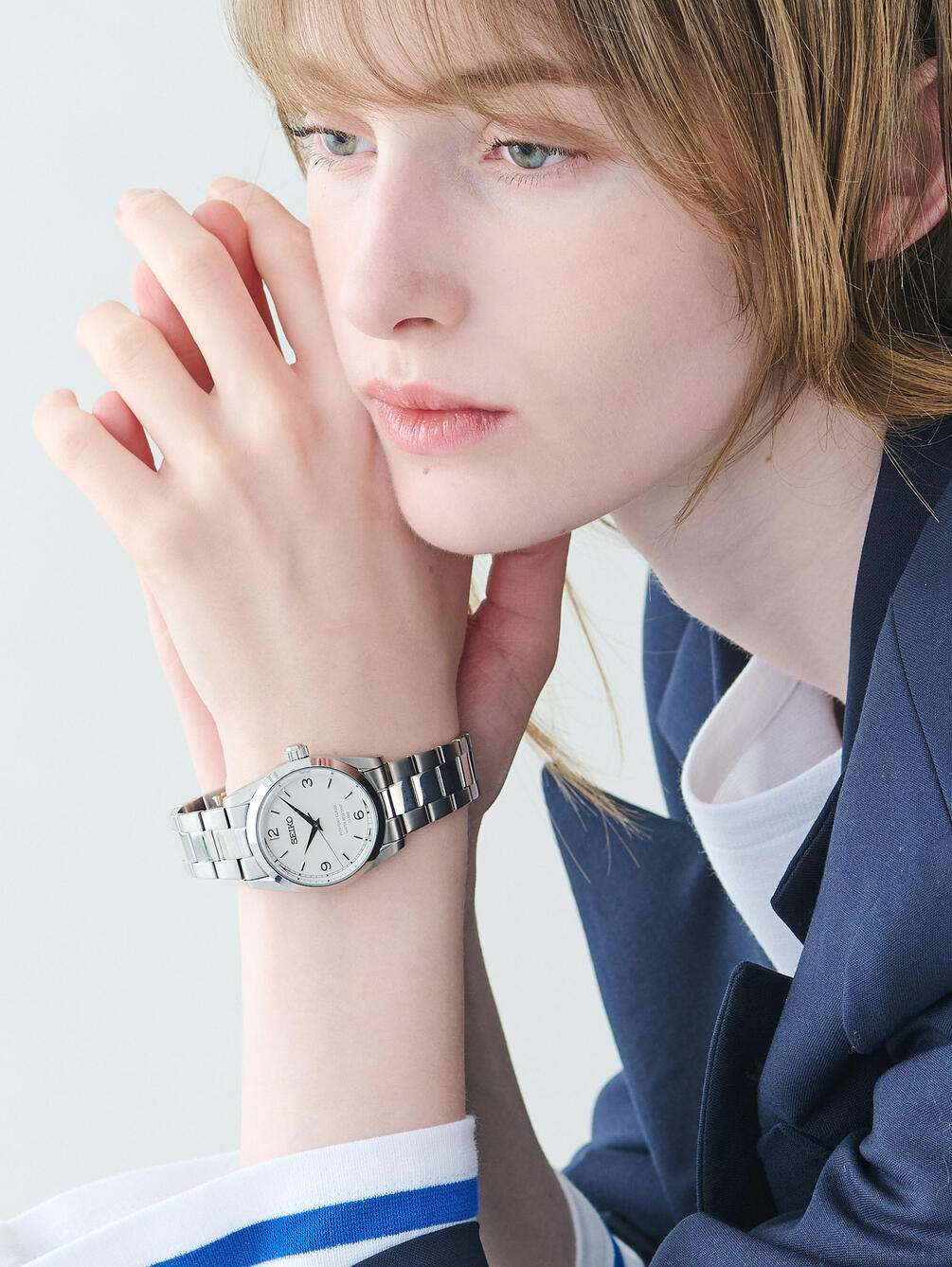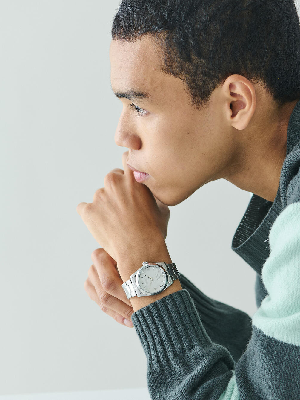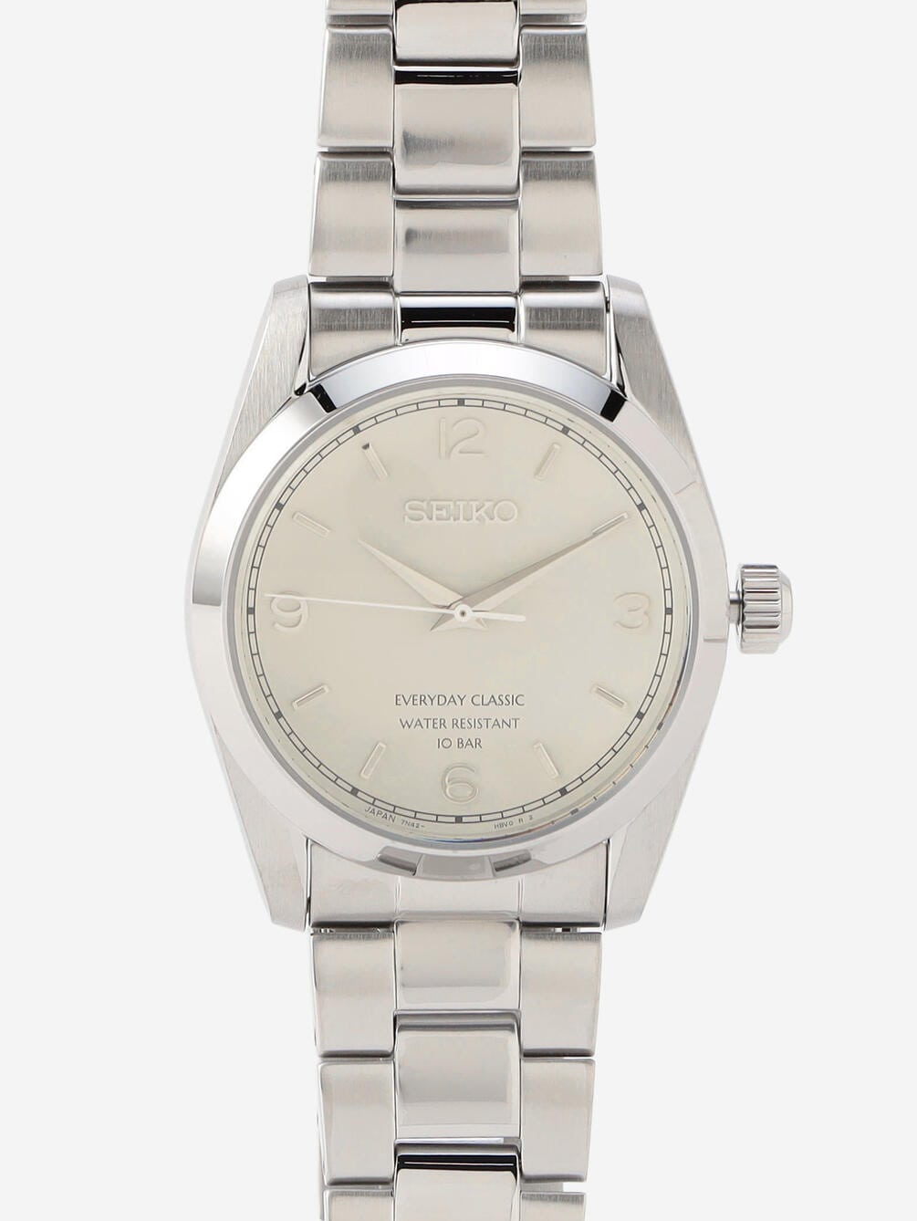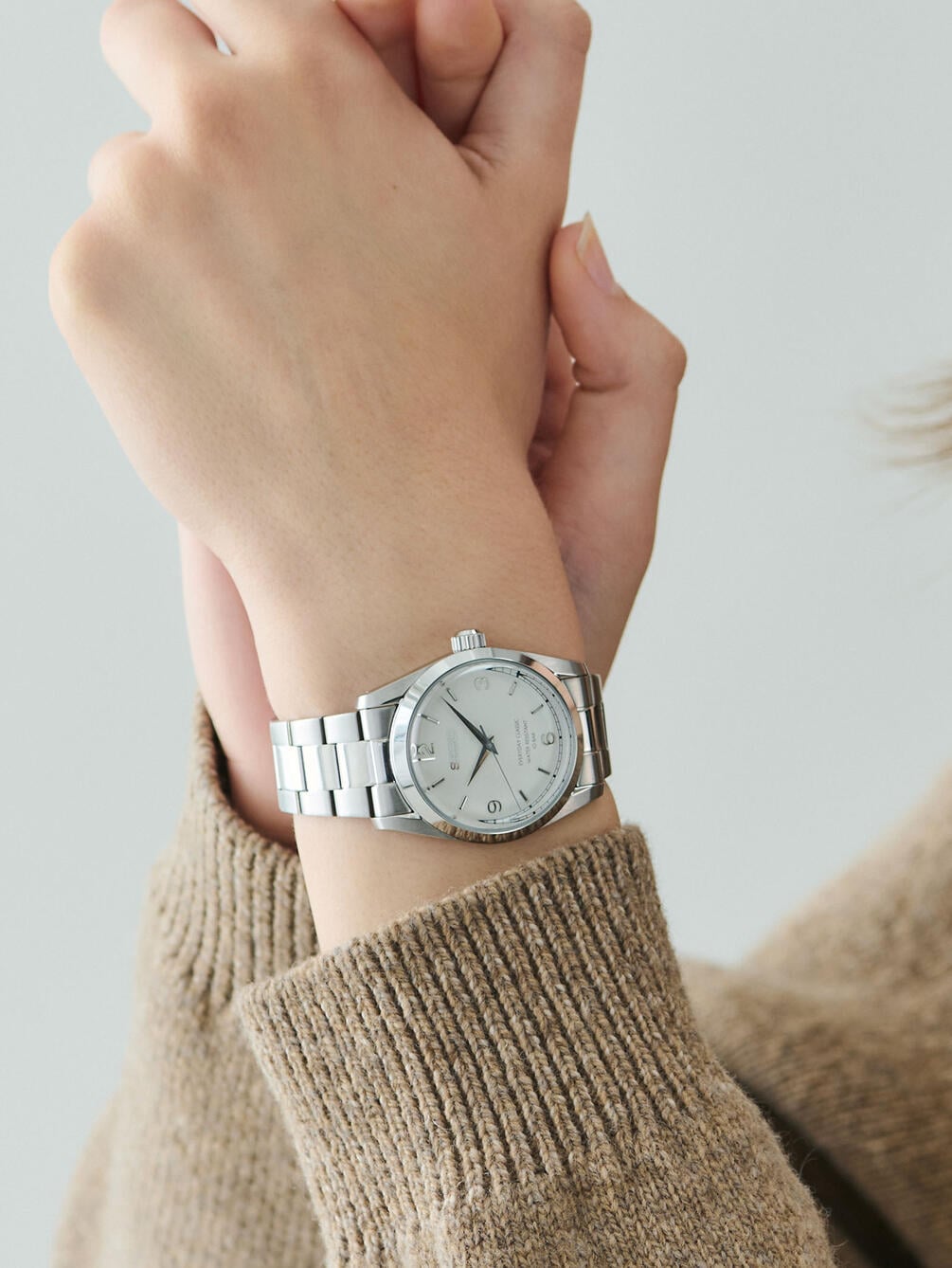 35㎜ケースは、小ぶりで主張しすぎず、性別や年齢を問わずに使える絶妙なバランス。文字盤には、長年使い込んだような風合いを感じさせるオフホワイトカラーを採用し、光の角度でさりげない立体感を生む埋め込み式のインデックスと、「EVERYDAY CLASSIC」の刻印、シンプルな3針スタイルがクラシックな表情を生み出します。毎日使えるようにムーブメントには扱いやすいクォーツ式を採用。カジュアルからトラッドまで、どんなスタイルにも合わせやすいこだわりの一本です。