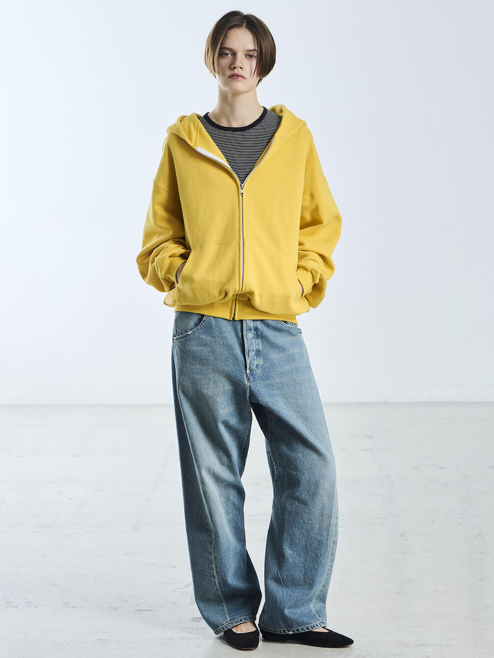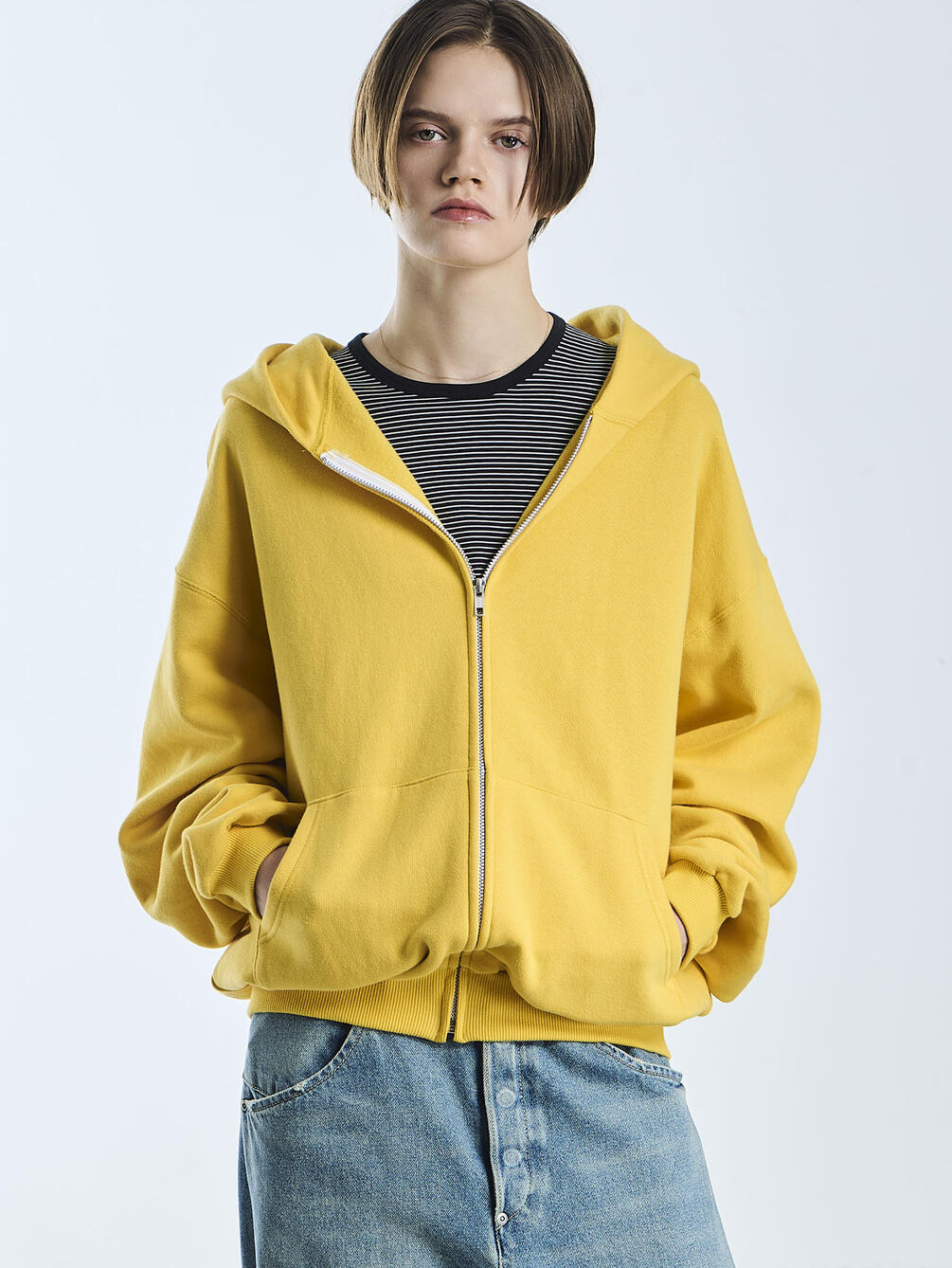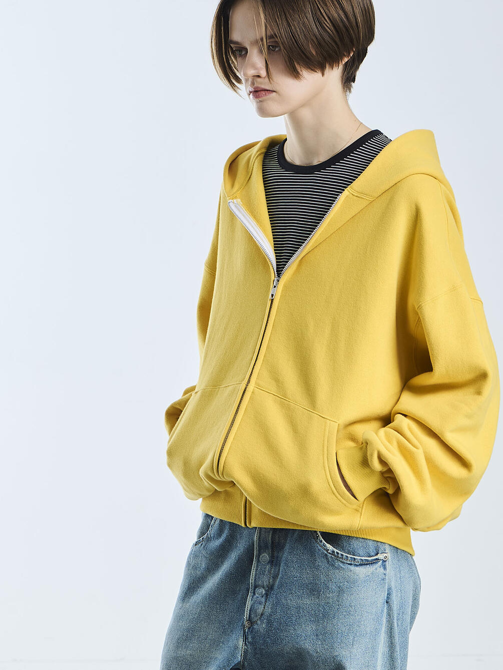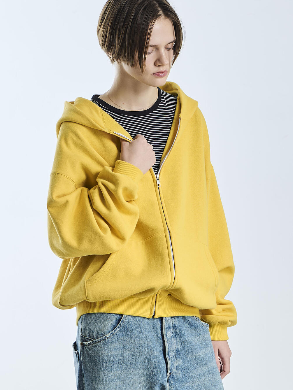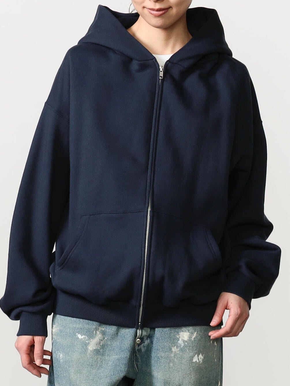 - ベーシックなジップアップフーディー
