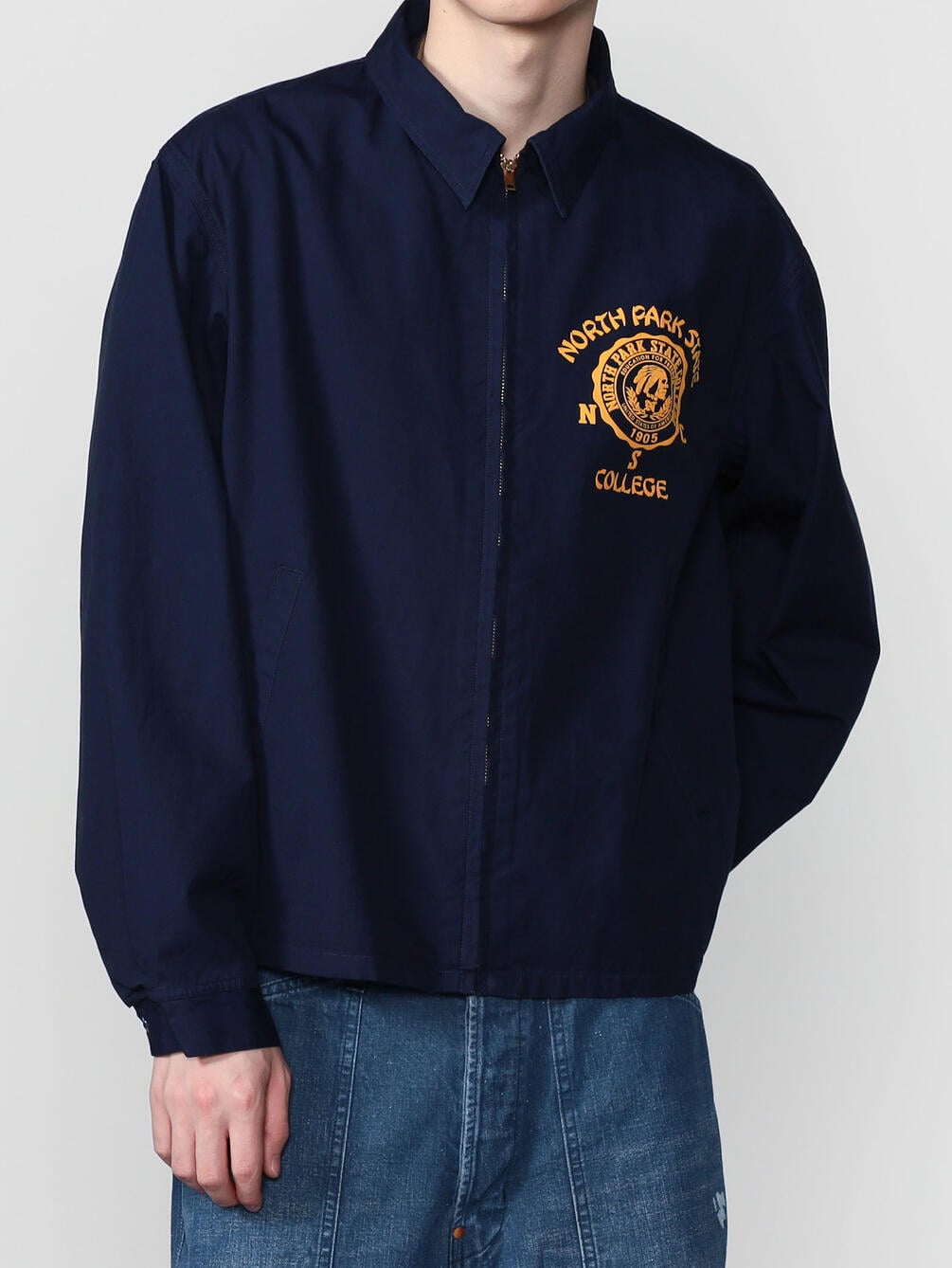 - 左胸にカレッジモチーフのフロッキープリント