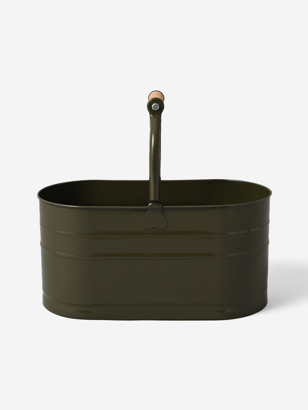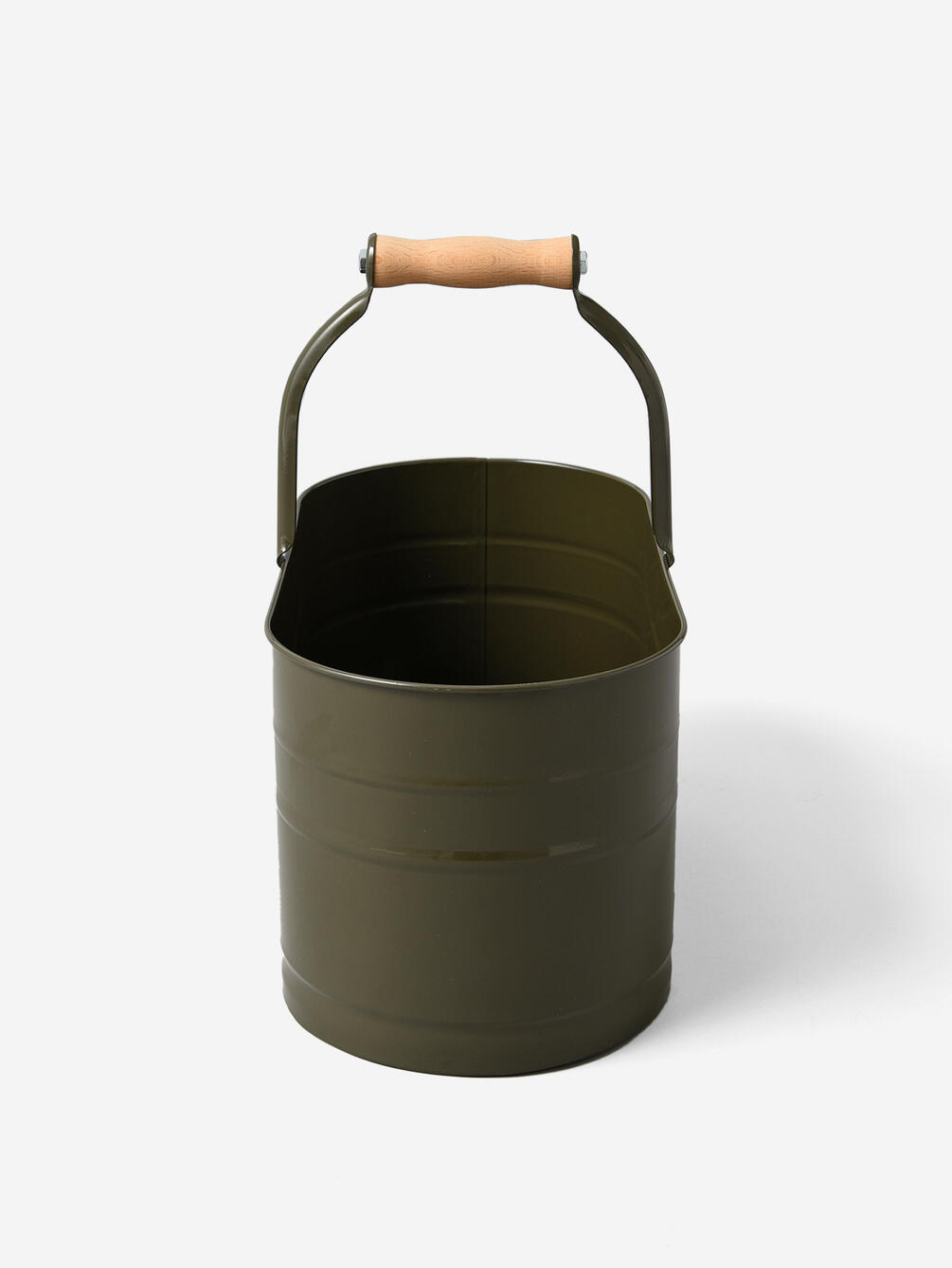 丈夫なスチールバケツ。洗剤ボトルや靴の掃除用具、ガーデンツール、雑誌、スリッパなど、アイデア次第でいろいろな物の収納に役立ちます。