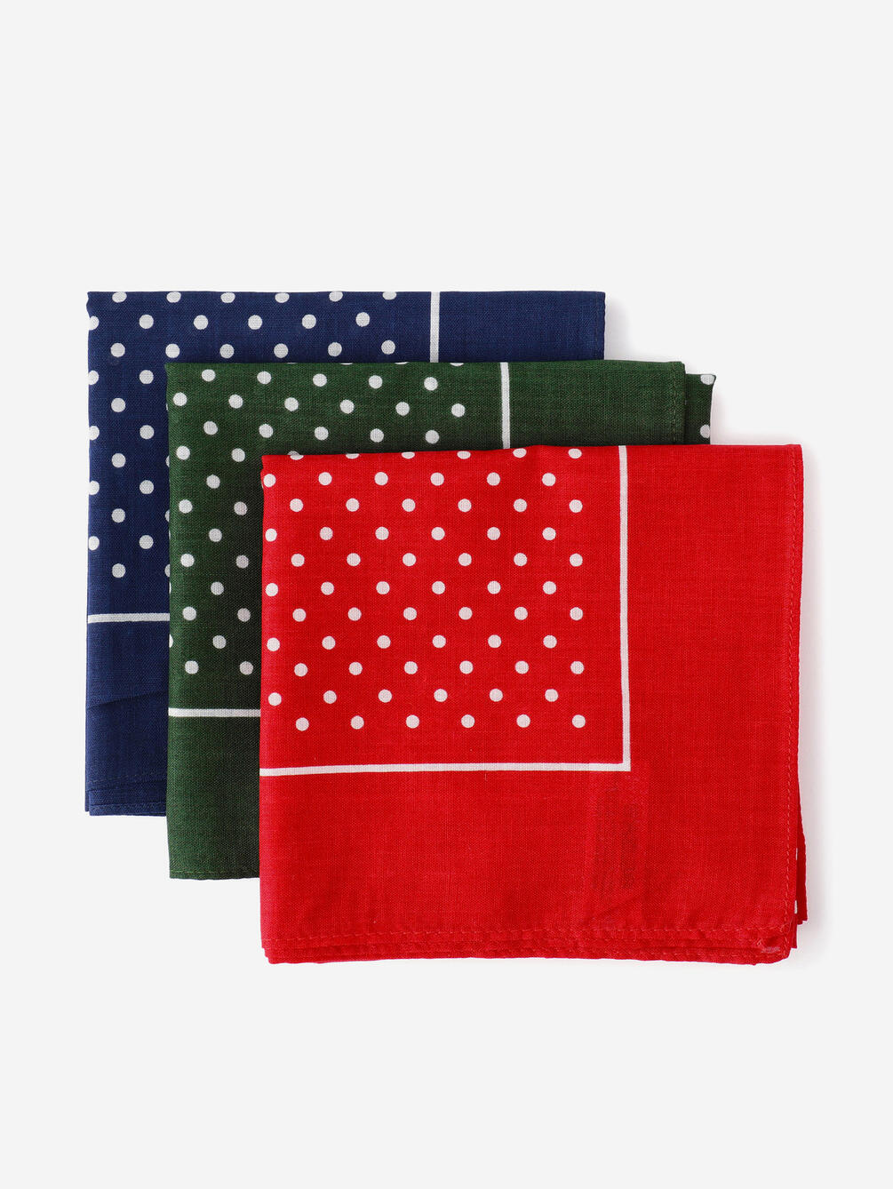 クラシックな水玉のコットンハンカチーフは、時代を超越したアクセサリーであり、ハンカチとしてだけではなく、ネックチーフやバンダナとしても使えます。