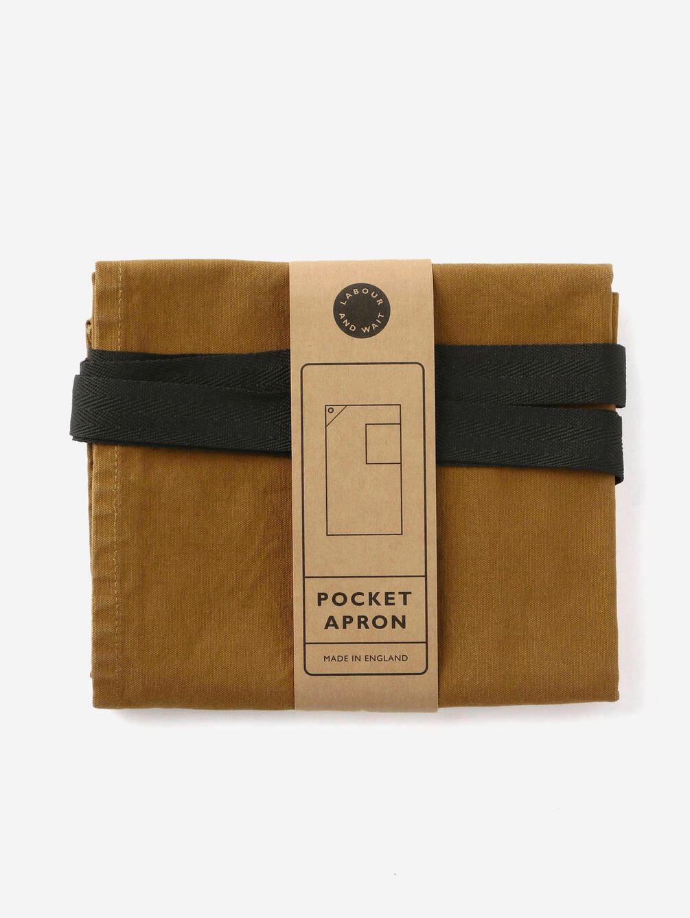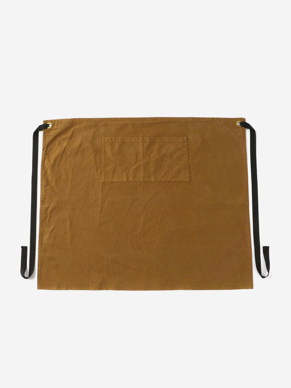 「LABOUR AND WAIT」の定番エプロンのショートタイプ。丈夫なコットン100%のブラウンダック生地、真鍮の鳩目、ヘリンボーン織りのテープを使用しています。フロントに機能的なポケット付き。使い込むほどに味が出て経年変化が楽しめます。