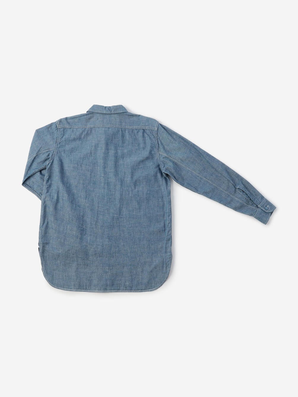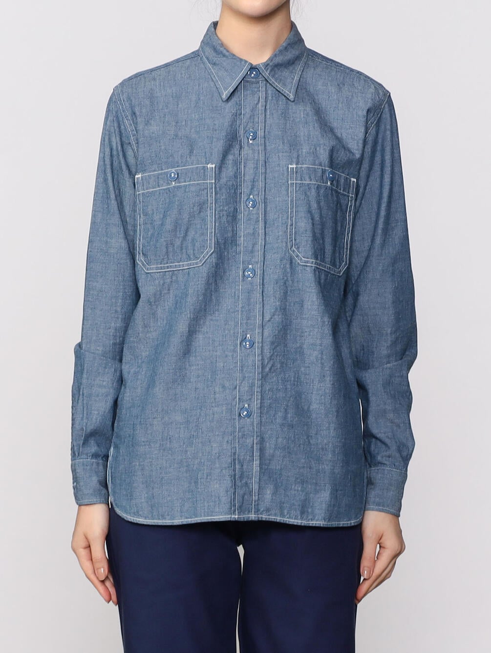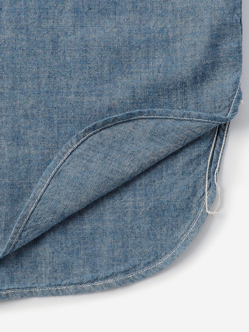 - 洗いこむほどに経年変化を楽しめるエイジングシャンブレーを使用した日本製のワークシャツ