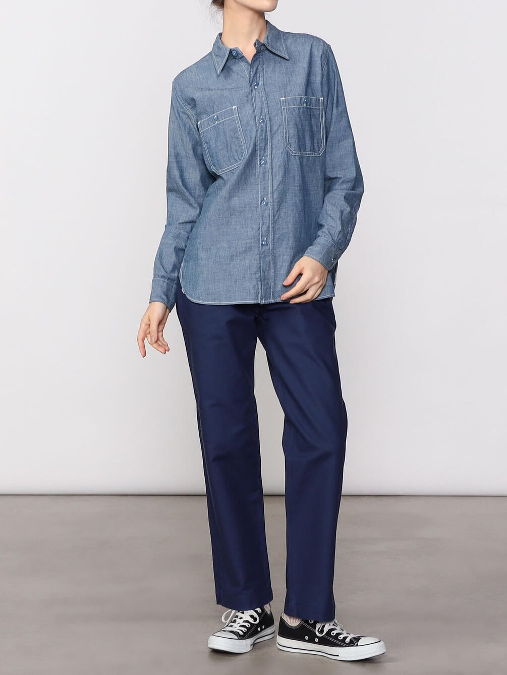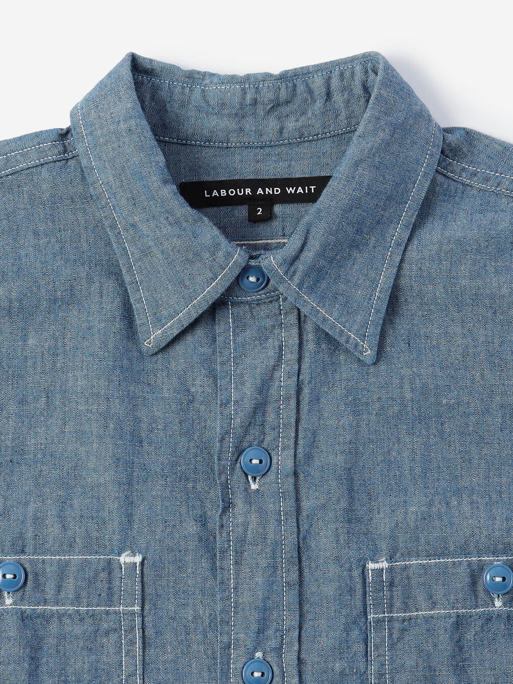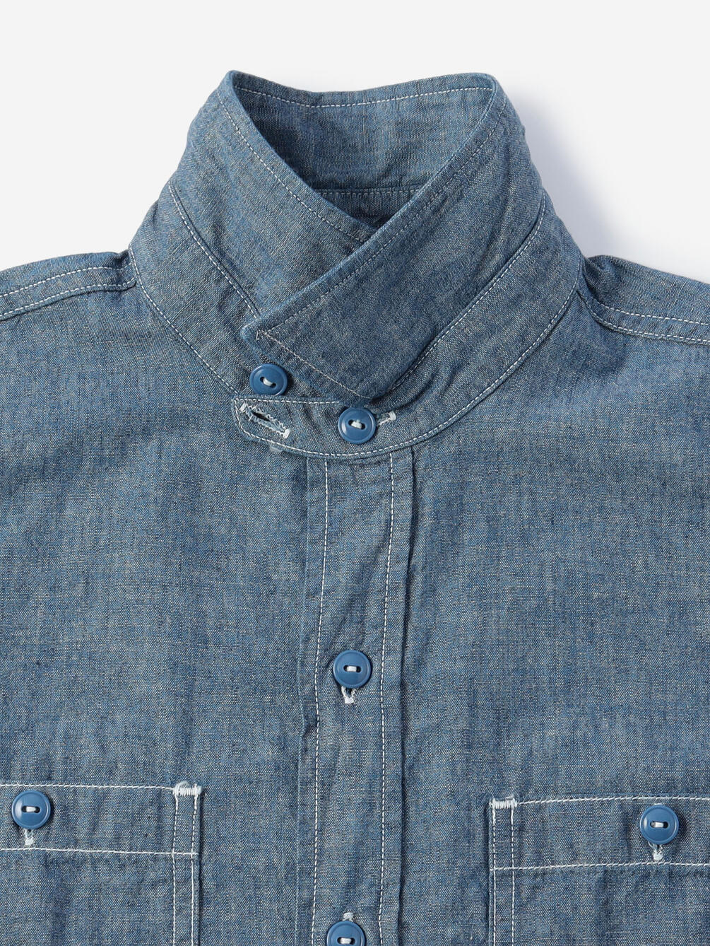 - 洗いこむほどに経年変化を楽しめるエイジングシャンブレーを使用した日本製のワークシャツ