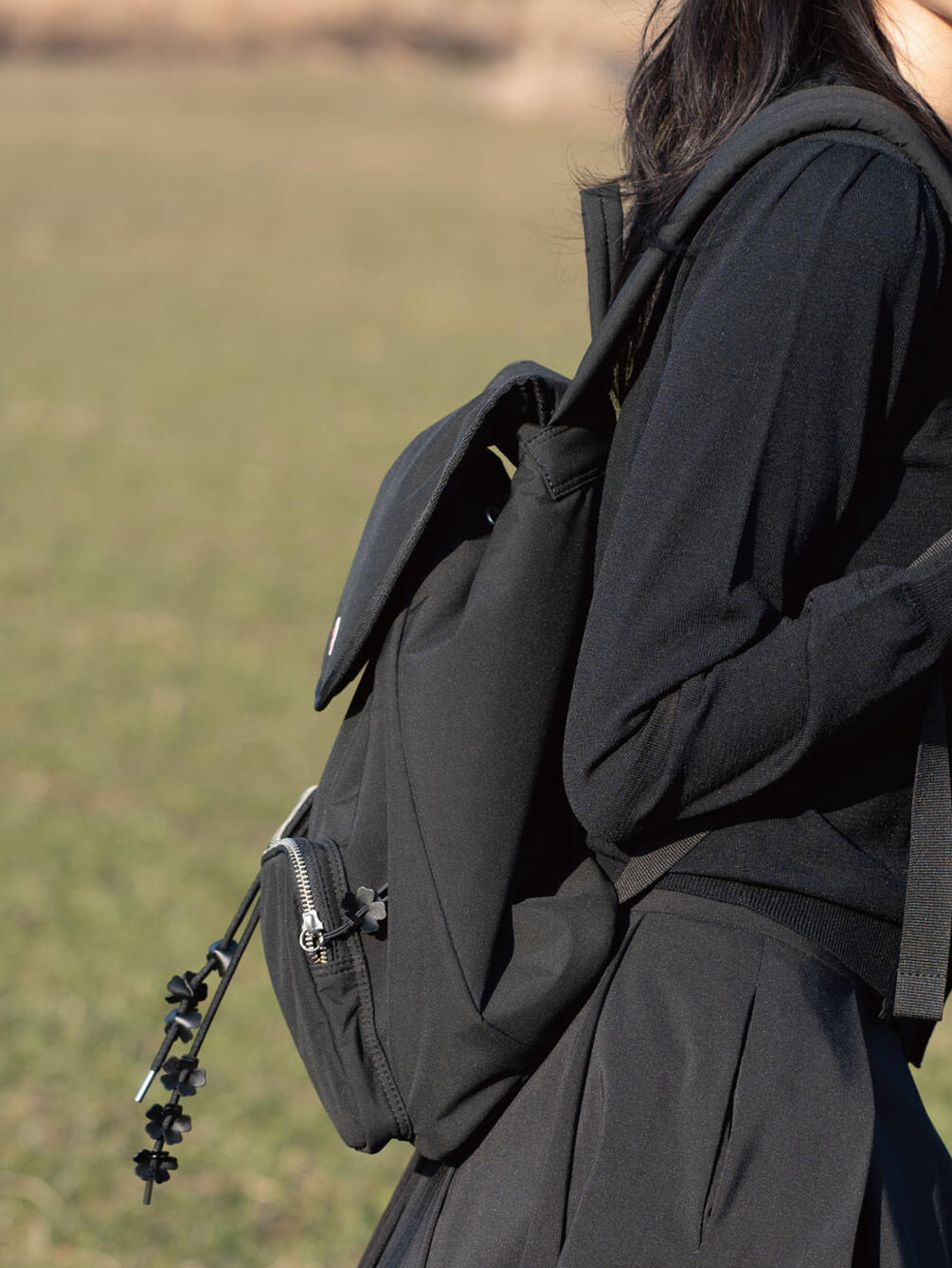 - 引き手・ドローコードの先端にフラワーモチーフの装飾