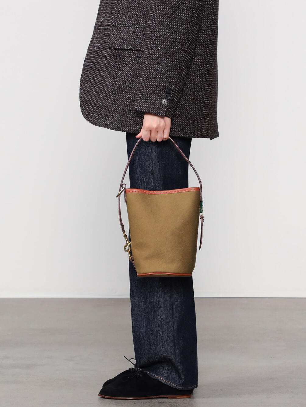 - スマートなルックスのバケット型バッグ「FANE」