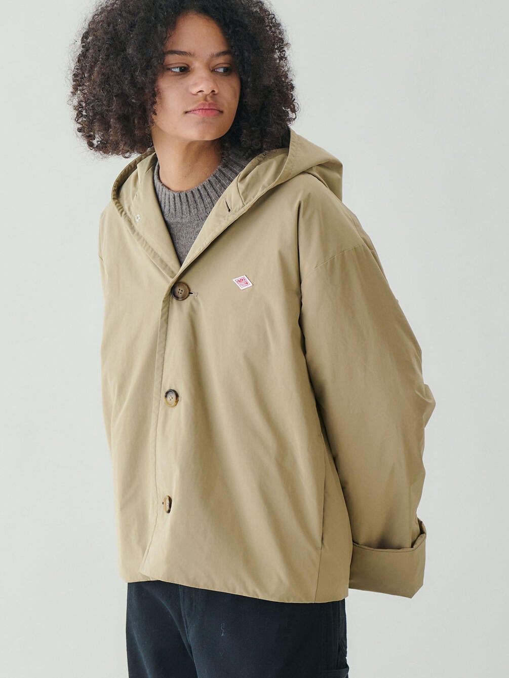 - 共布の袖裏を配したロールアップが映える袖口