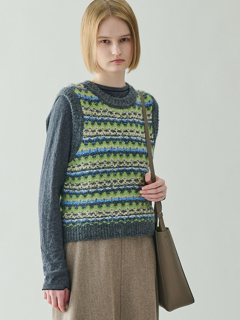 - クルーネックのニットベスト