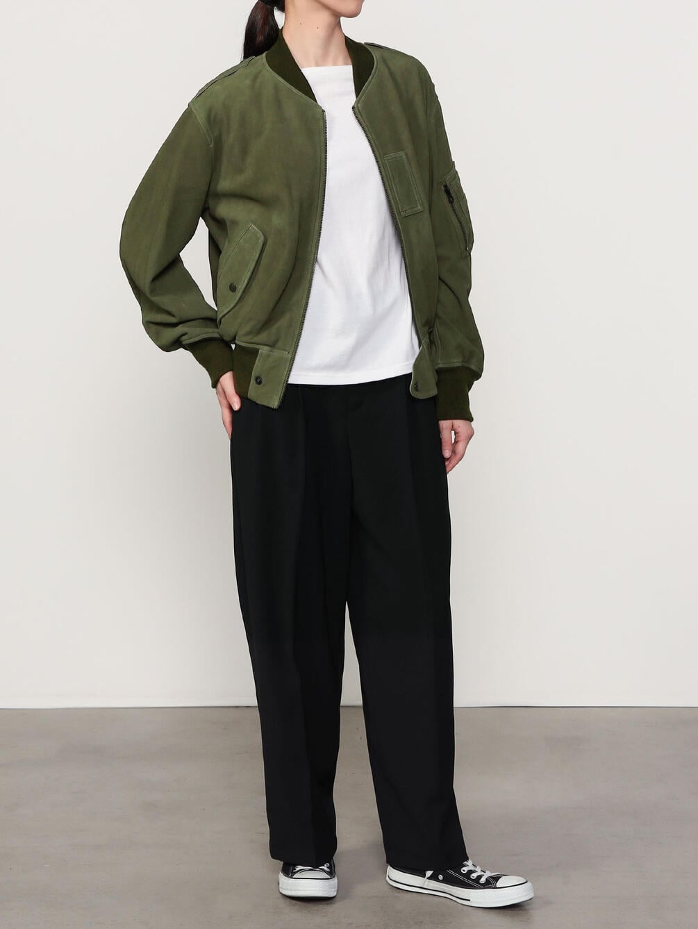 素材 | 表地:羊革 裏地:レーヨン54% 綿46% 衿リブ:毛100% 袖口 裾リブ:毛90% ナイロン9% ポリウレタン1% |