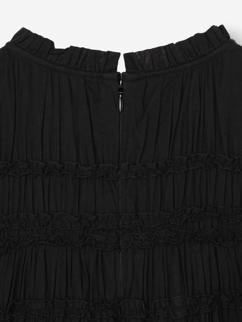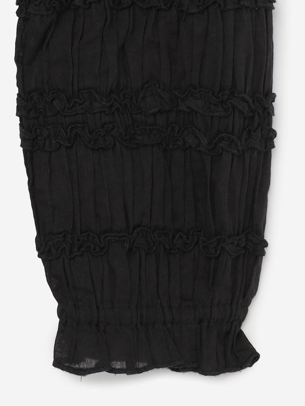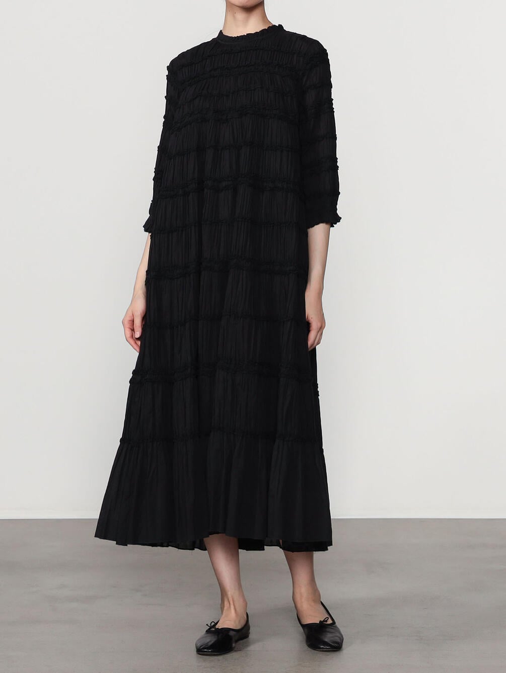 - 寄せ集めたギャザーにフリルを配したデザイン