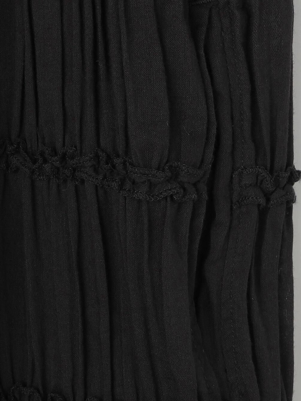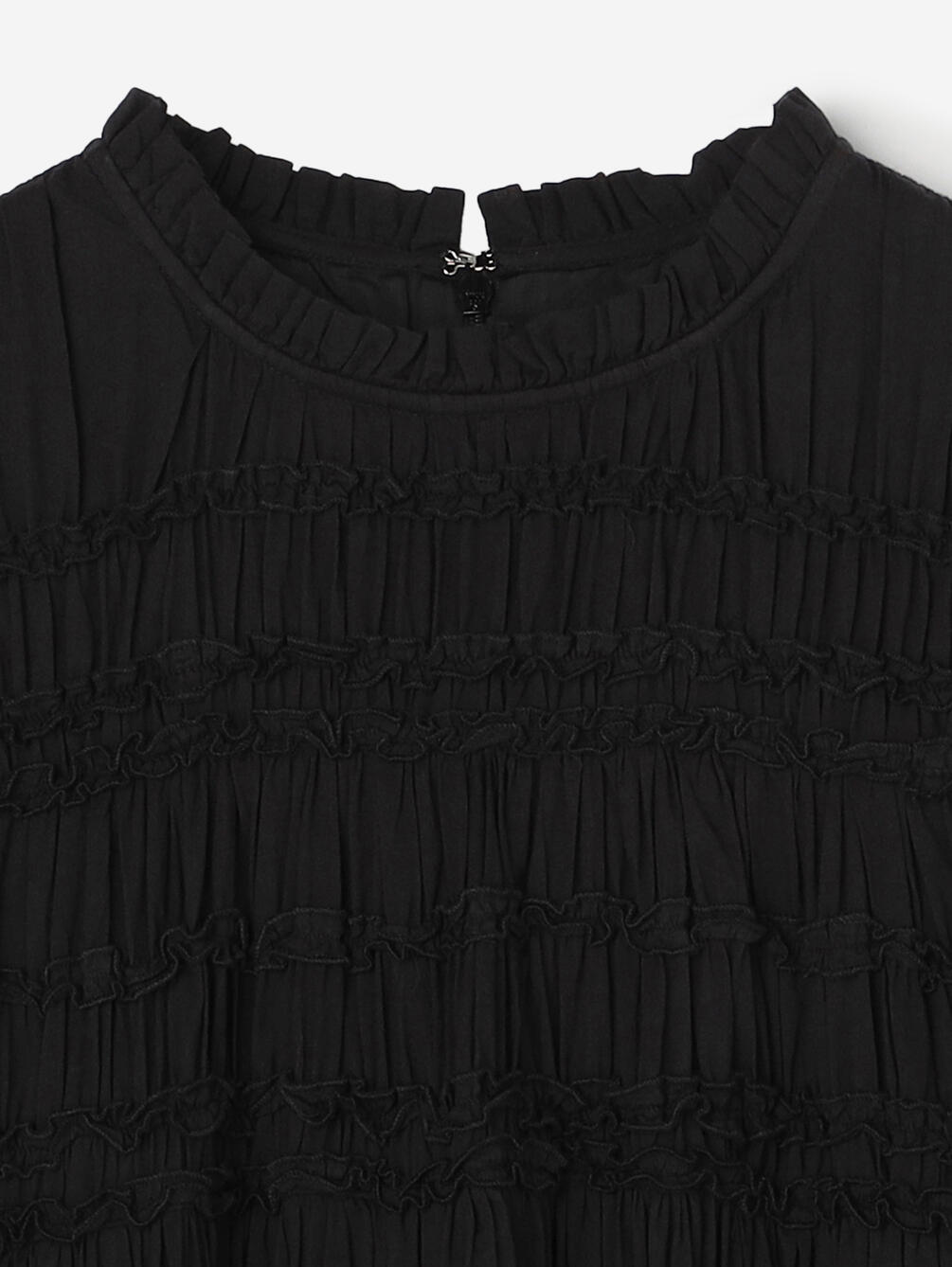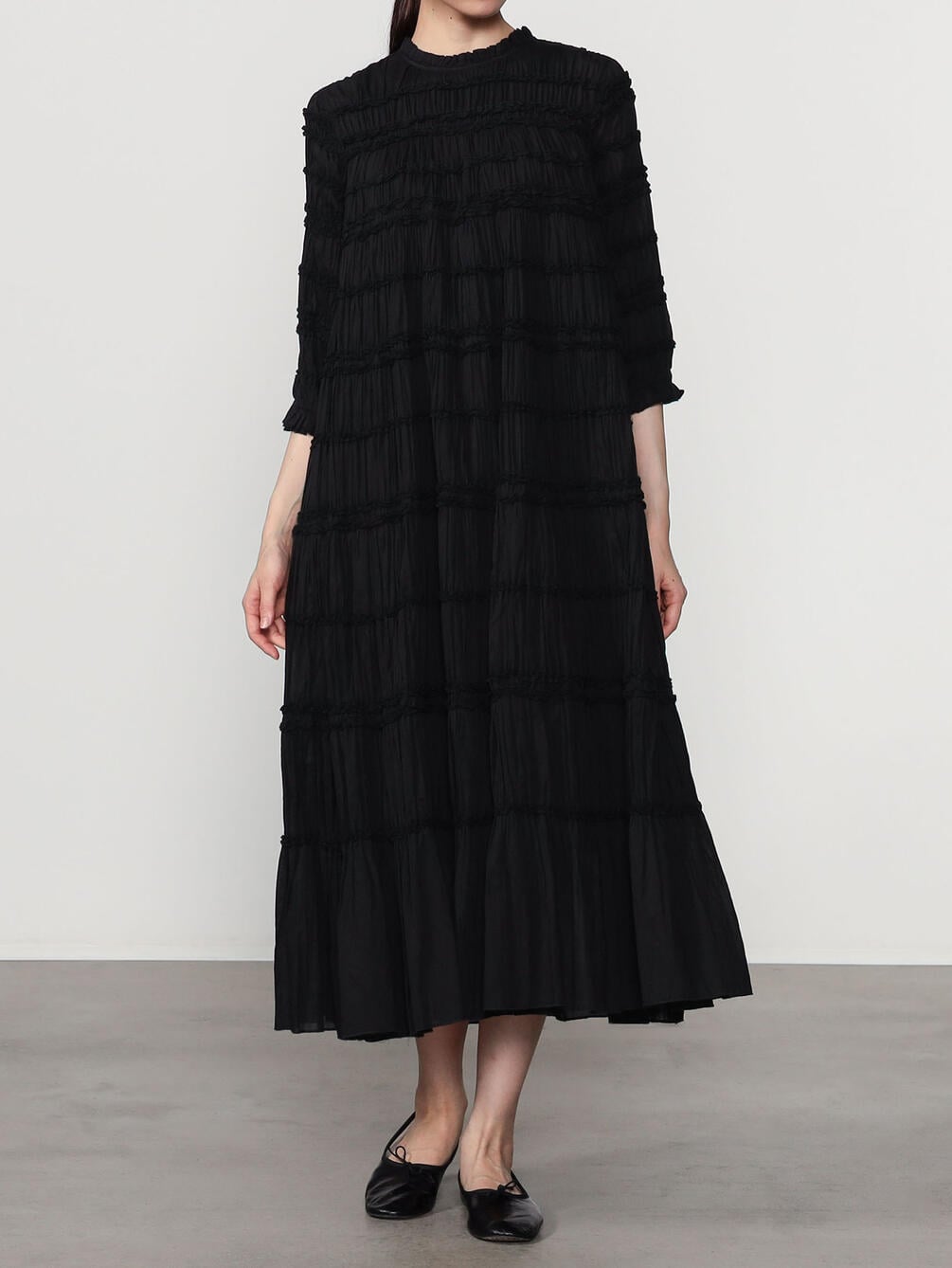 - 寄せ集めたギャザーにフリルを配したデザイン