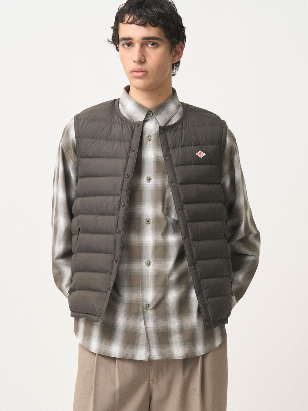 - クルーネックのインナーダウンベスト