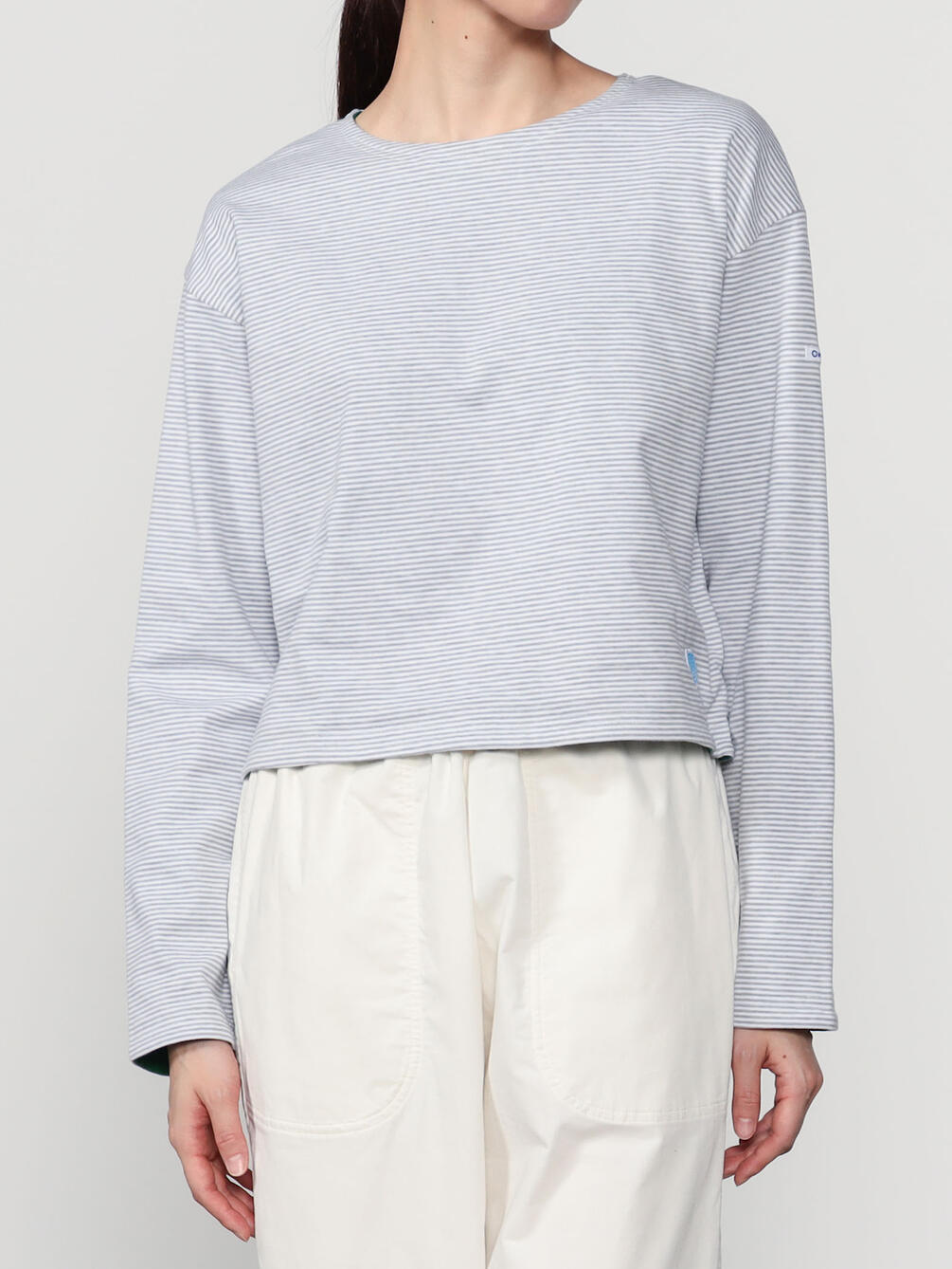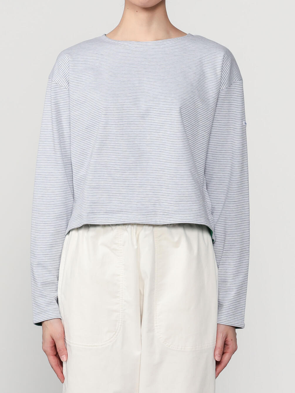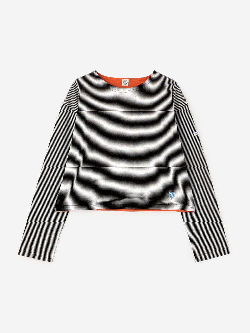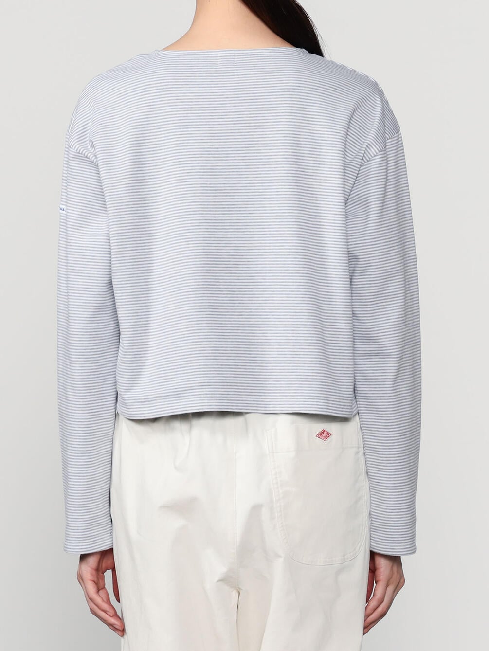 - 表地に糸染めボーダー、裏地に色味のきれいな単色天竺を合わせた2枚仕立てのカットソー
