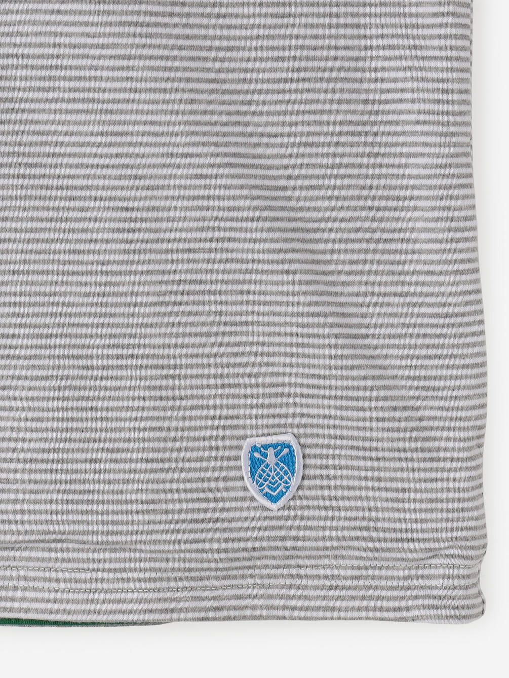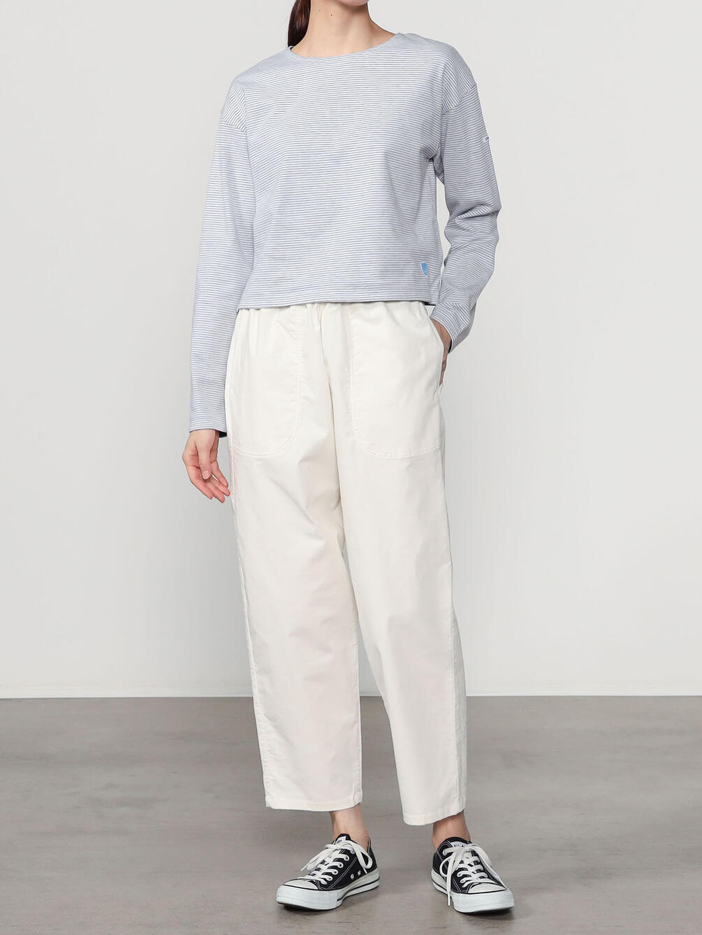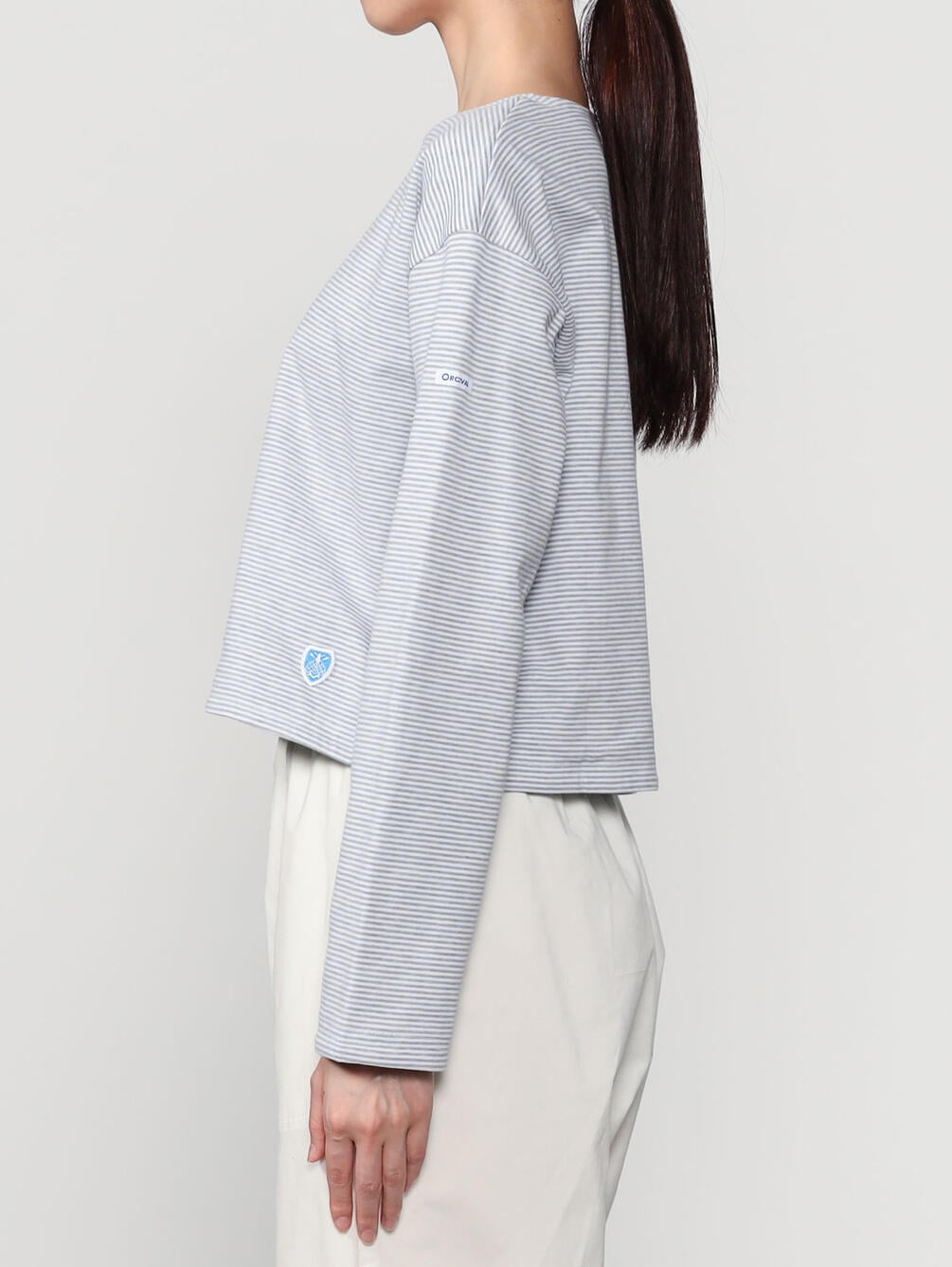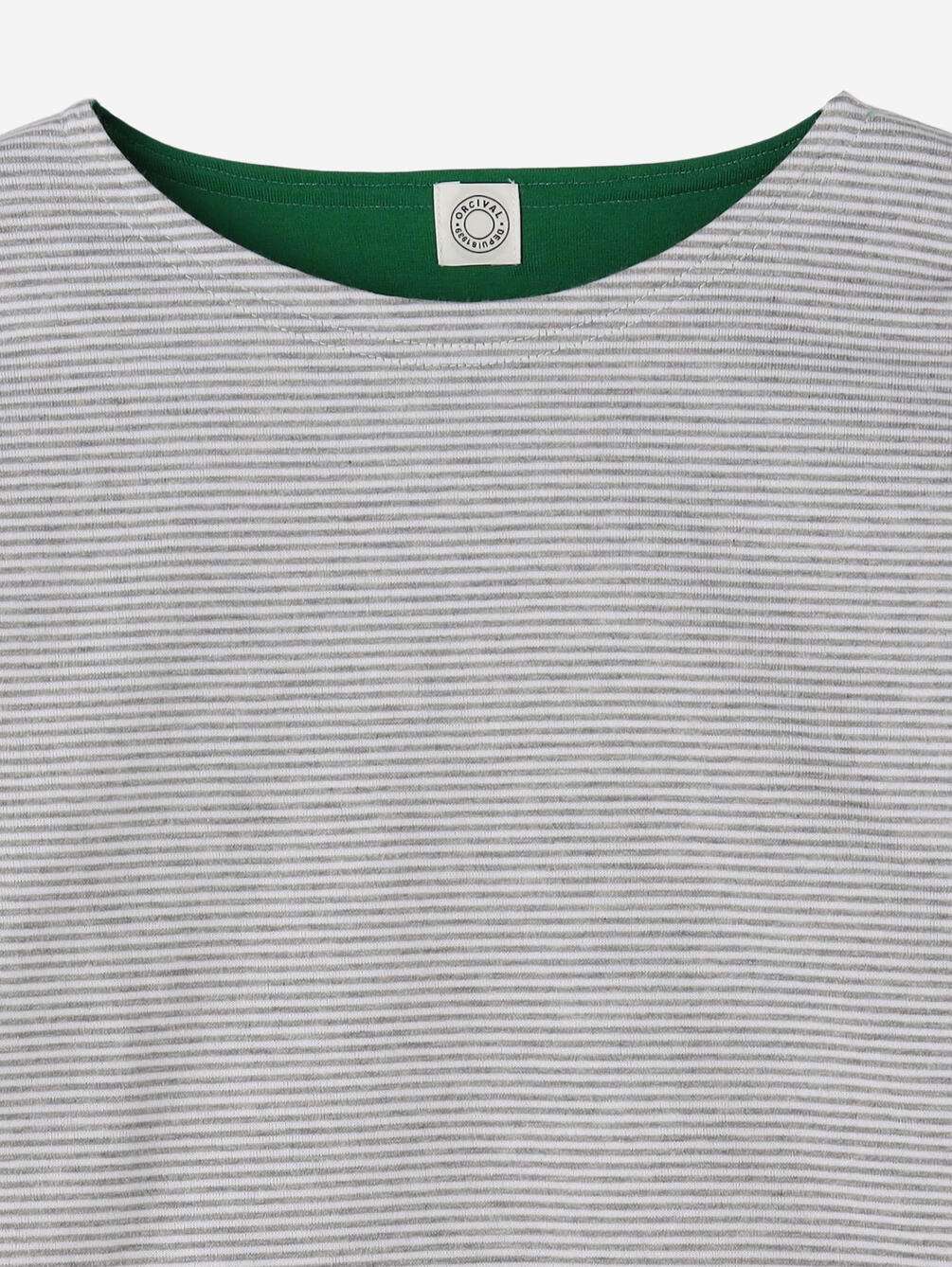 - 表地に糸染めボーダー、裏地に色味のきれいな単色天竺を合わせた2枚仕立てのカットソー