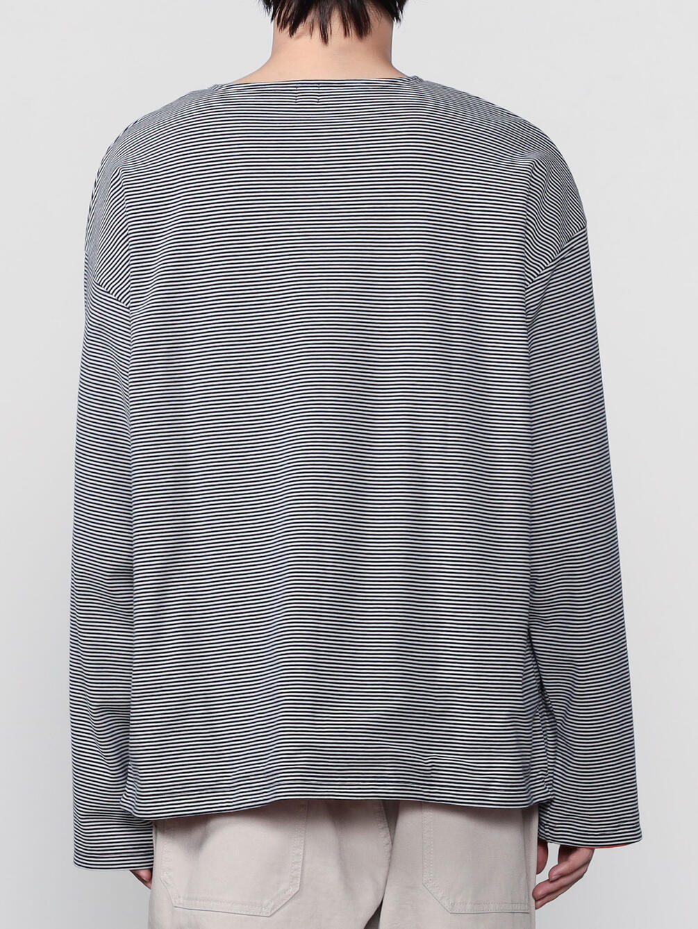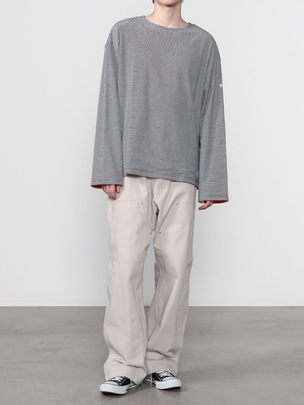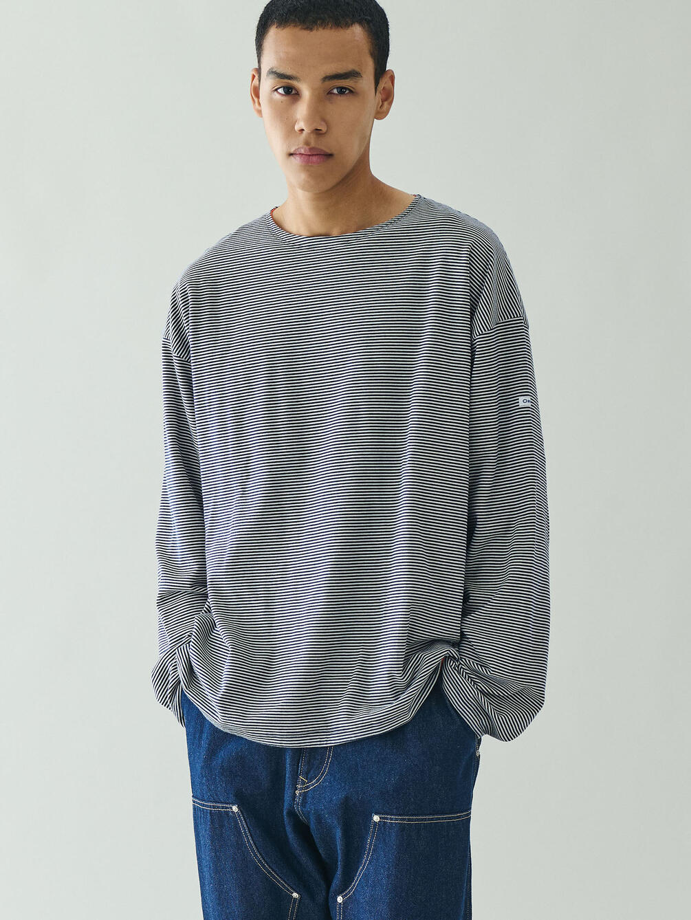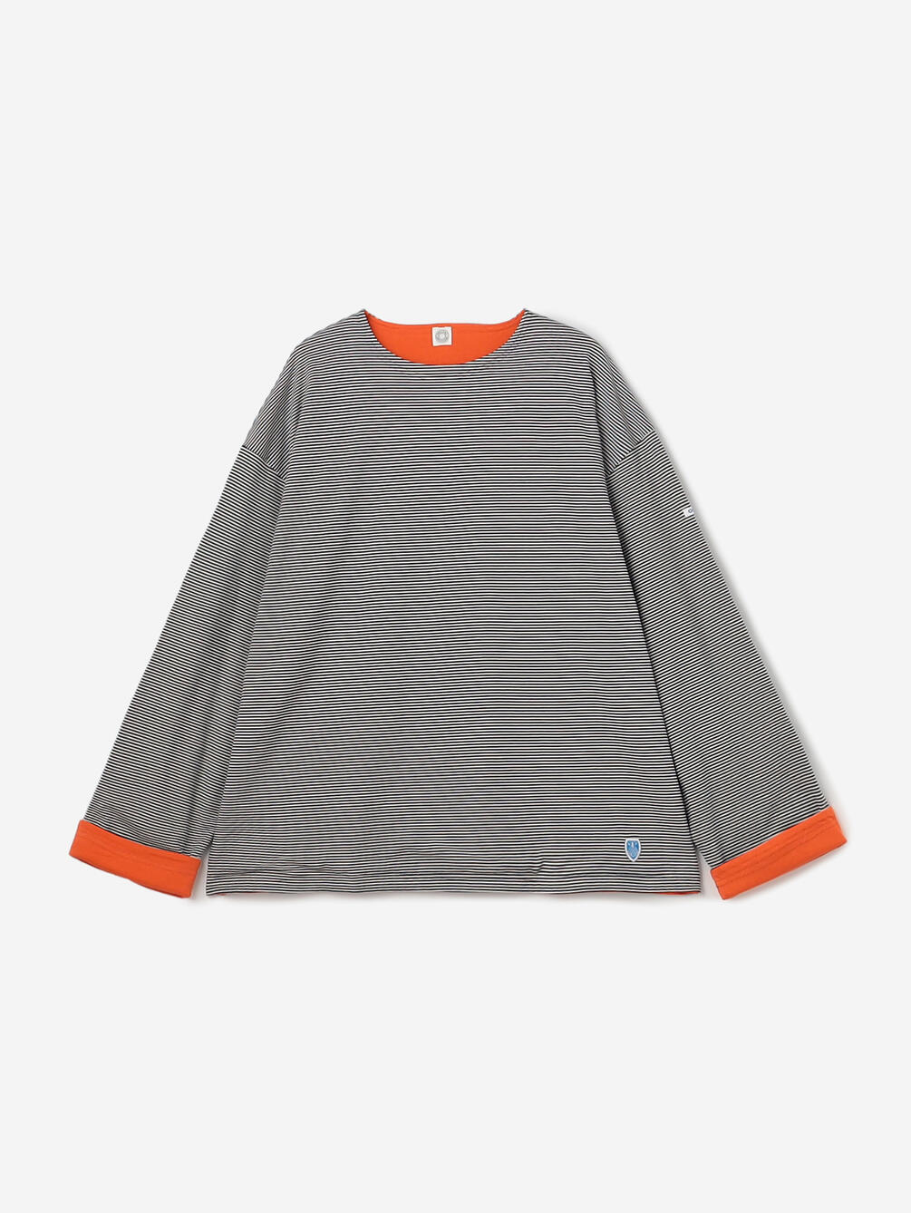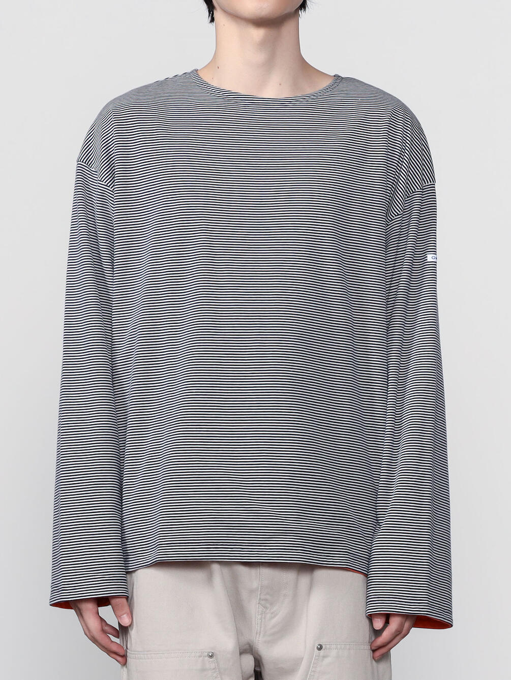 - 表地に糸染めボーダー、裏地に色味のきれいな単色天竺を合わせた2枚仕立てのカットソー