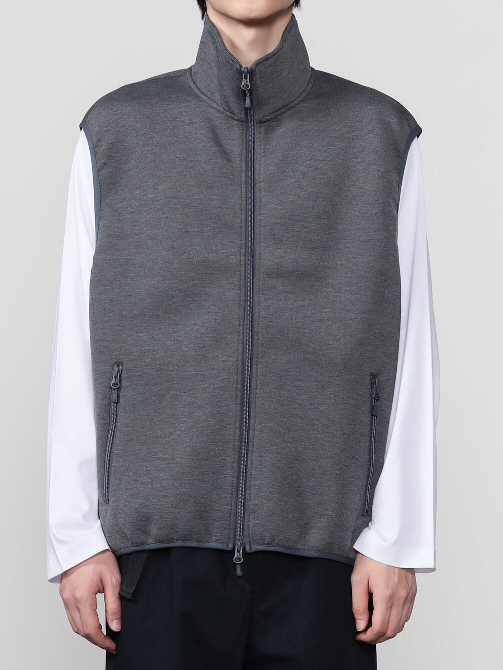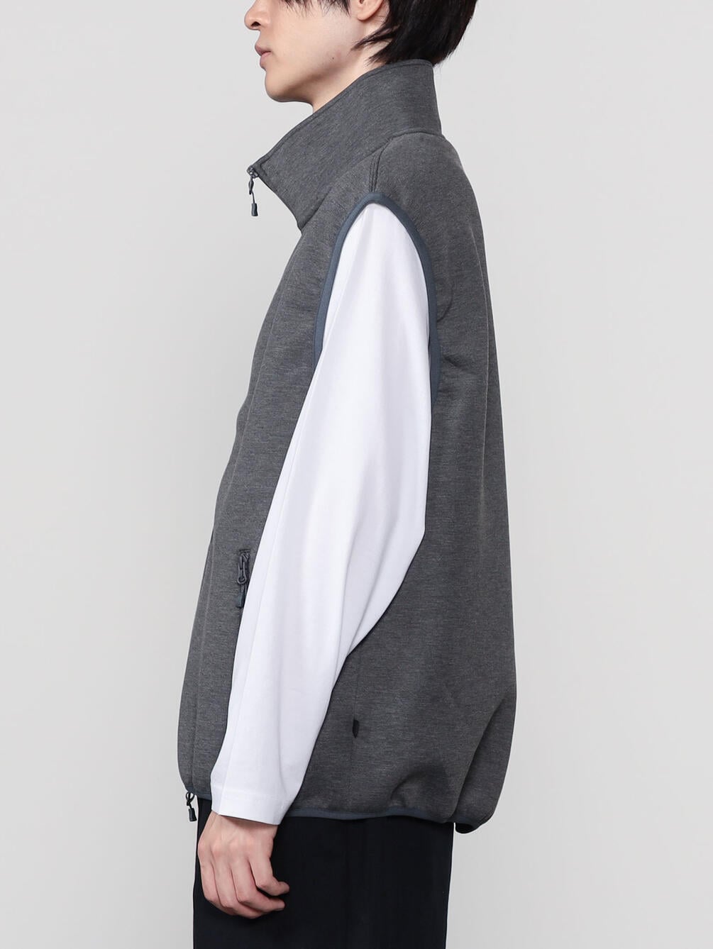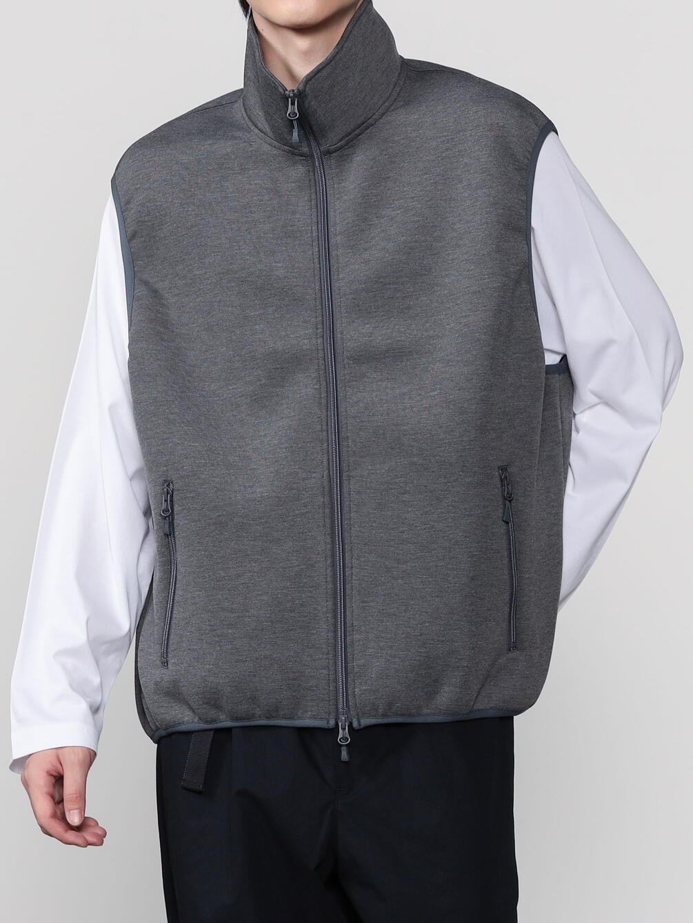 - スタンドカラーのスウェットベスト
