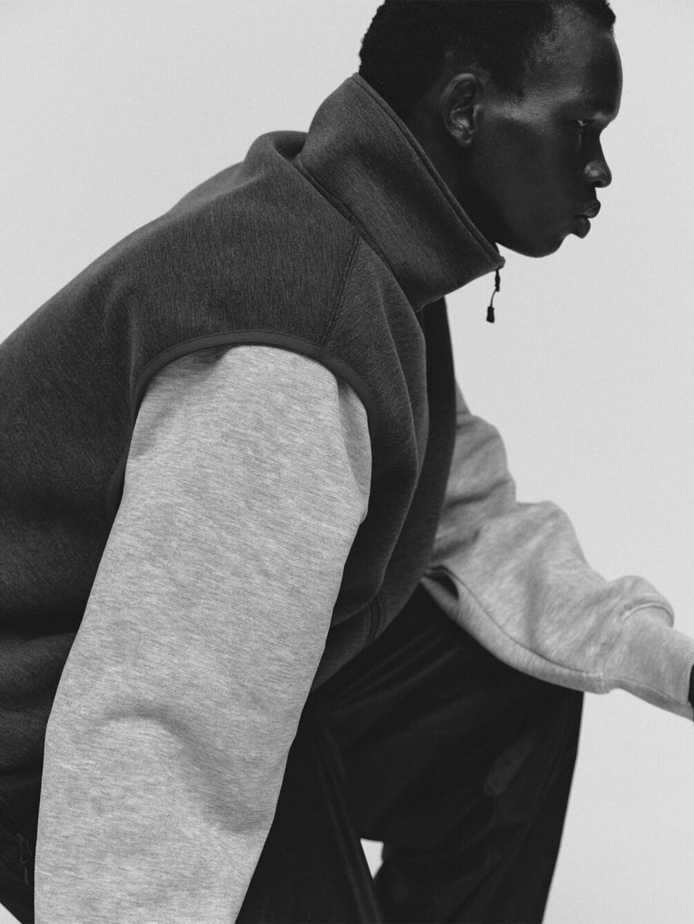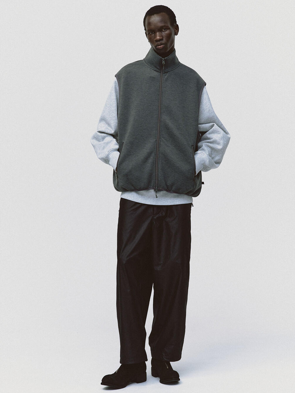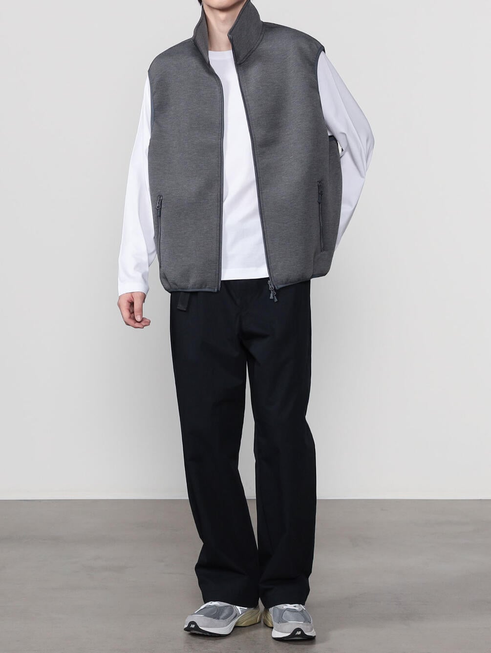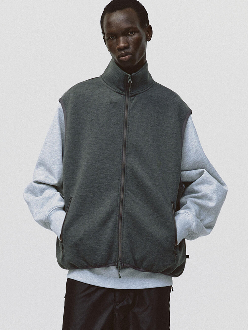 - スタンドカラーのスウェットベスト