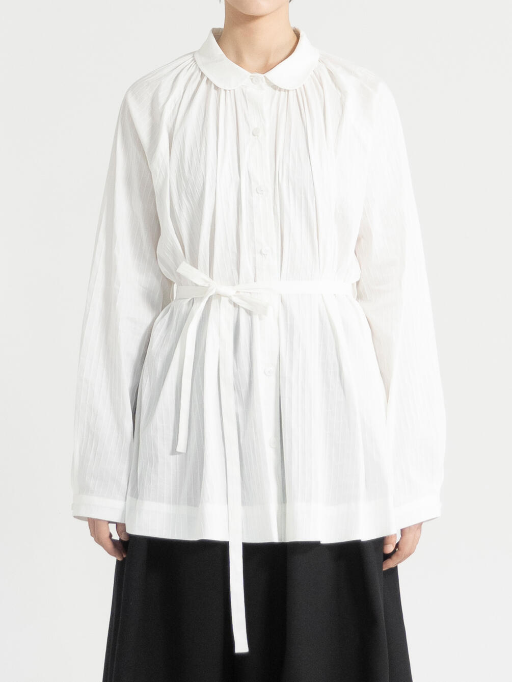 - スモールラウンドカラーの長袖ブラウス