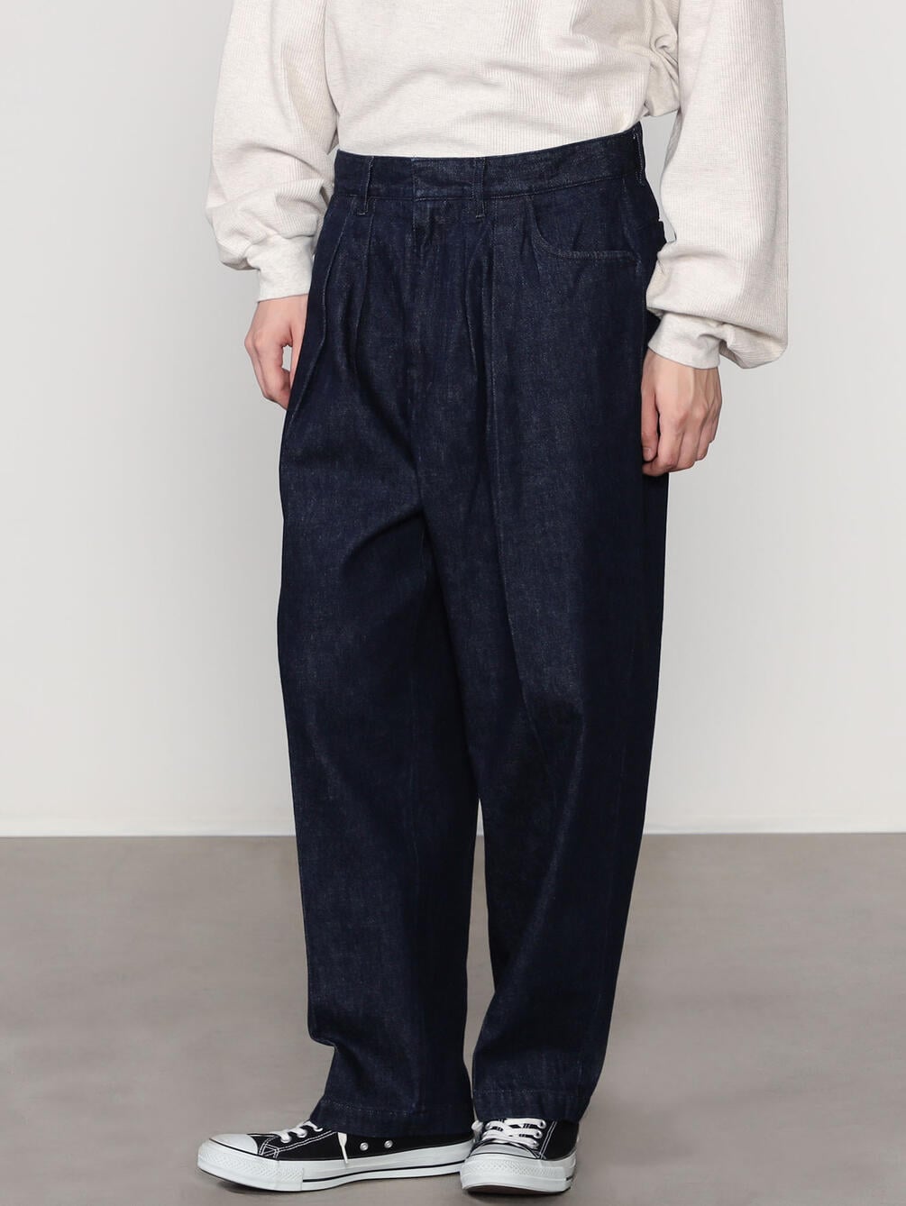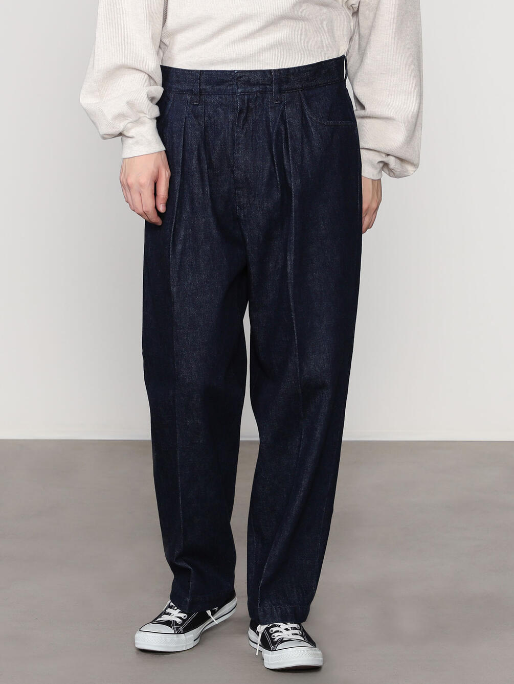 - センタープレス入りの2タックデニム
