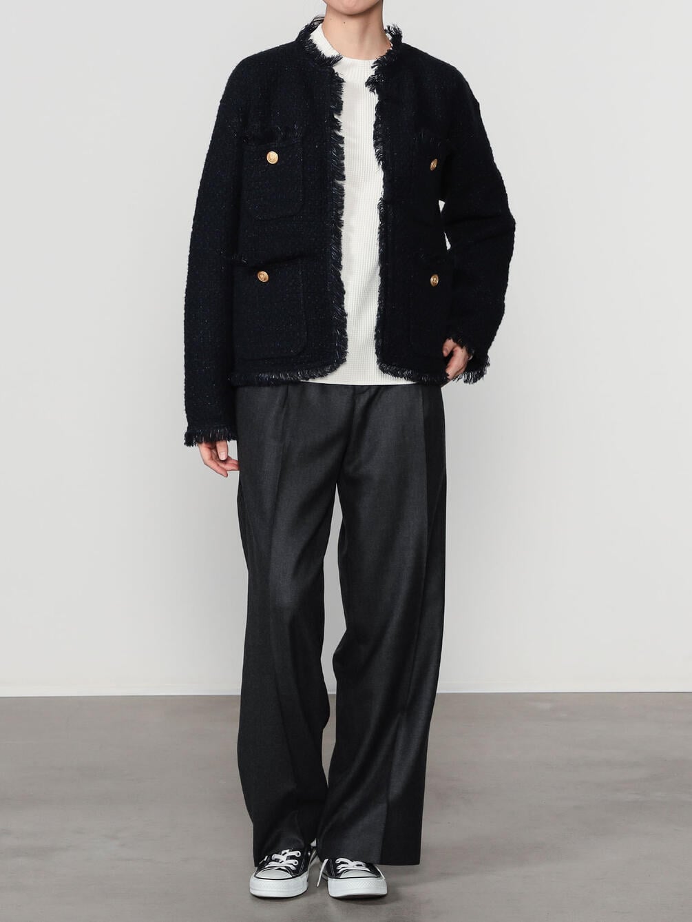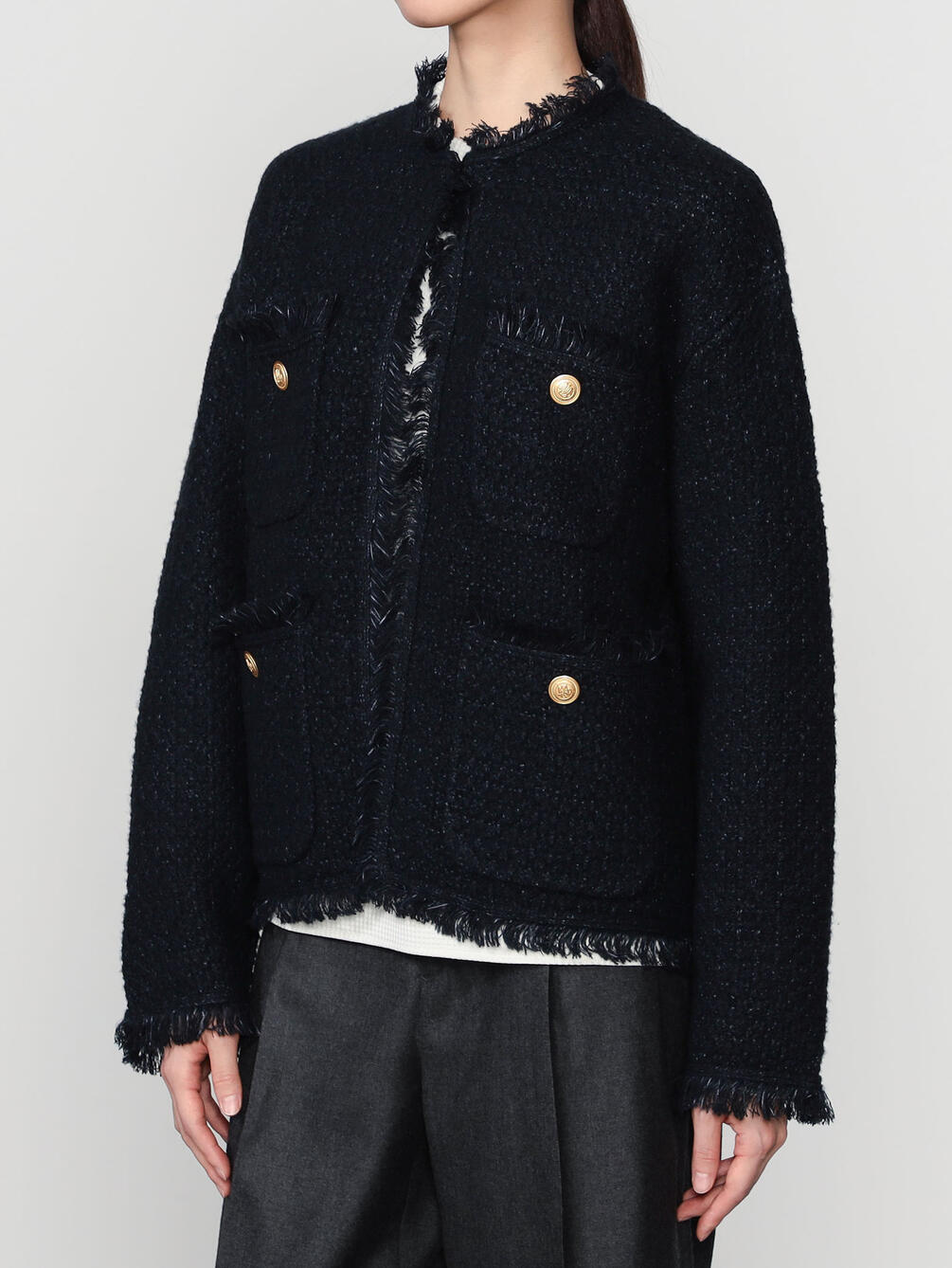 - ツイードライクなニットジャケット