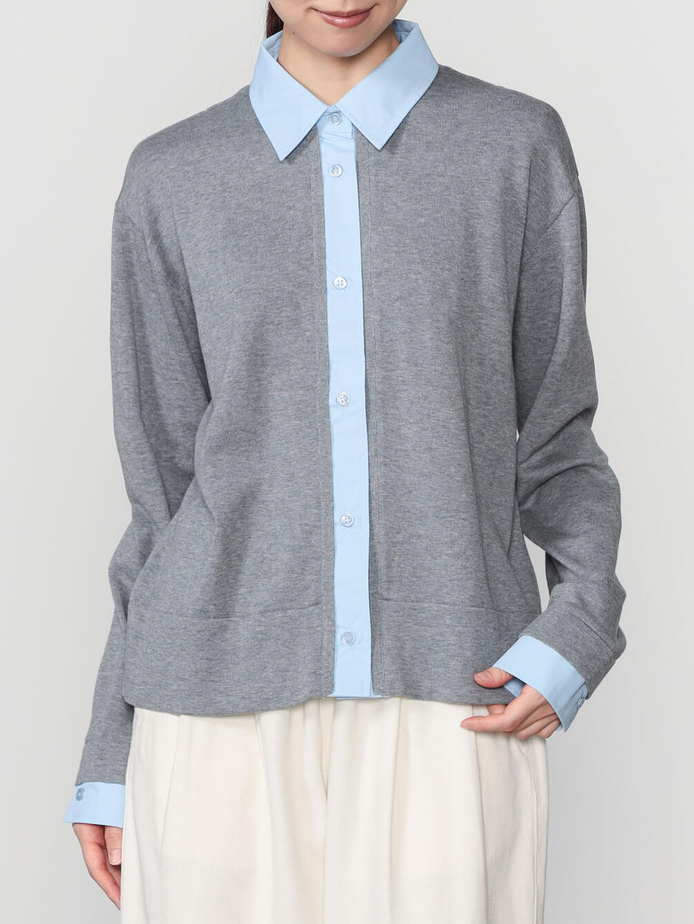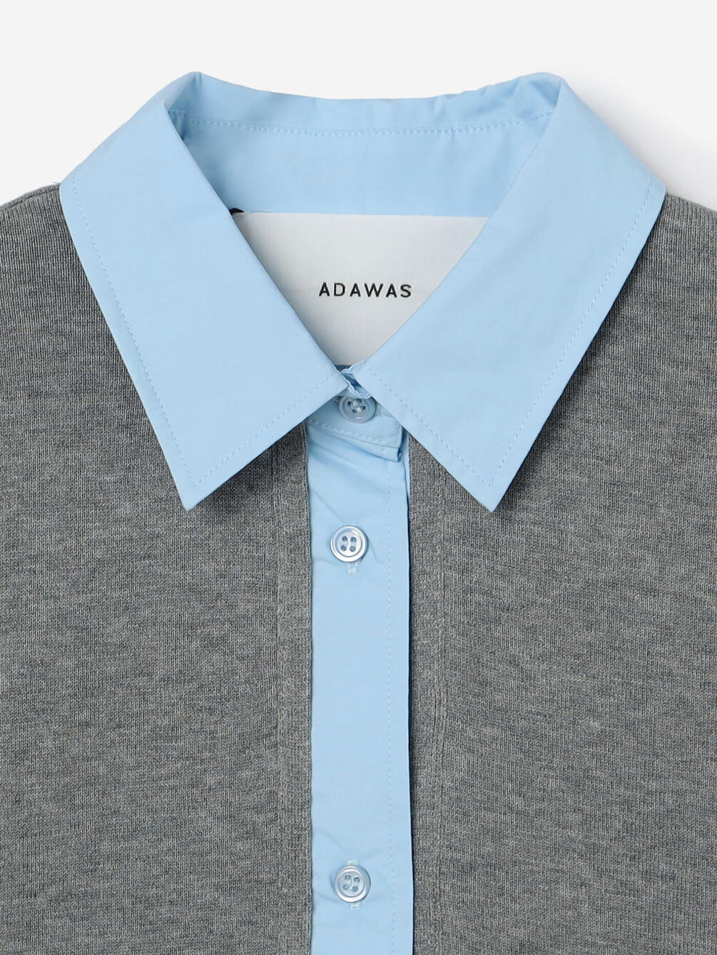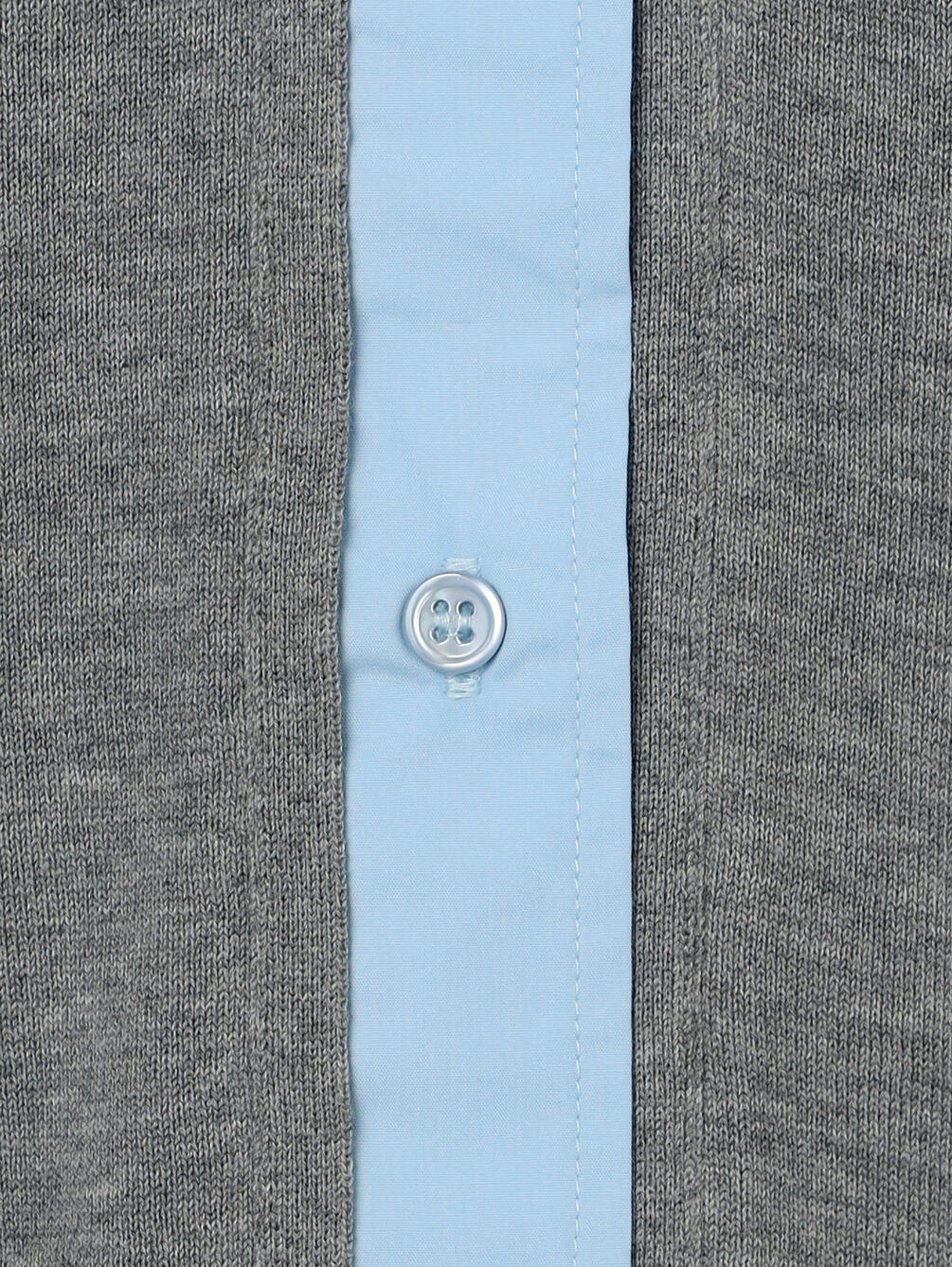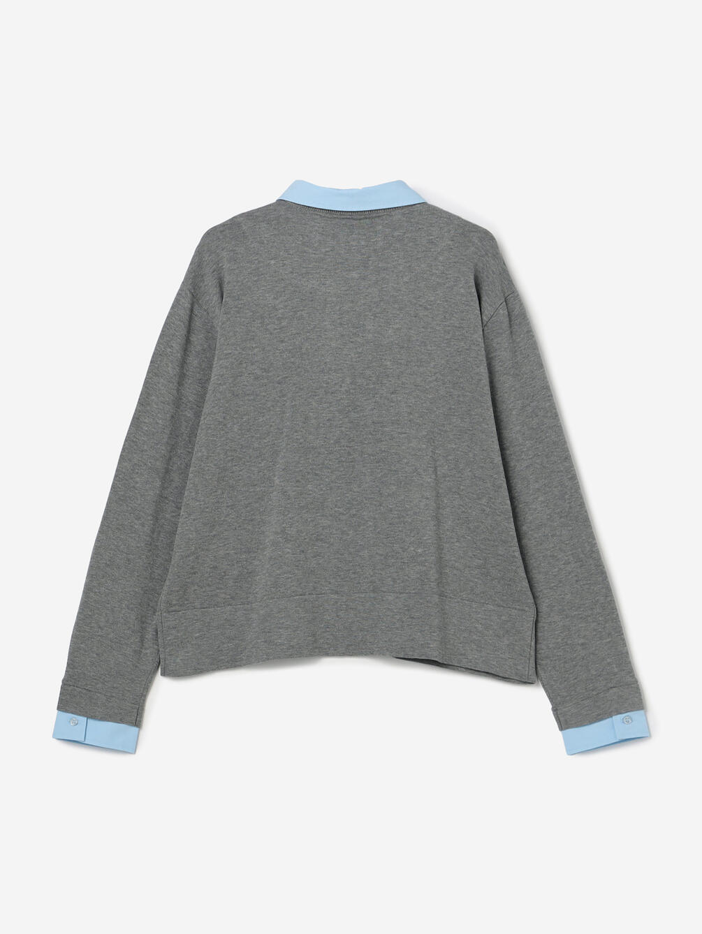 - 前立て、シャツカラー、カフスは布帛素材で切り替え