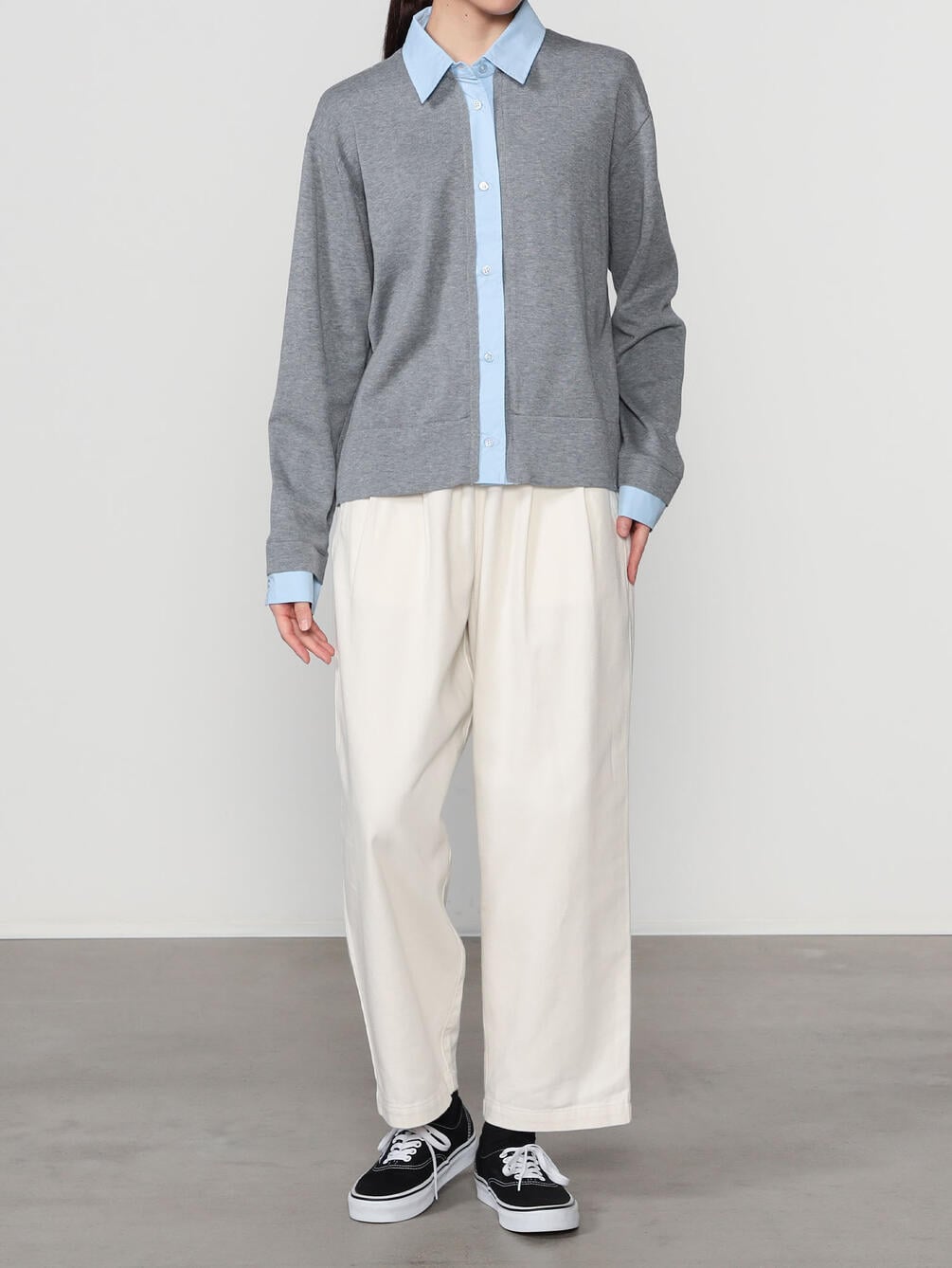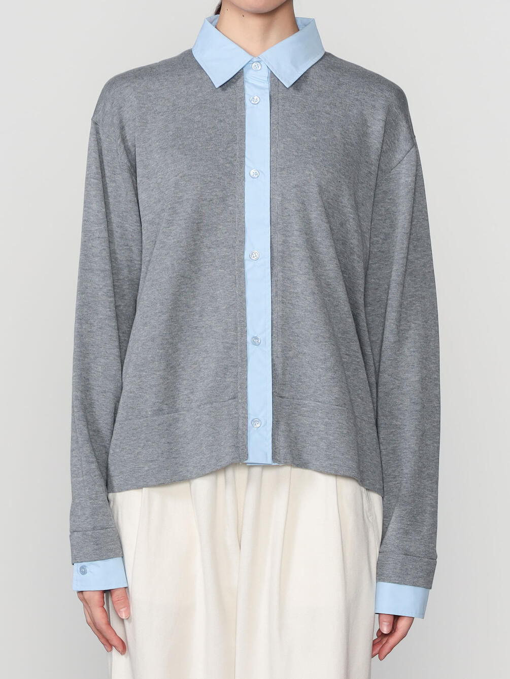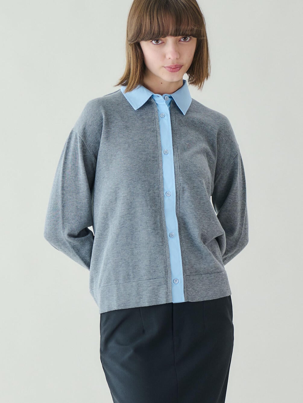 - 前立て、シャツカラー、カフスは布帛素材で切り替え
