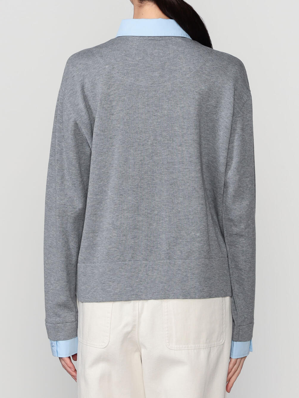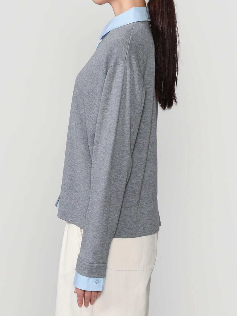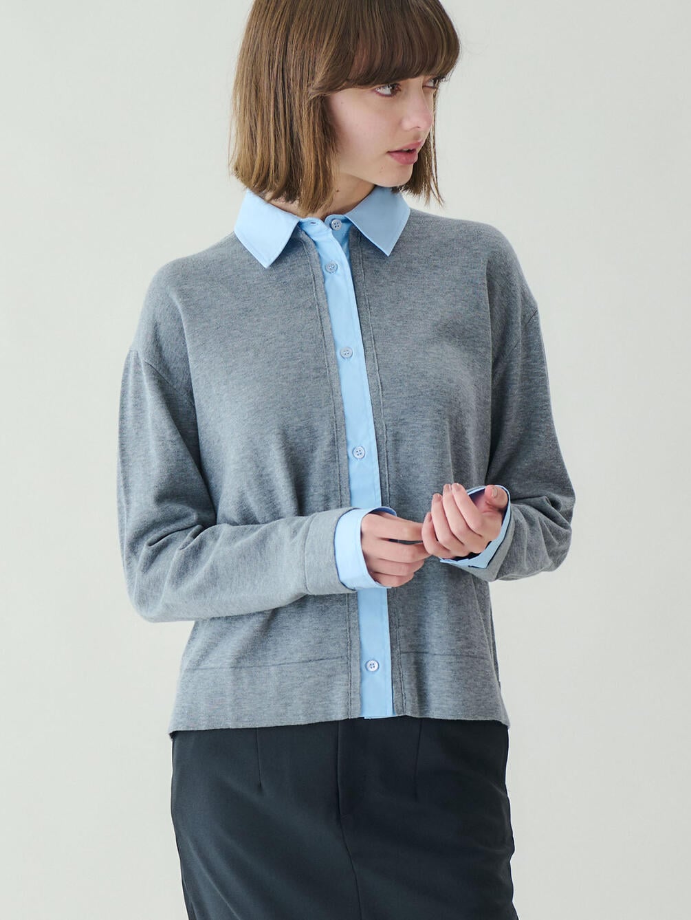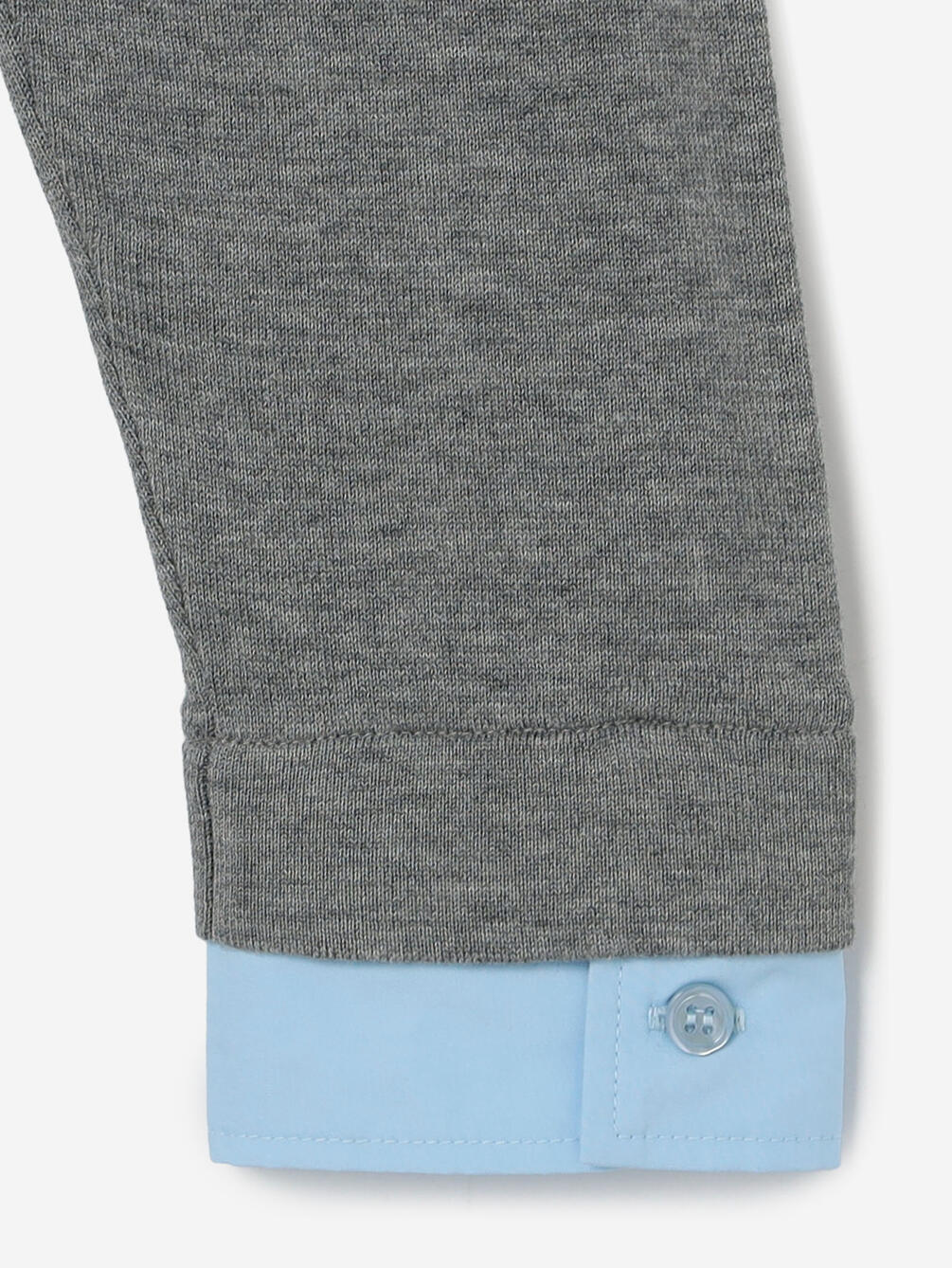 - 前立て、シャツカラー、カフスは布帛素材で切り替え